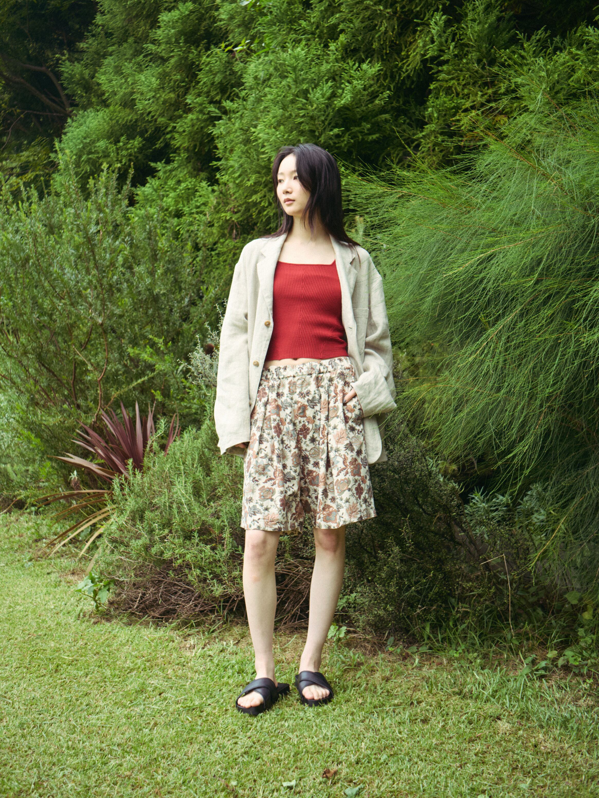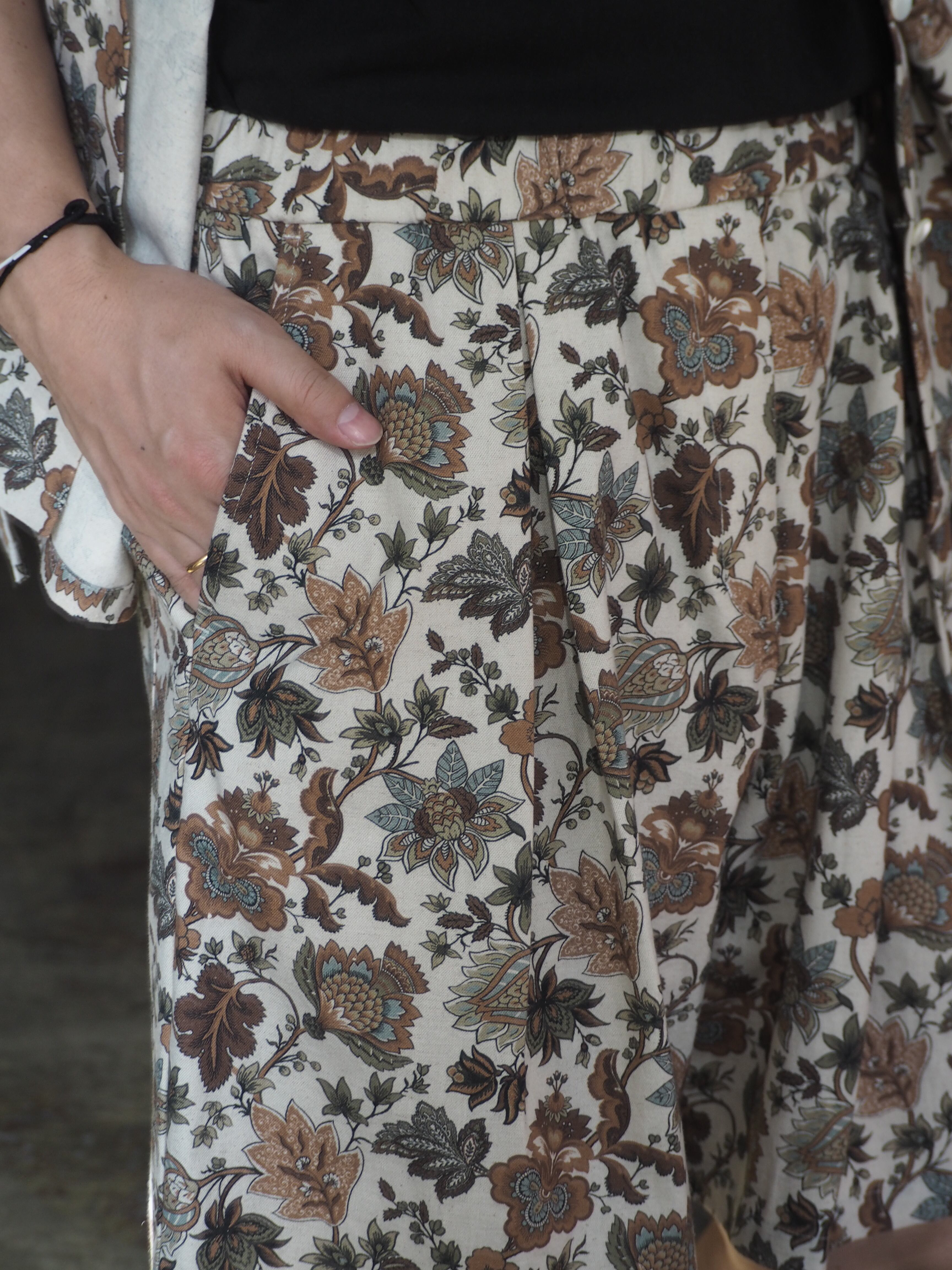 春夏らしいドライな肌触りの綿麻生地にインクジェットプリントを施しています。