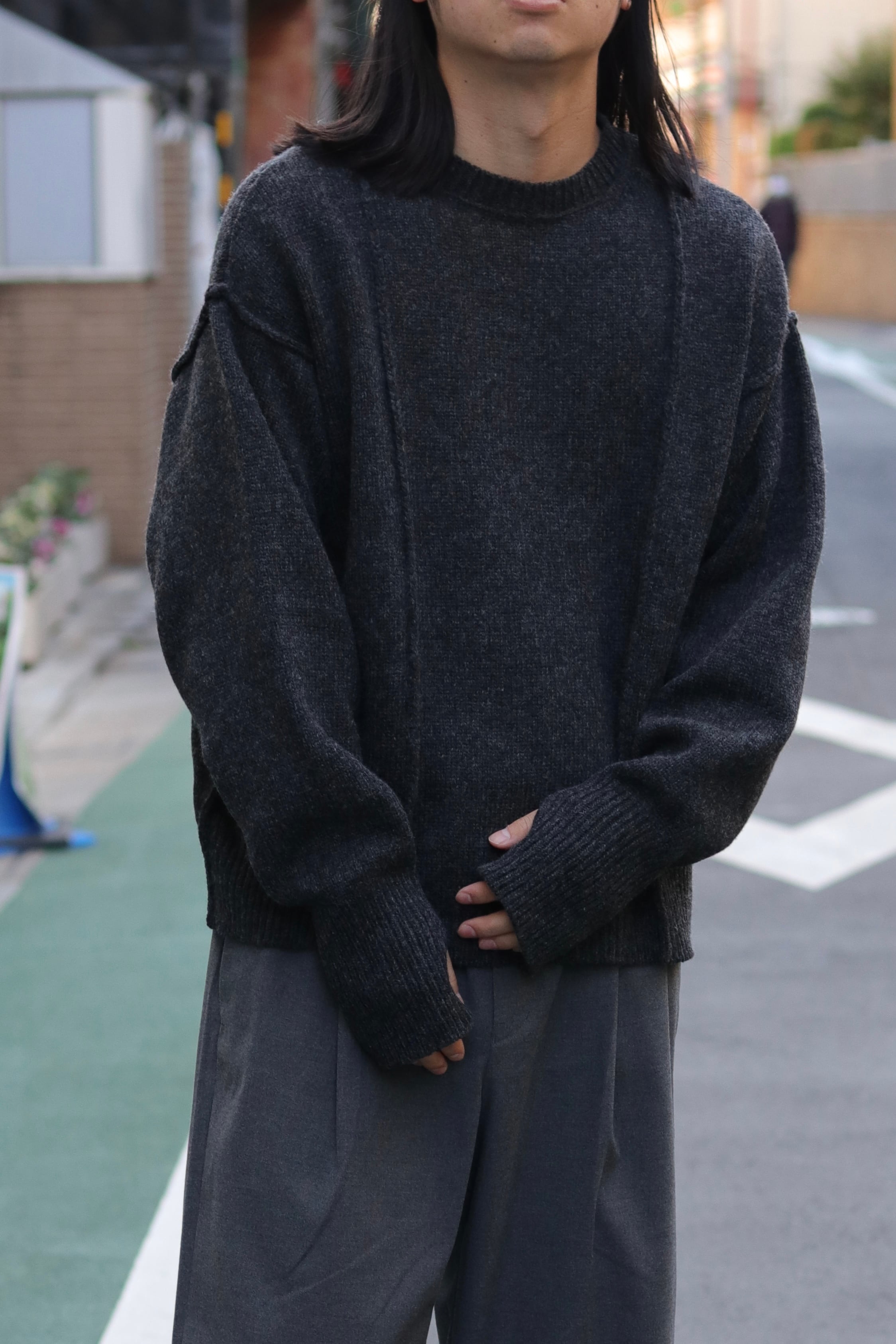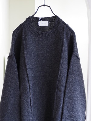 ラムウールナイロンで編み上げたクルーネックセーターです。
