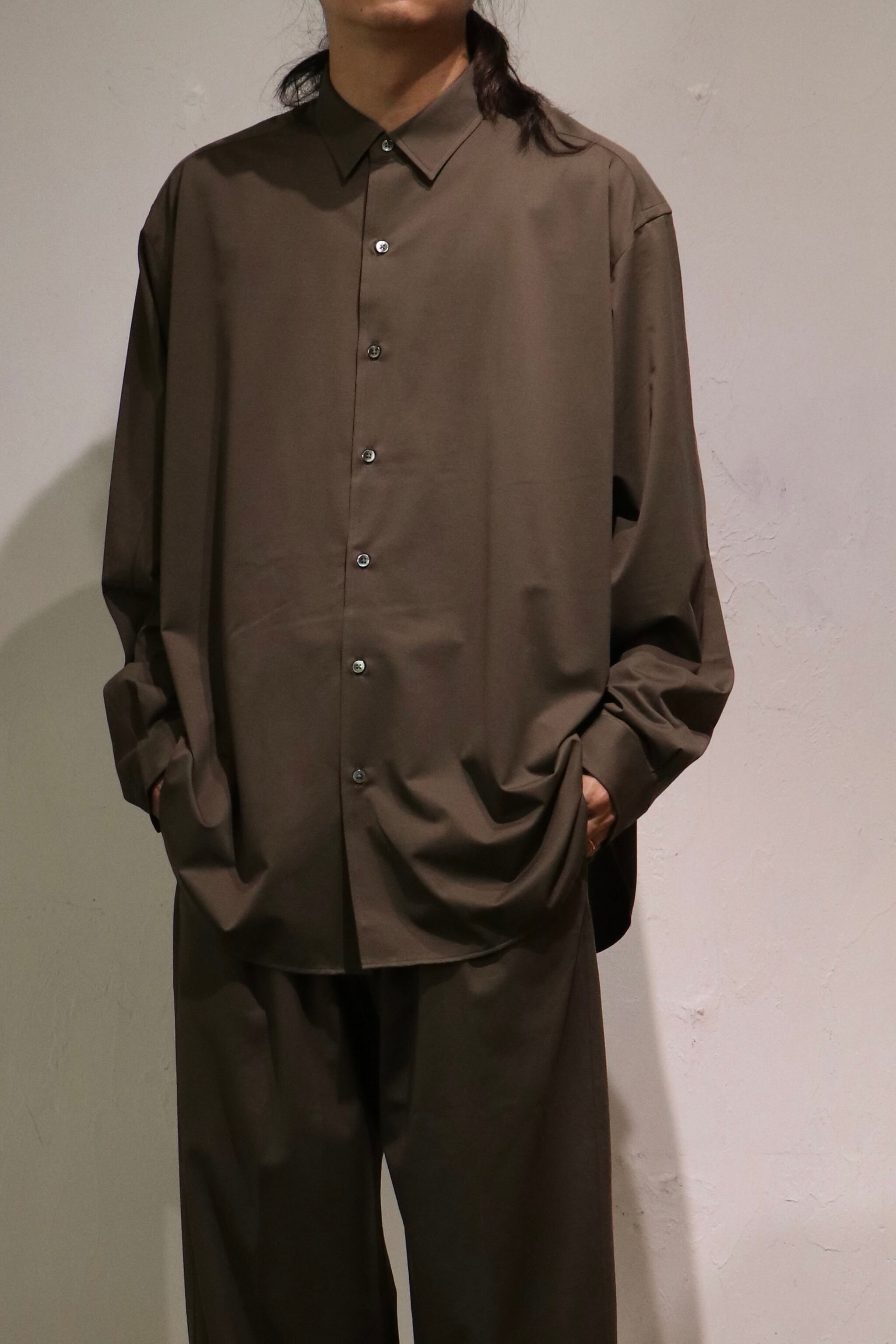 “atmosphere” 空気を纏うという名前の通り、 ゆったりとしたシルエット、素材の落ち感がわかりやすい定番シルエットのシャツです。