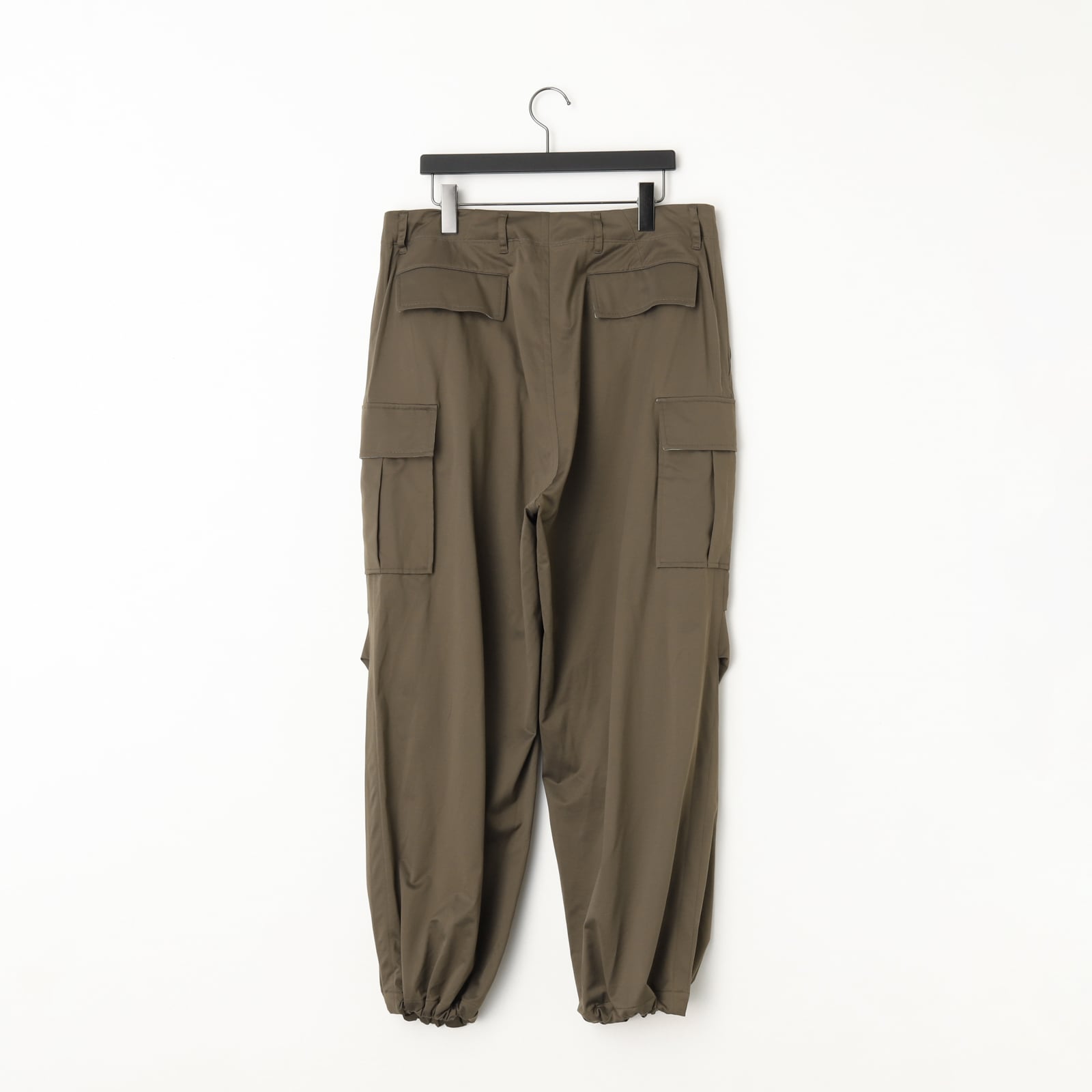 ウエスト、裾を絞って着用頂いた時の生地のギャザーは、テキスタイルの良さが全面にわかるパンツです。