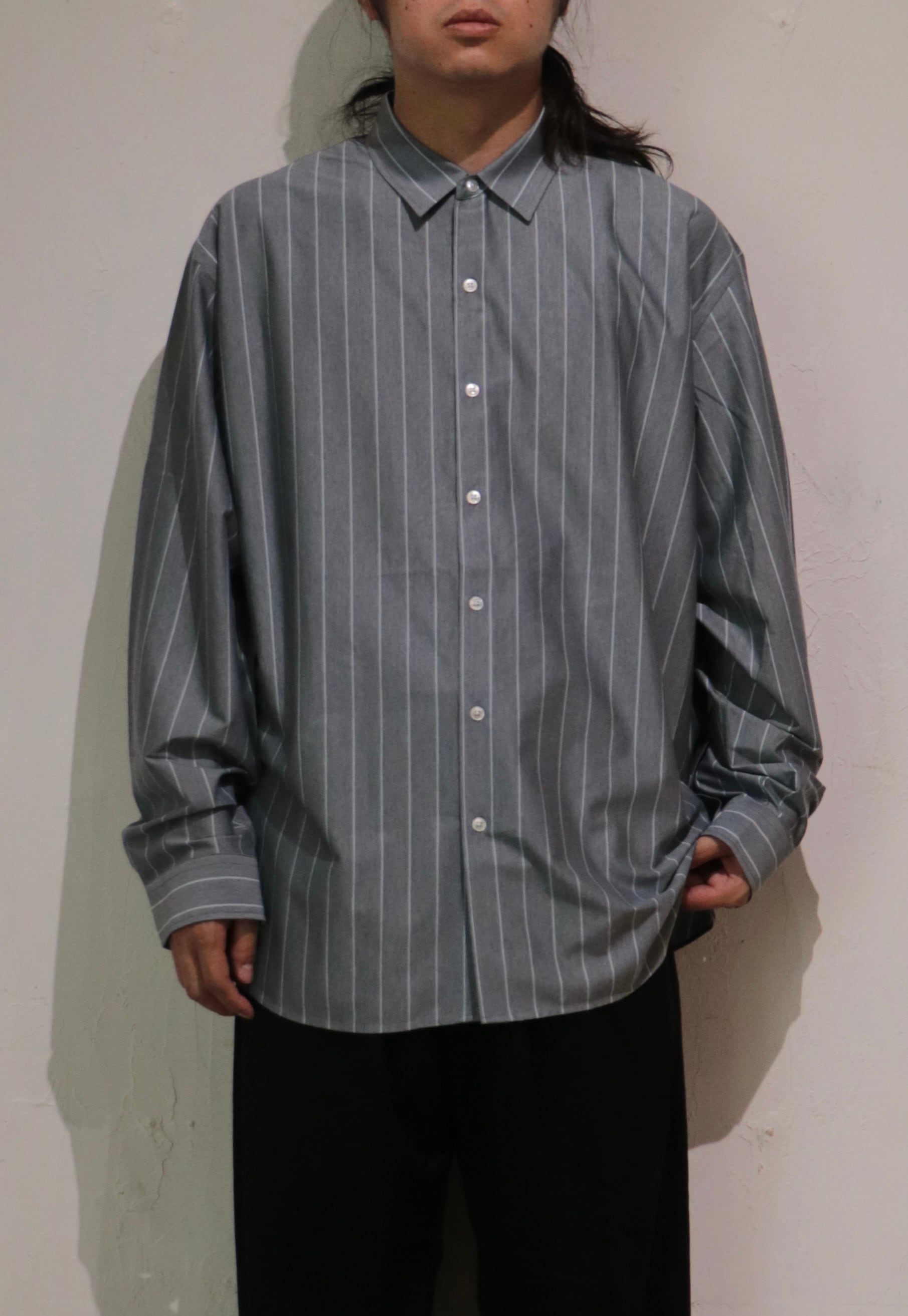 “atmosphere” 空気を纏うという名前の通り、 ゆったりとしたシルエット、素材の落ち感がわかりやすい定番シルエットのシャツです。