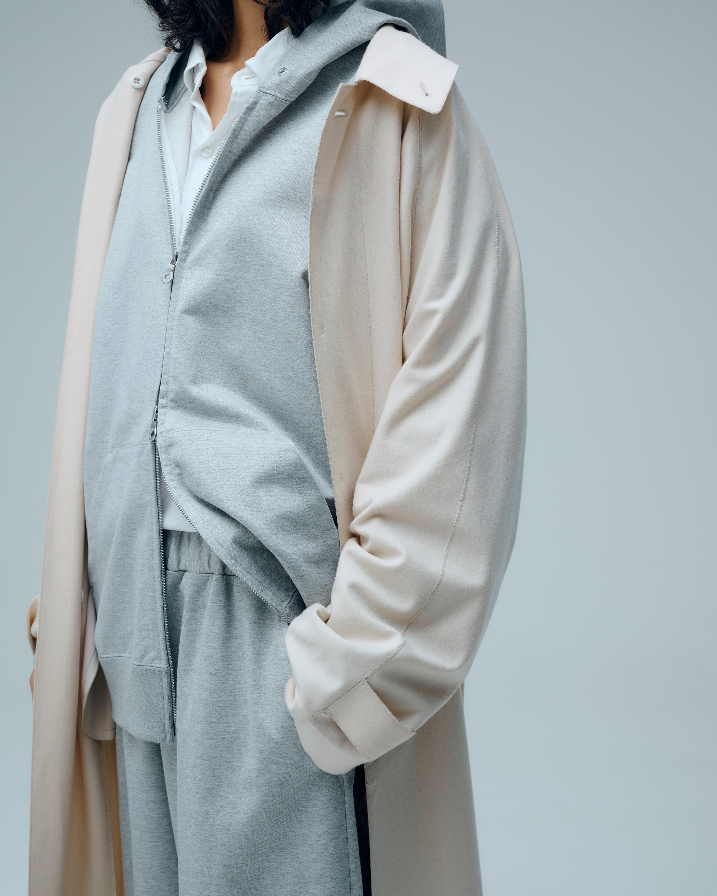 裾にドローコードを入れることで様々なシルエットで着用頂けます。