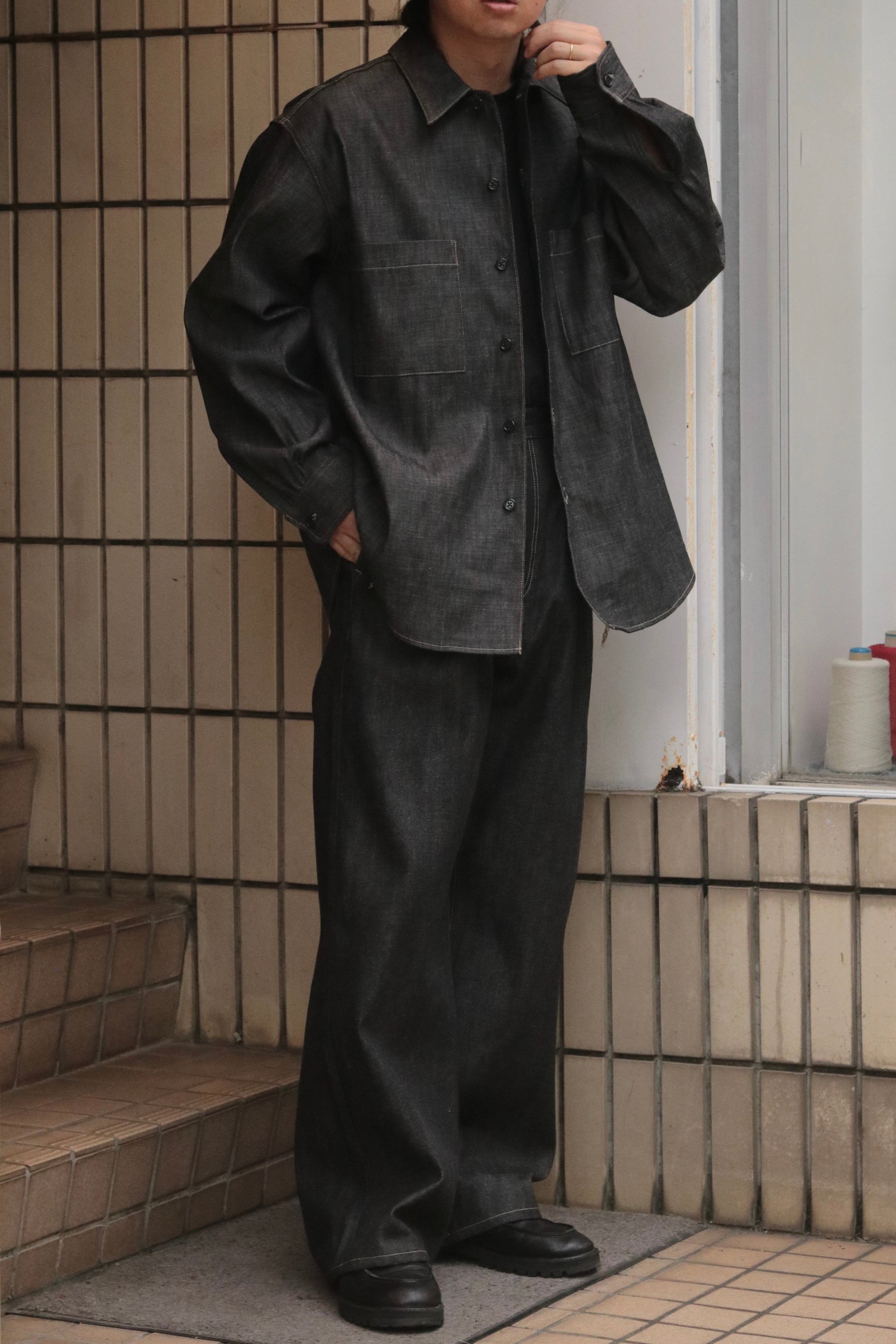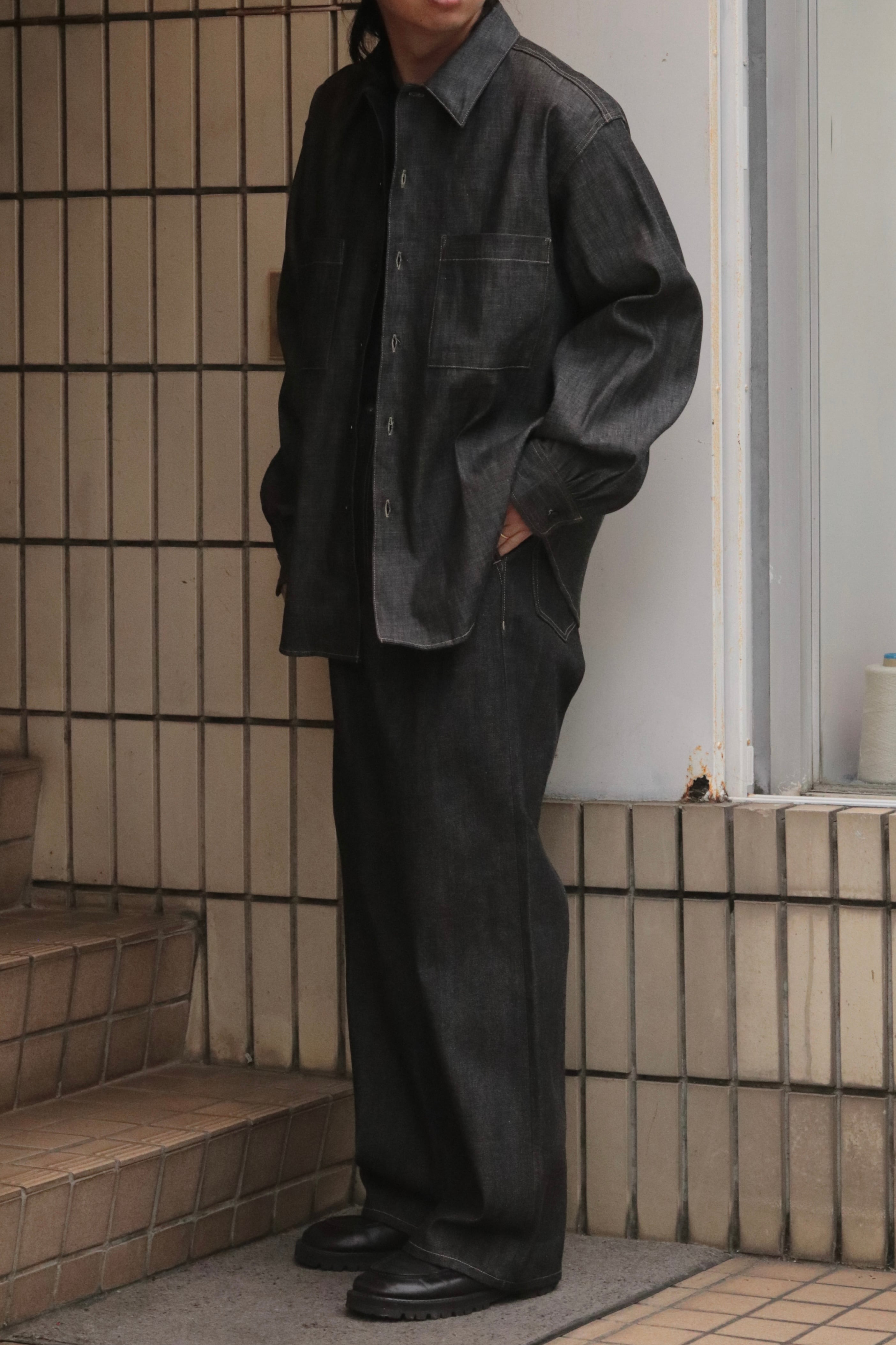 1タック入りのワイドシルエットですが、いわゆるジーパンのシルエットではなく、上品に履けるスラックスのような、美しいシルエットを目指して制作しております。