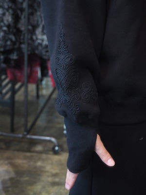 袖部分の刺繍はカラーによって異なり存在感のあるスエットに。