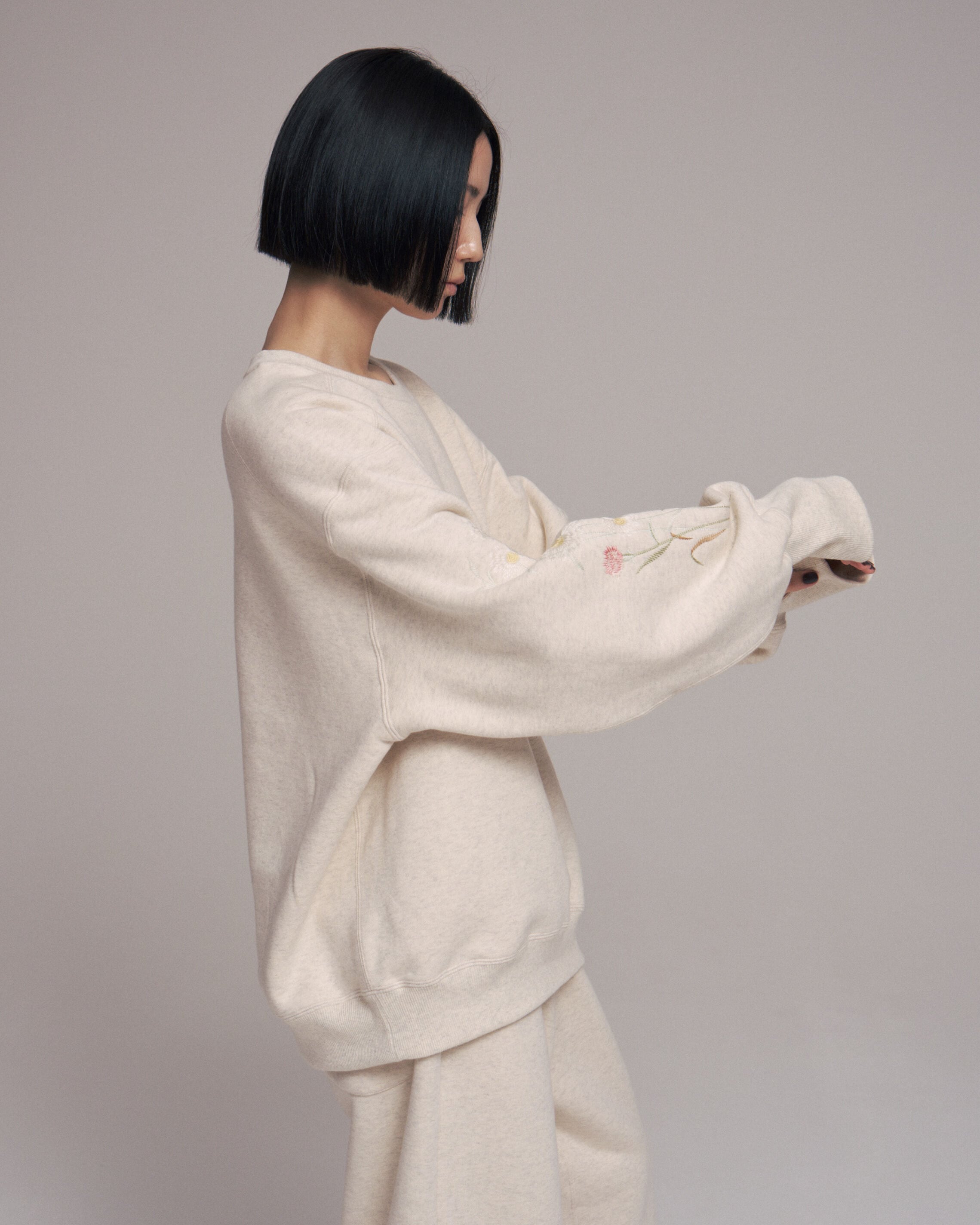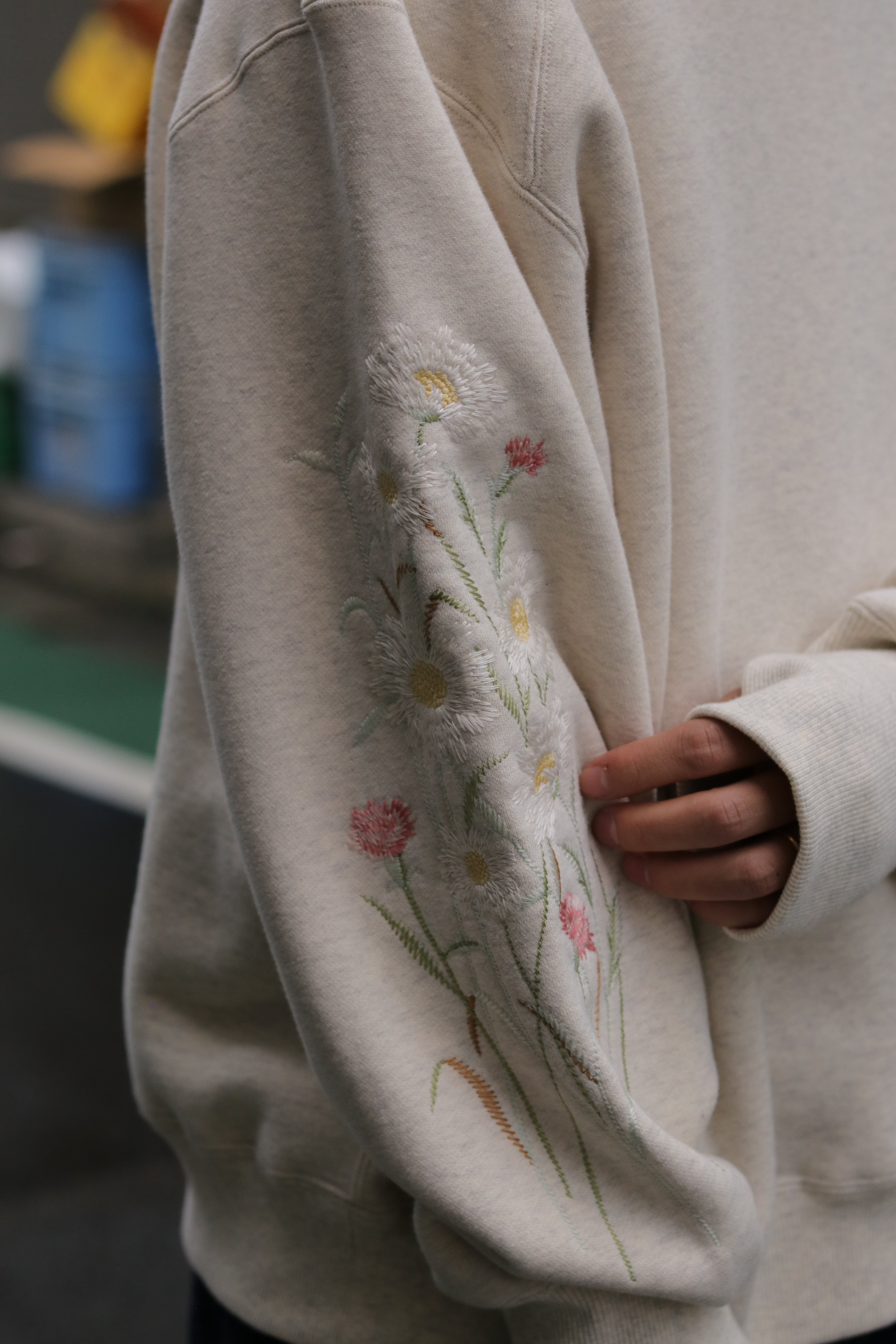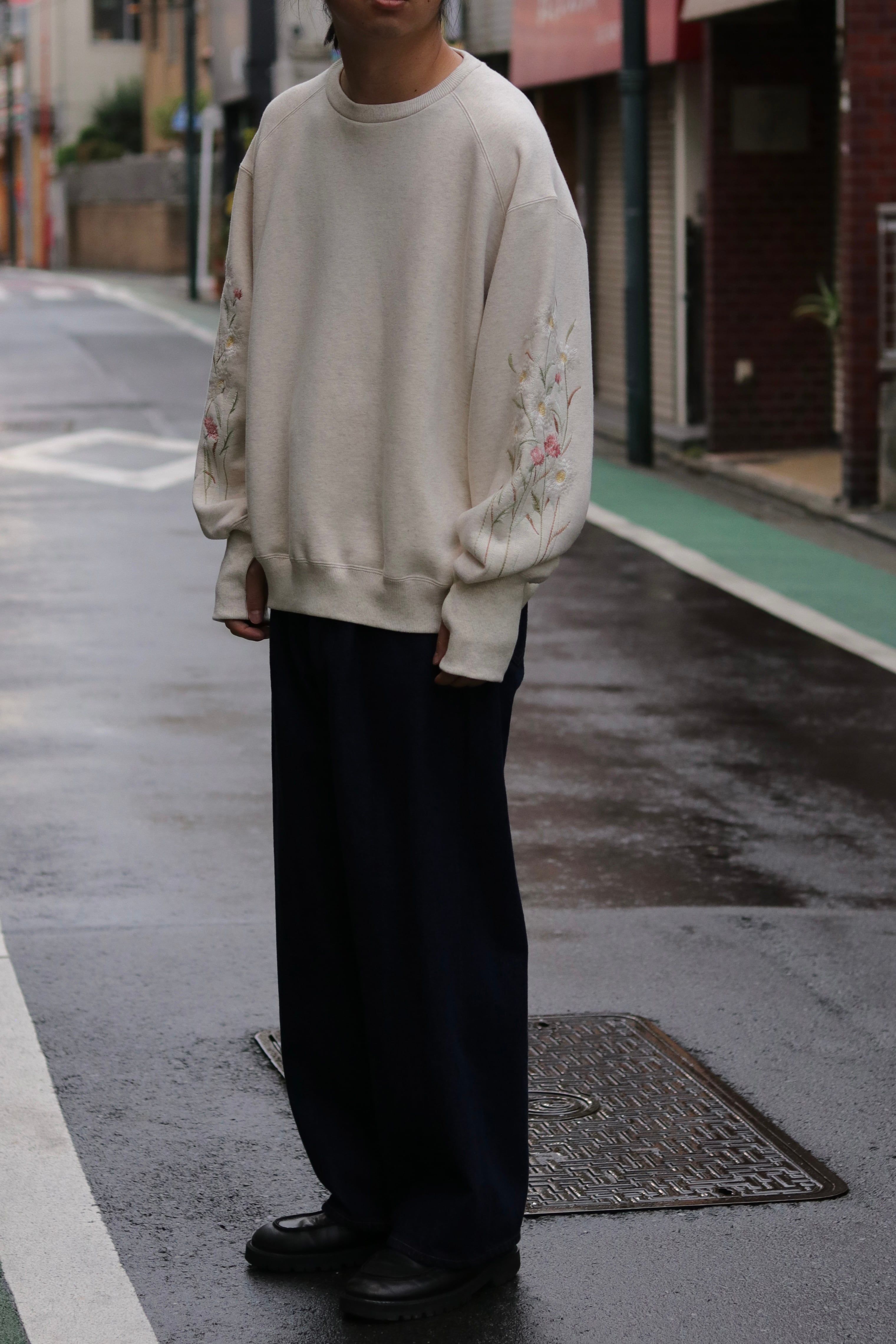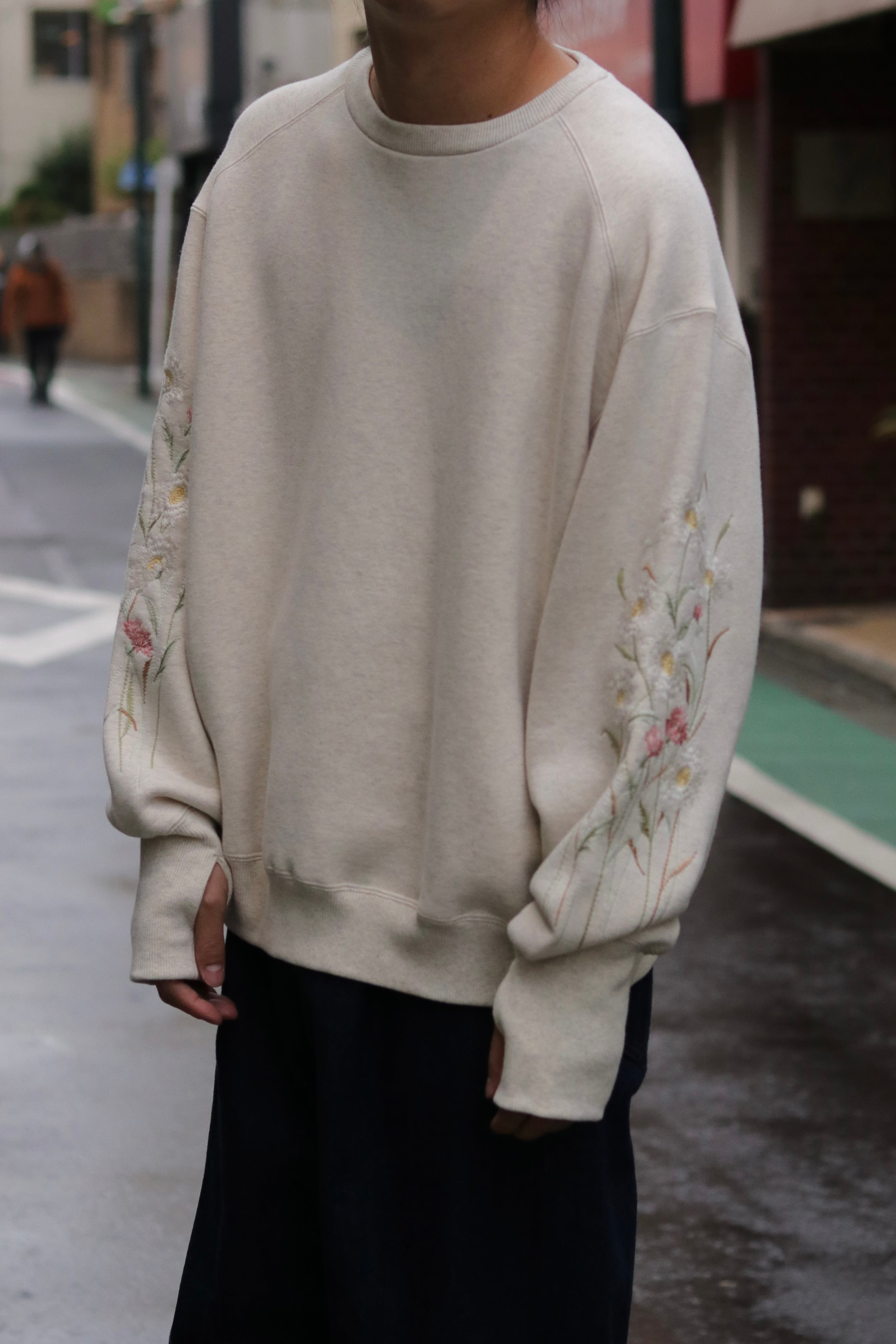袖部分の刺繍はカラーによって異なり存在感のあるスエットに。