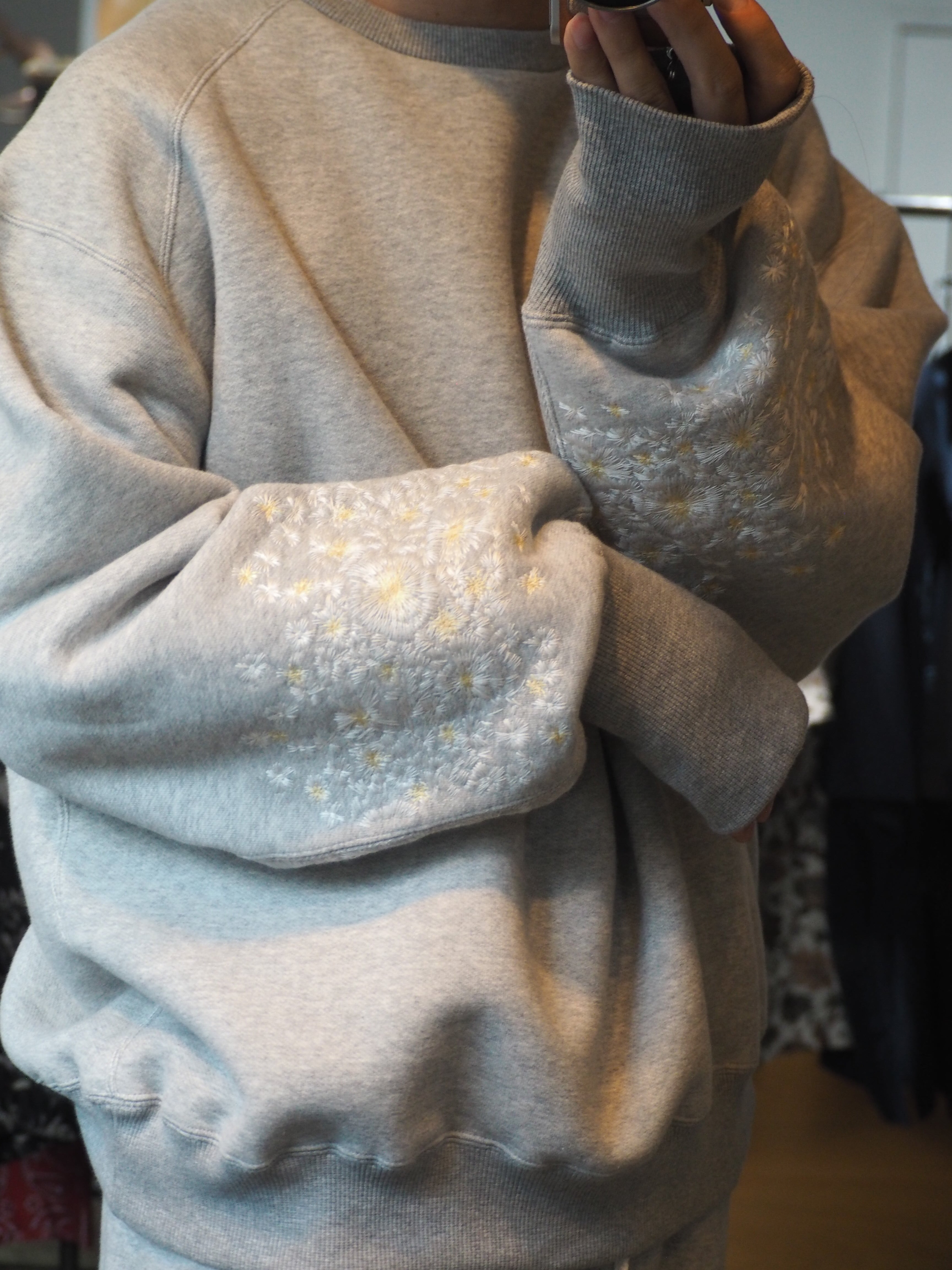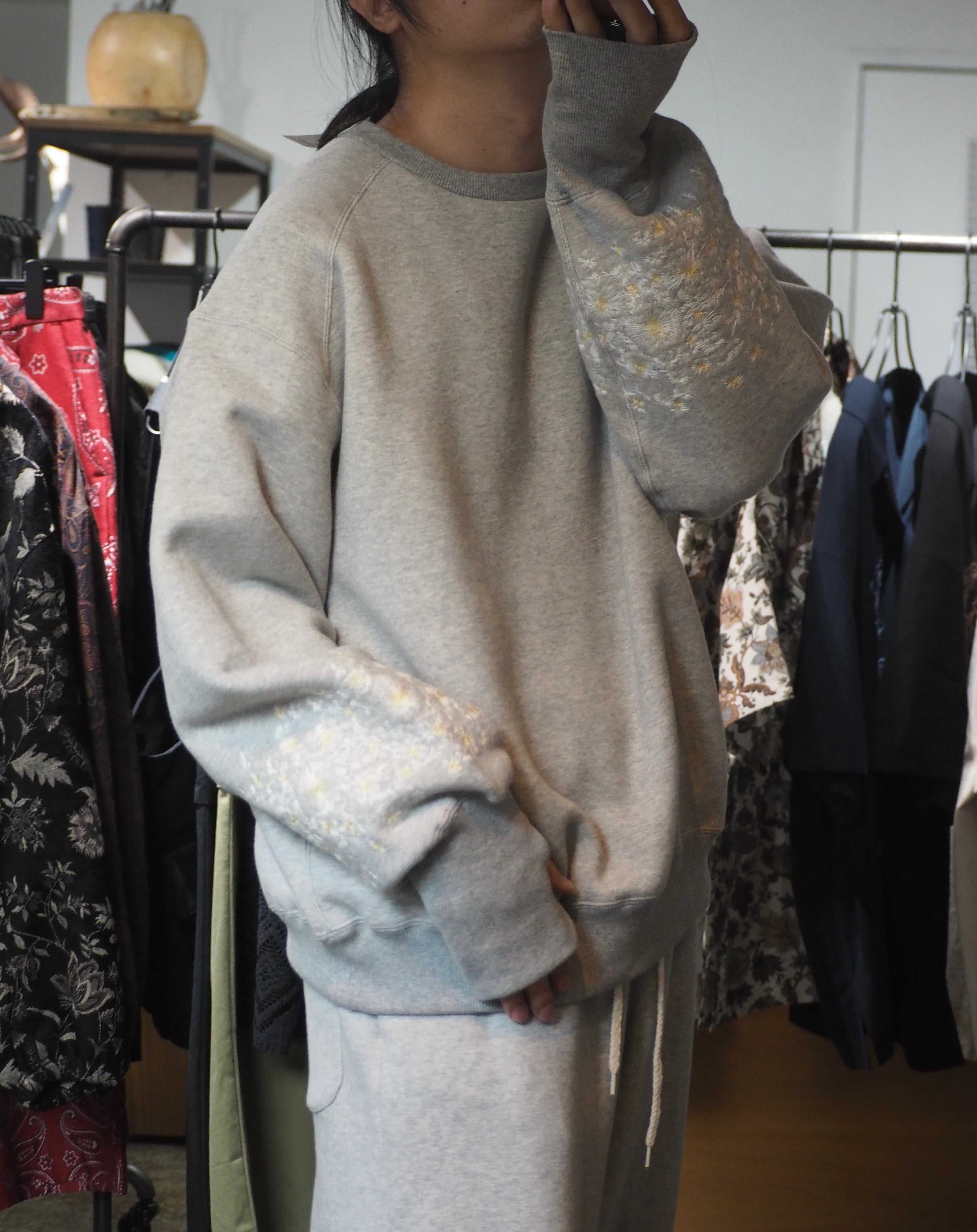 袖部分の刺繍はカラーによって異なり存在感のあるスエットに。