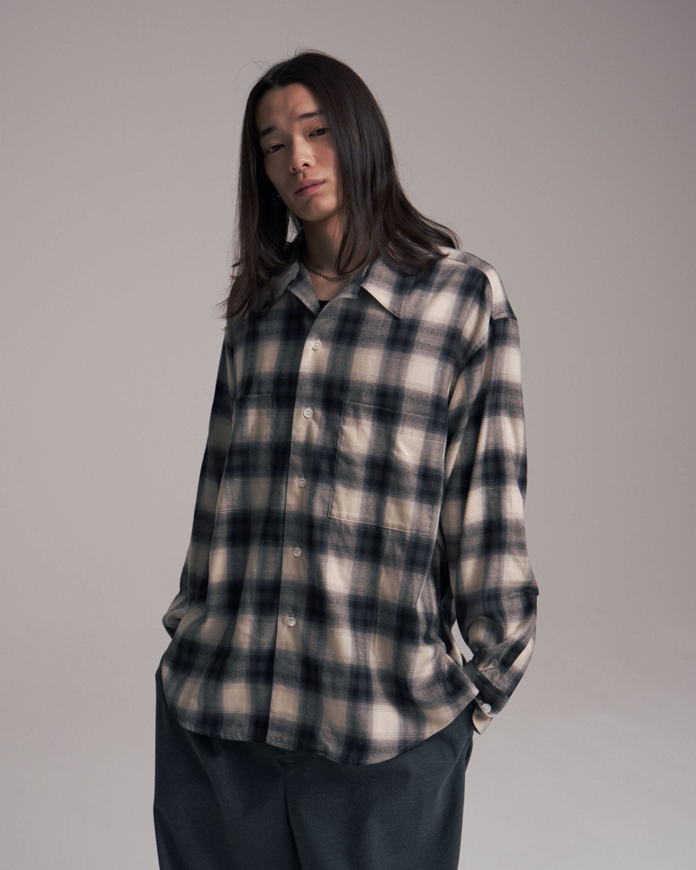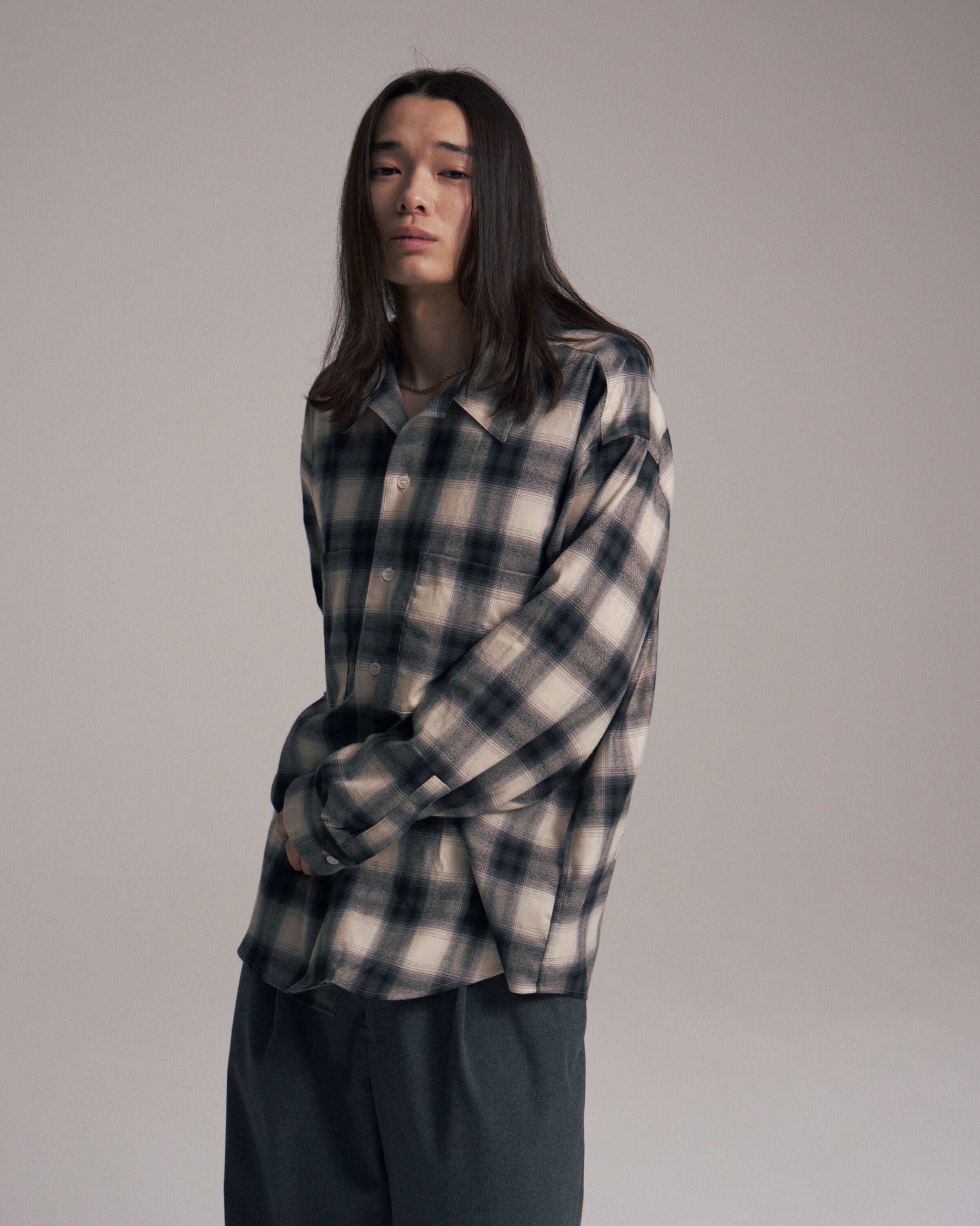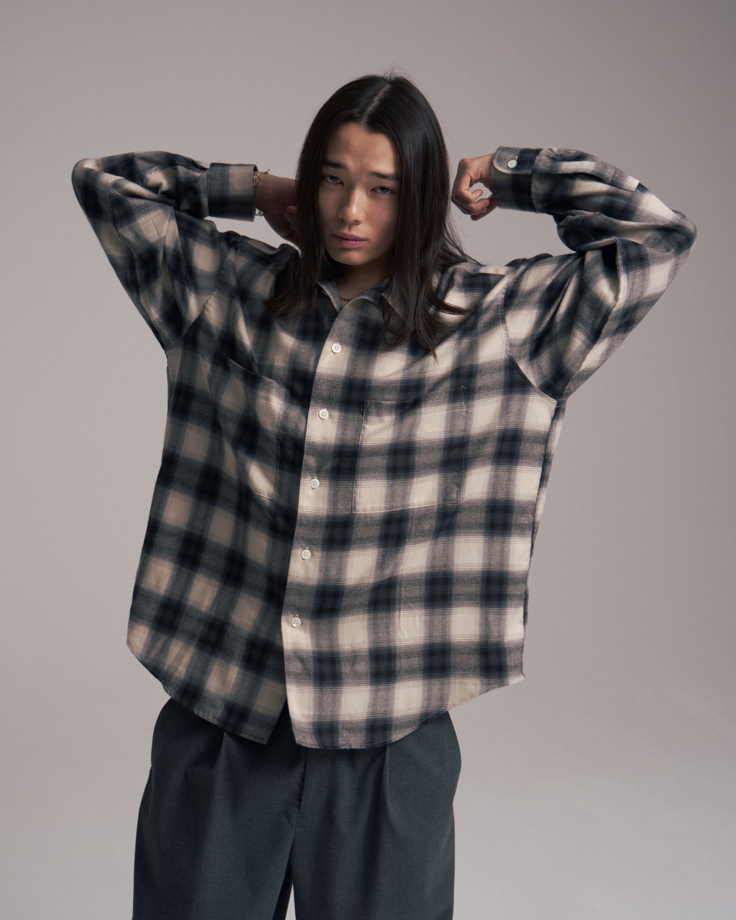 コットンレーヨンを使用し織られたオンブレーチェックネル地で製作した