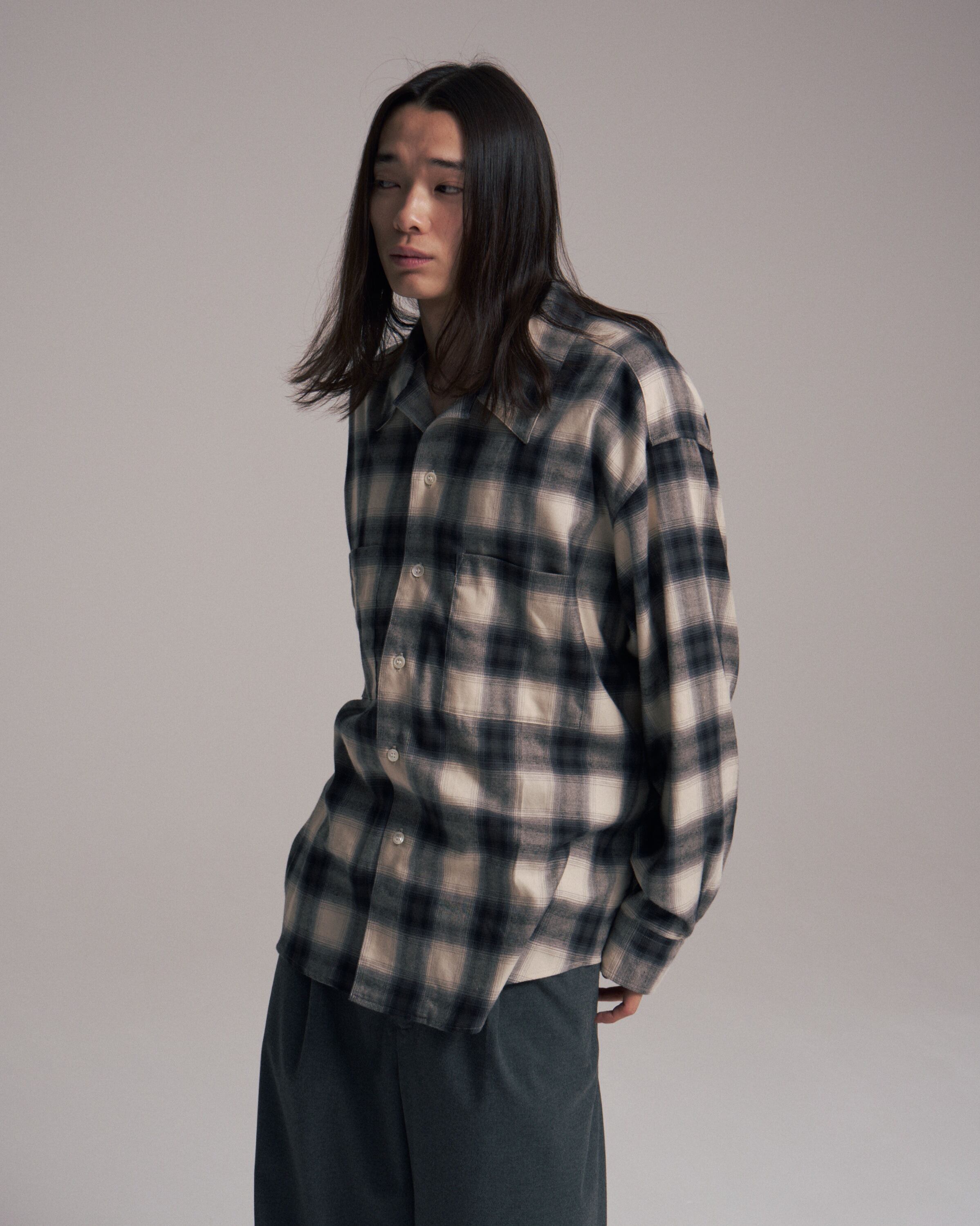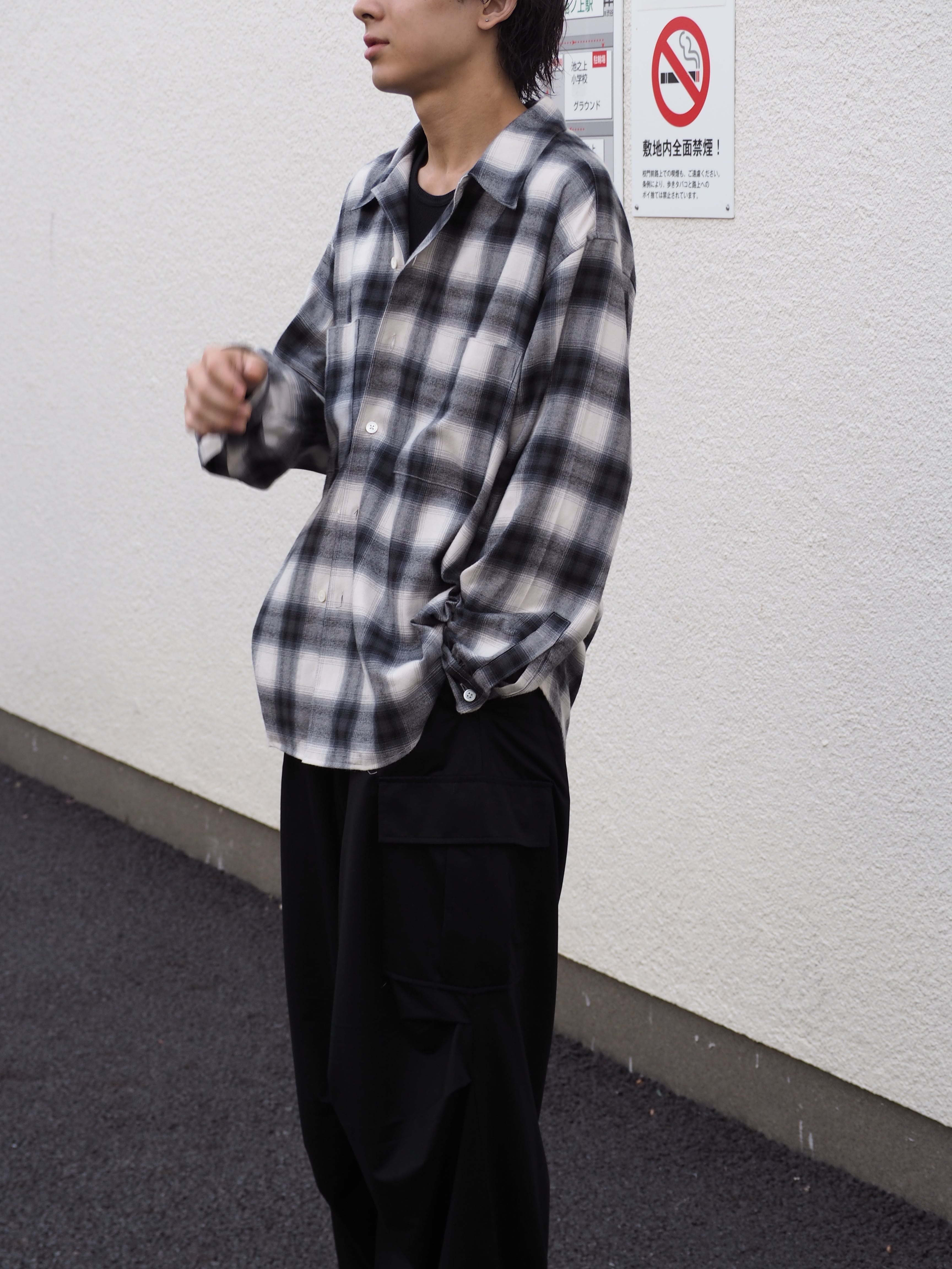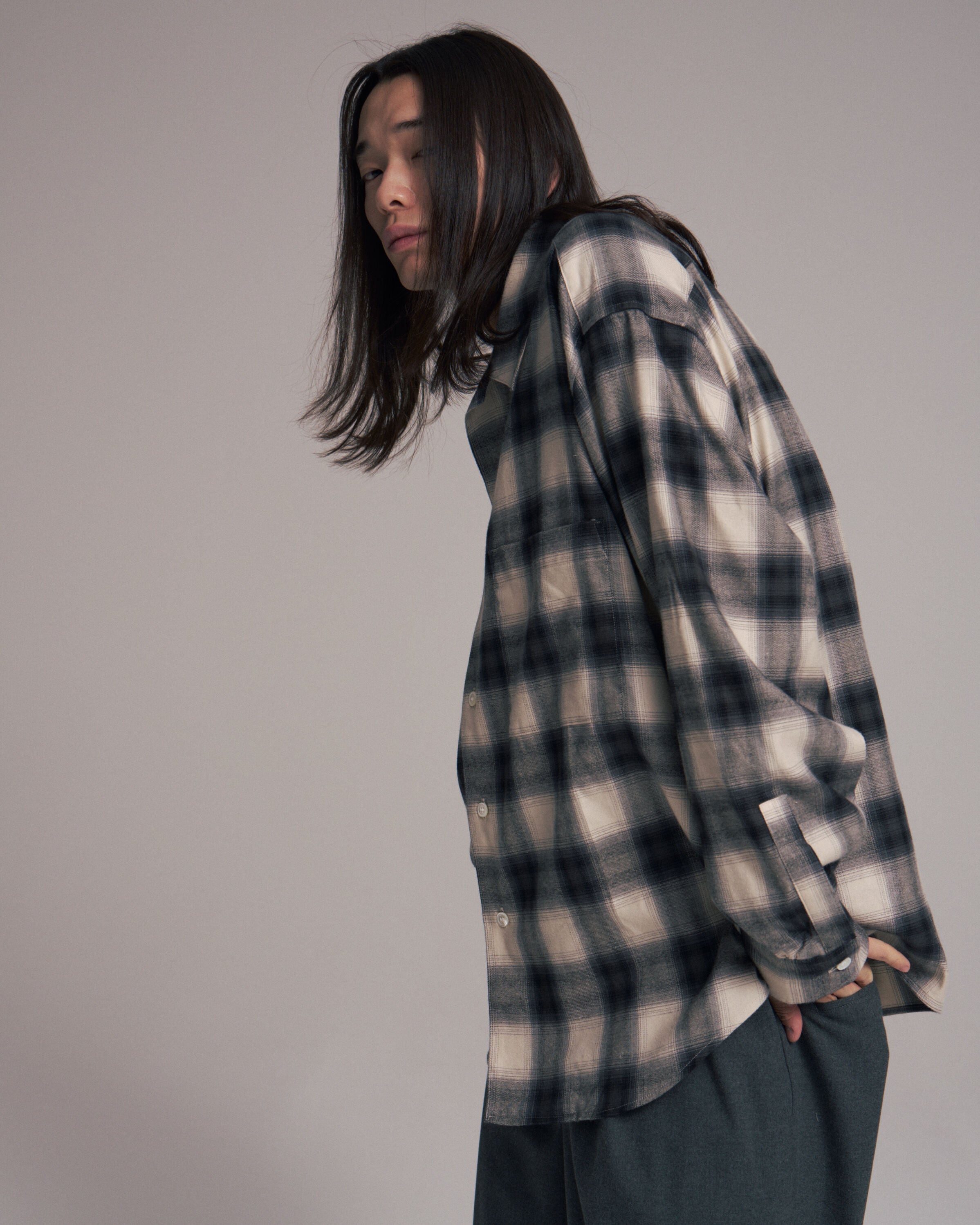 コットンレーヨンを使用し織られたオンブレーチェックネル地で製作した