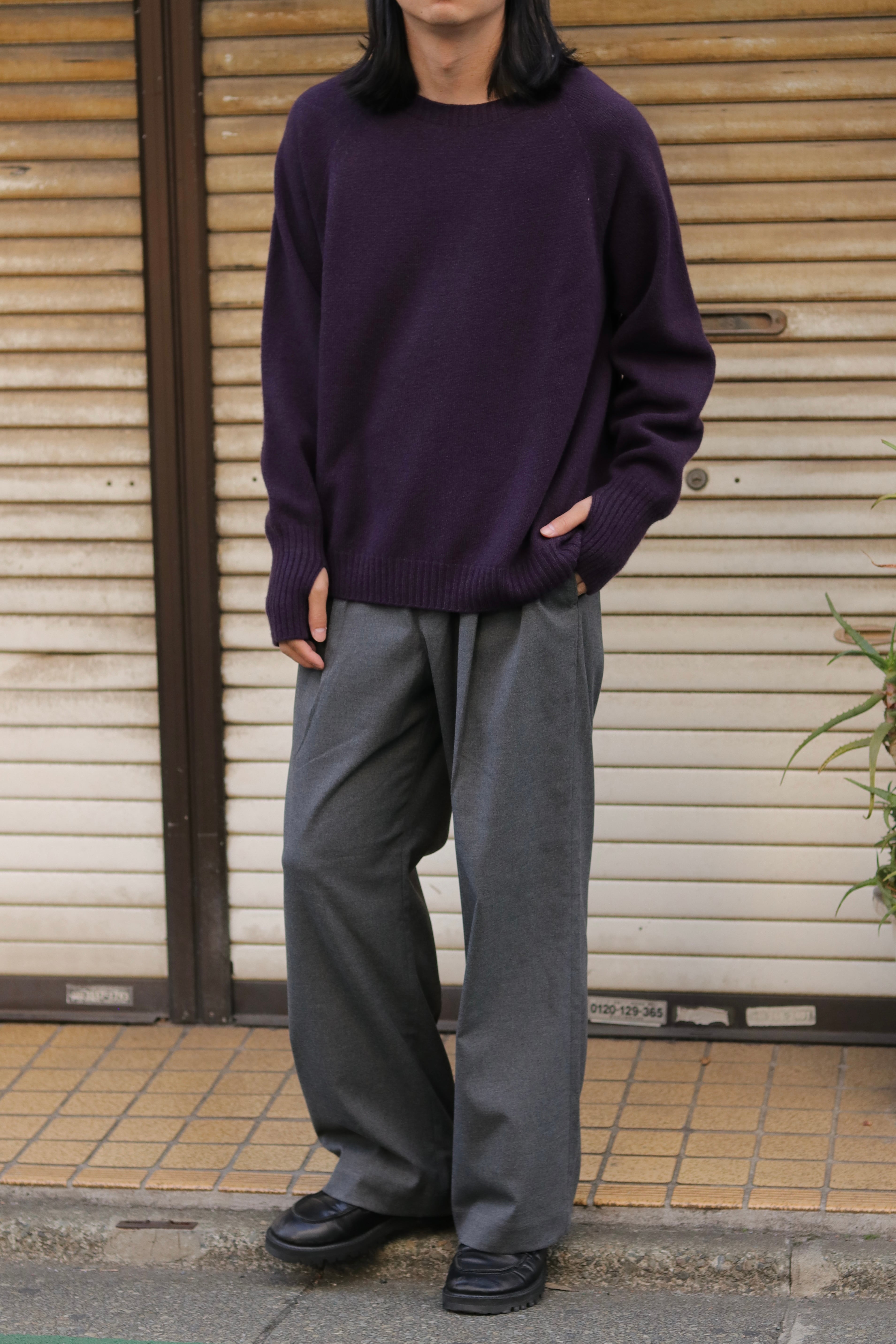 ホールガーメント機で編み上げたクルーネックセーターです。