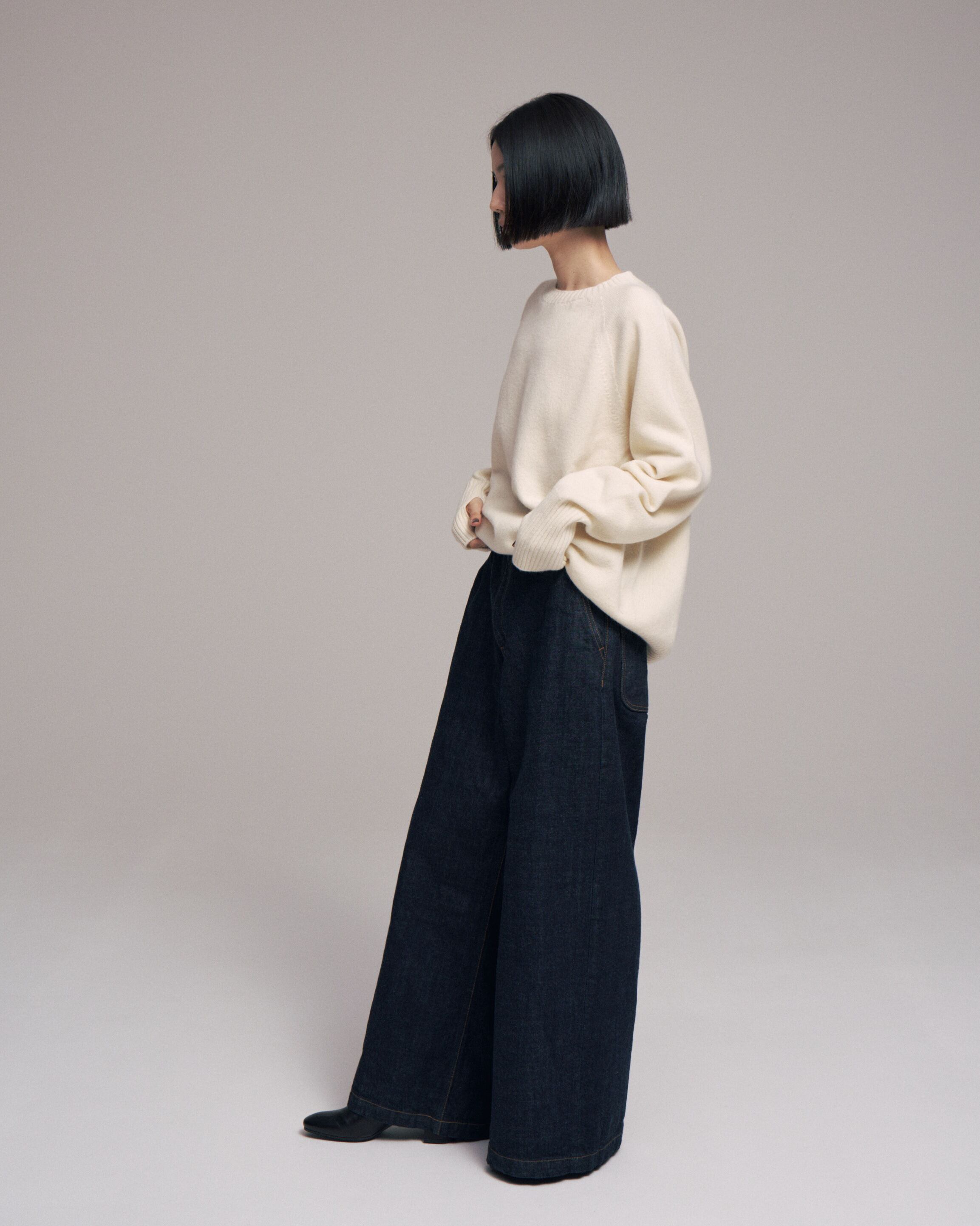 ホールガーメント機で編み上げたクルーネックセーターです。