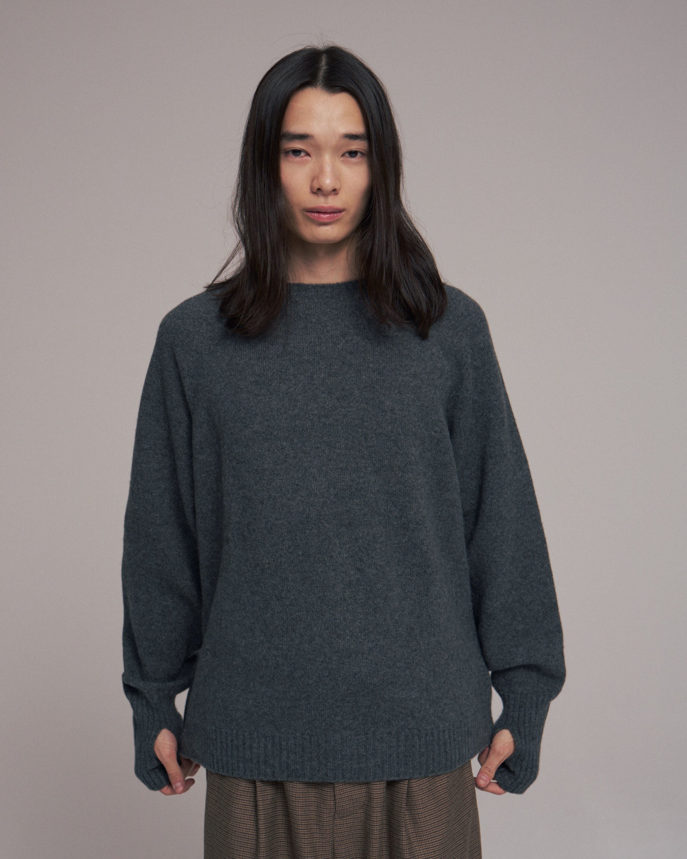 ホールガーメント機で編み上げたクルーネックセーターです。