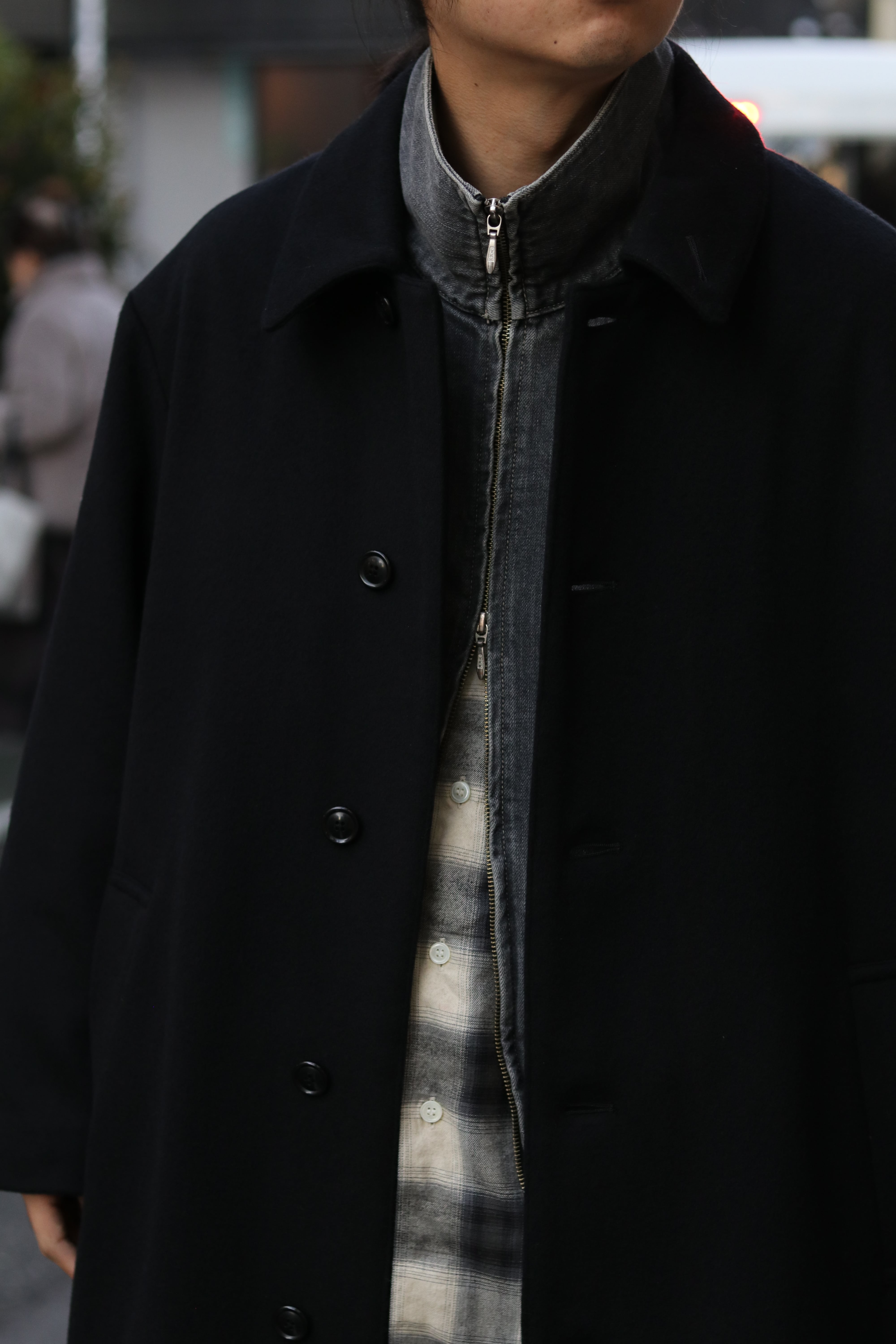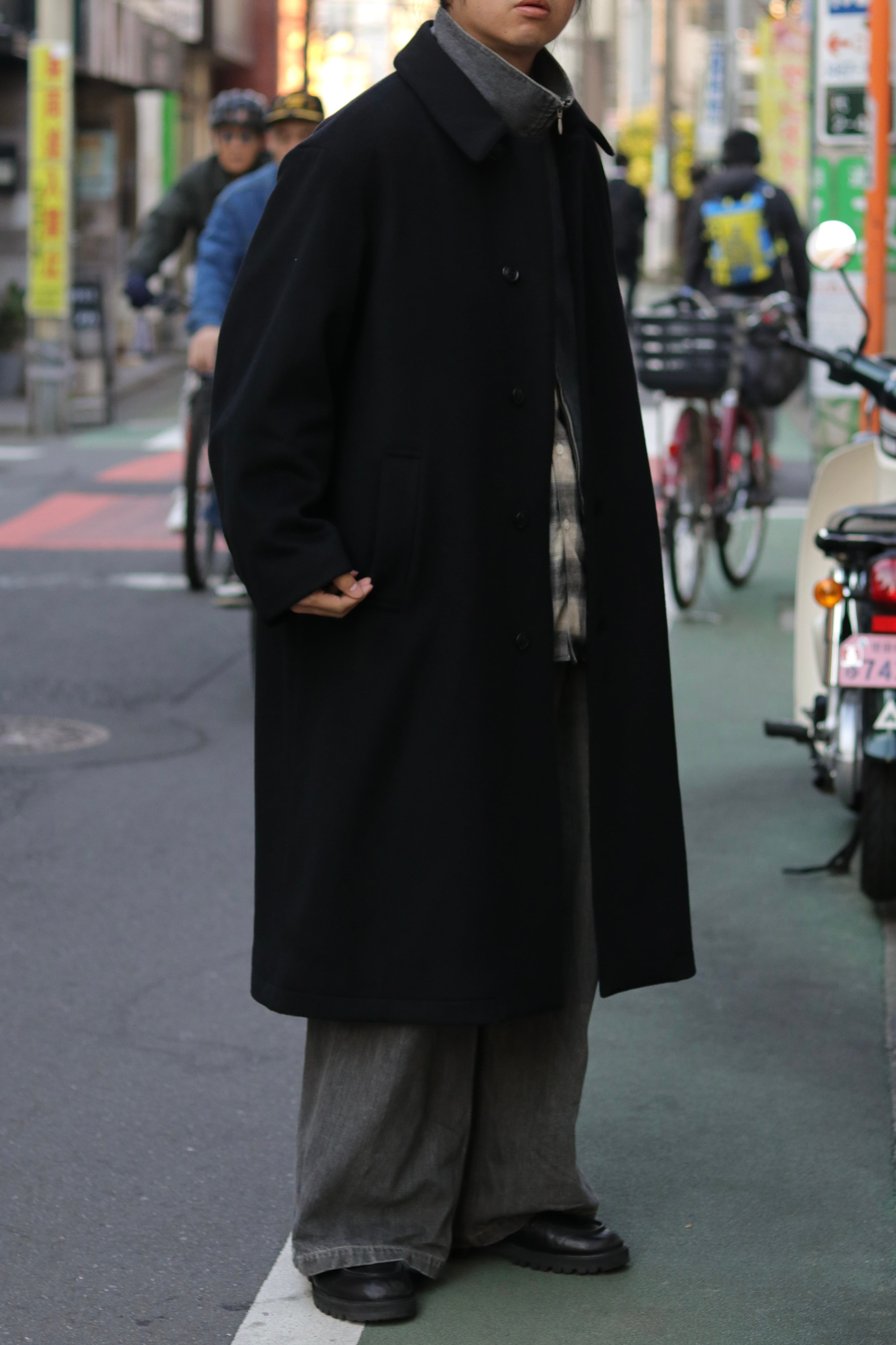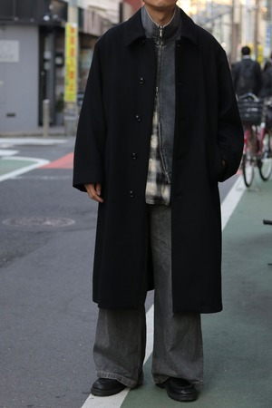 super100ウールで織られたウール100%メルトンを使用し作製したステンカラーコート。