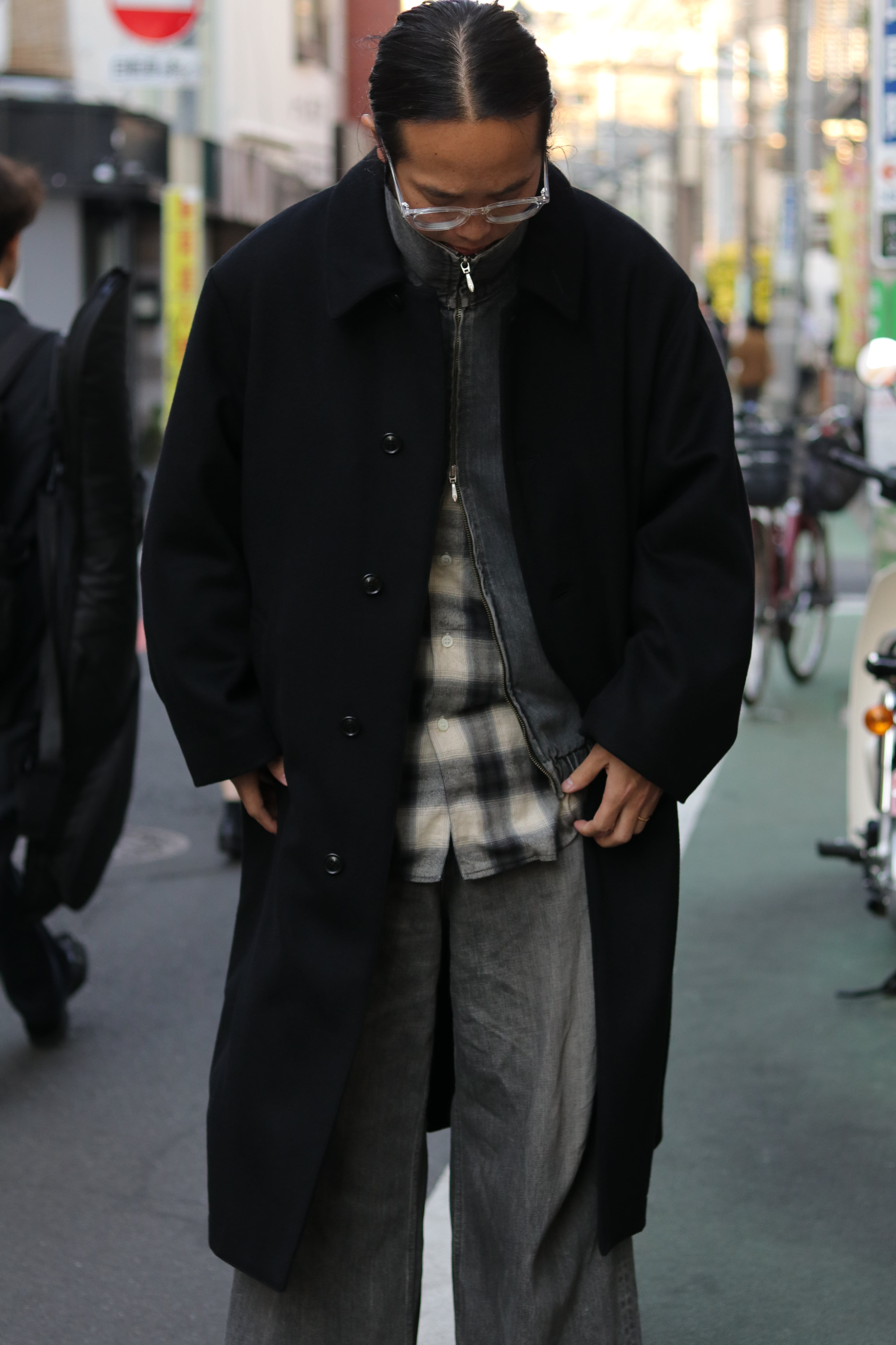 柔らかく、軽い着心地のビックシルエットで、襟はボタンで止めることができ、スタンドネックで着用することもできます。