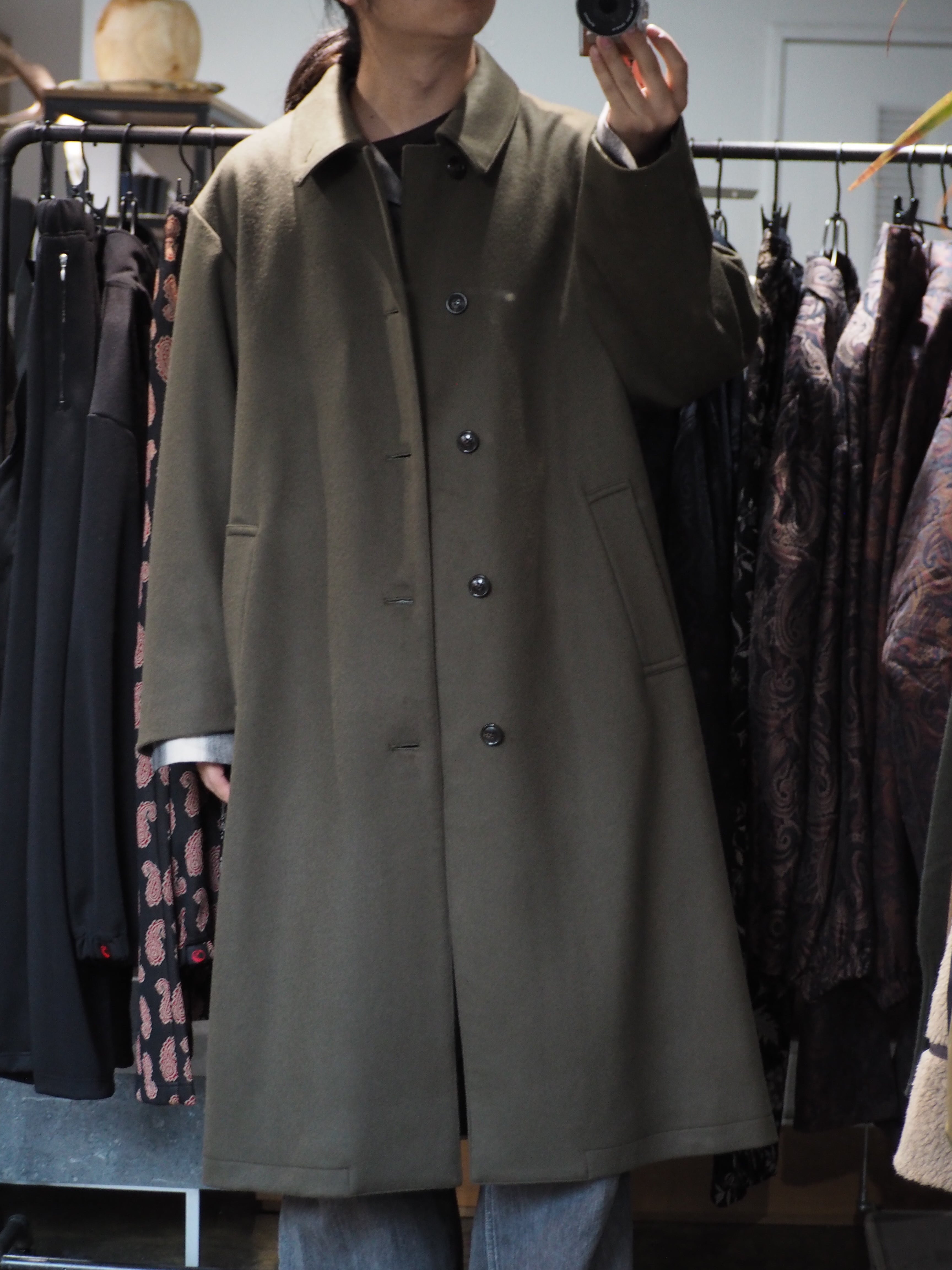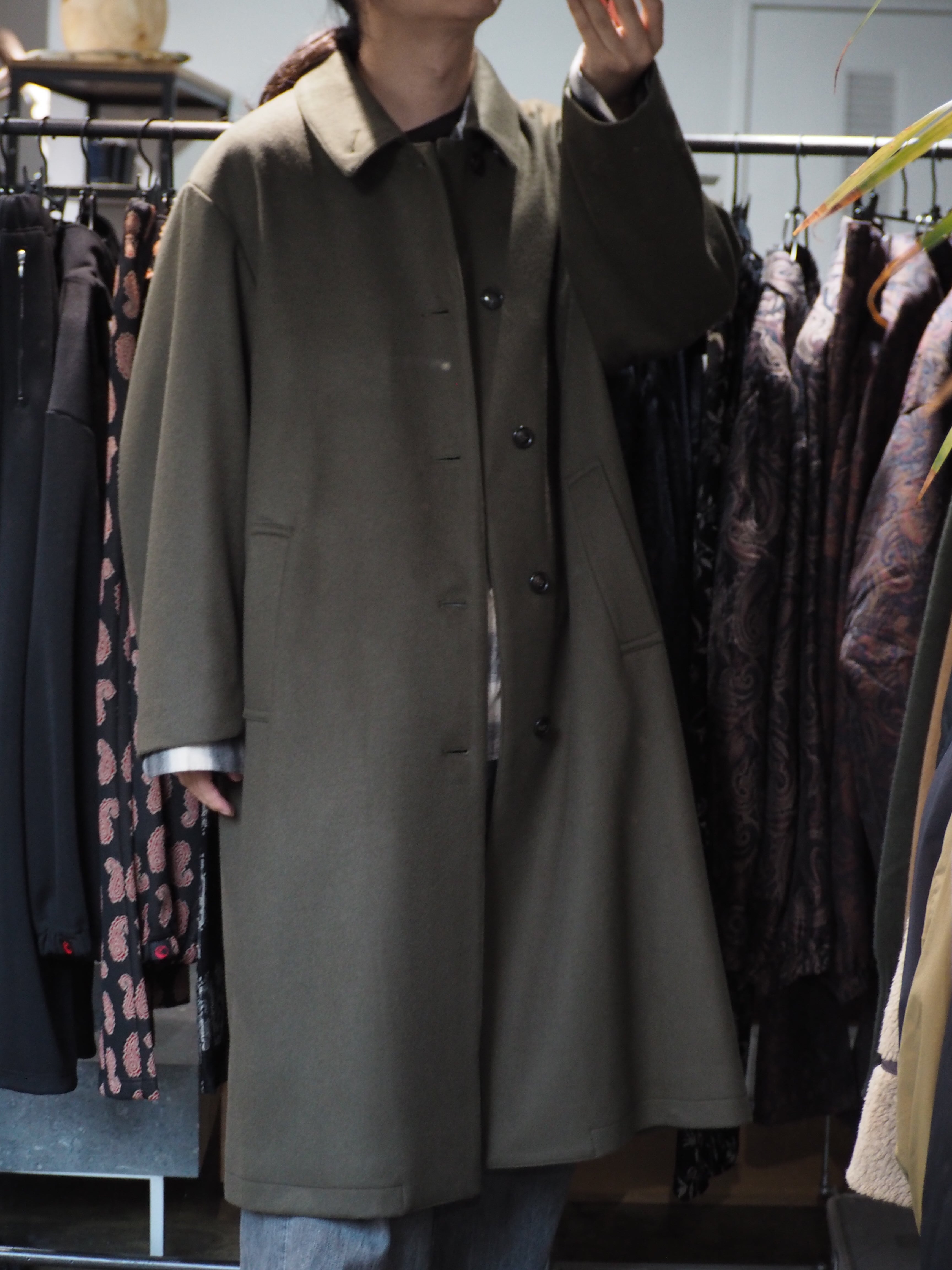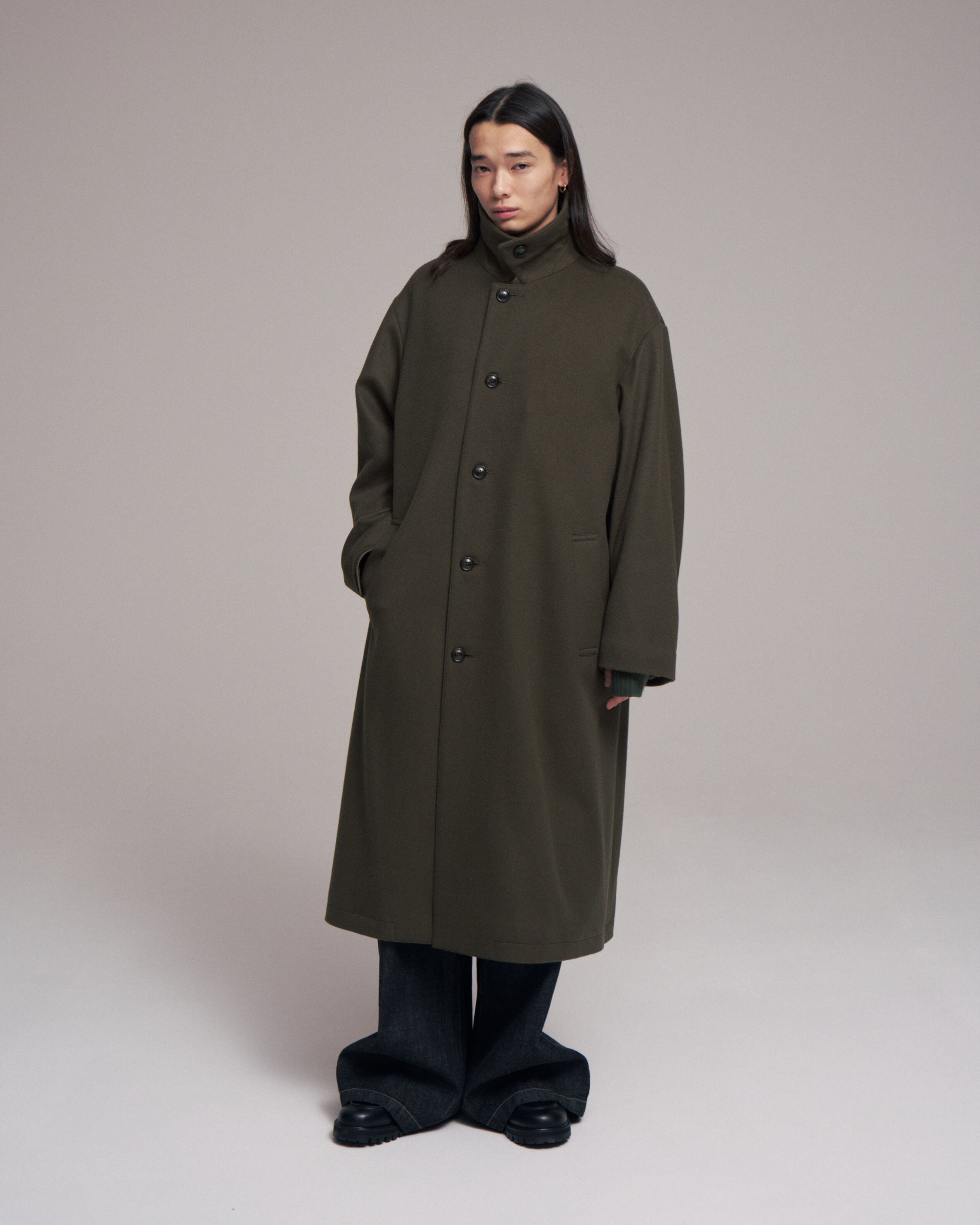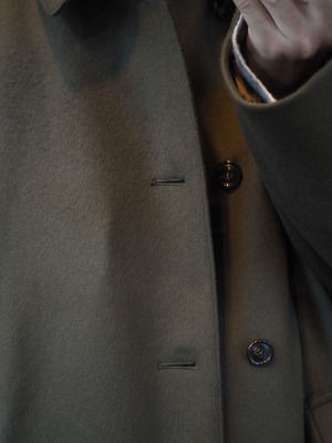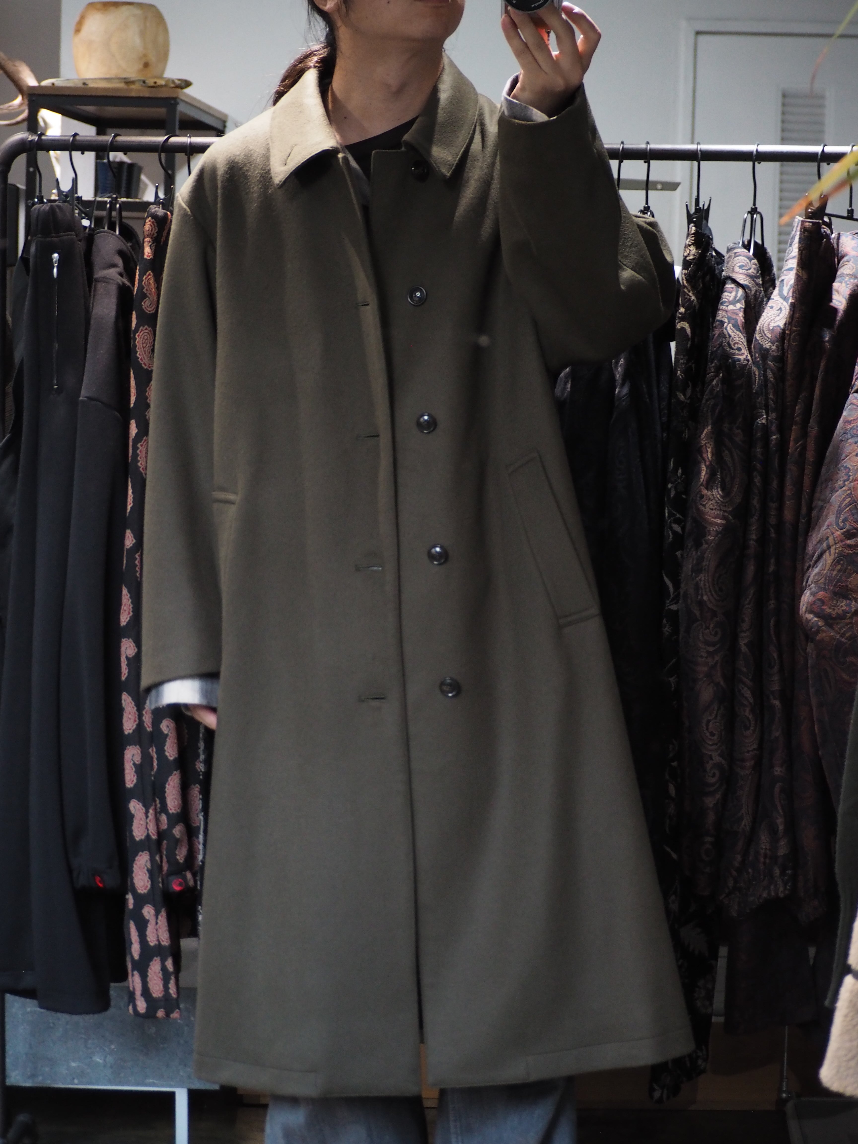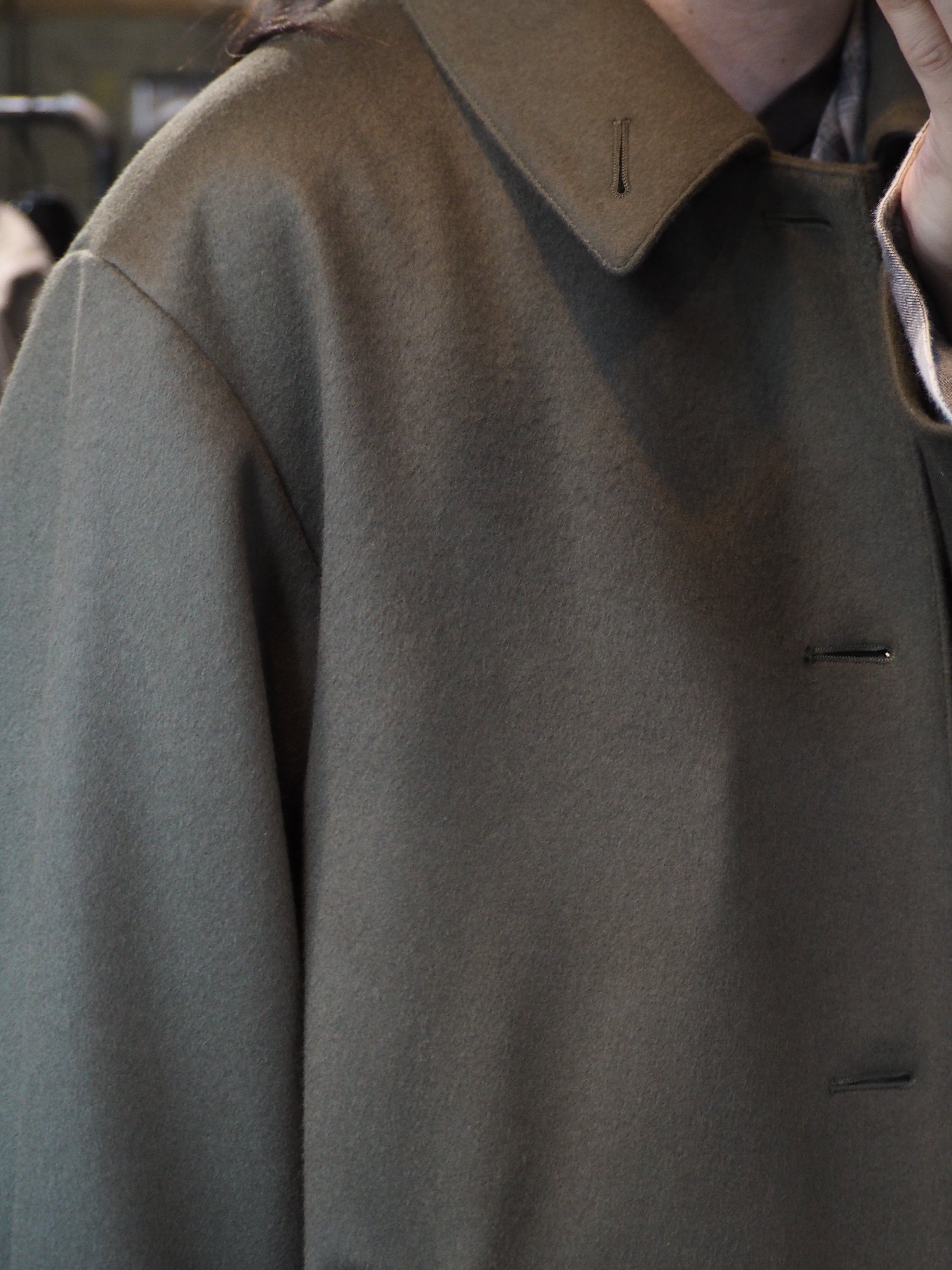 super100ウールで織られたウール100%メルトンを使用し作製したステンカラーコート。