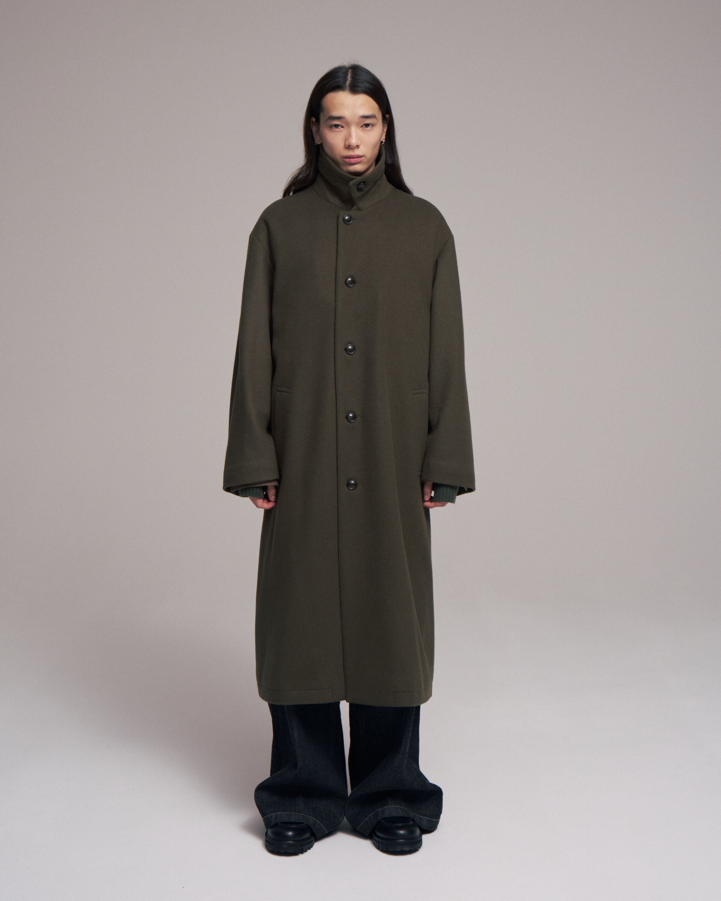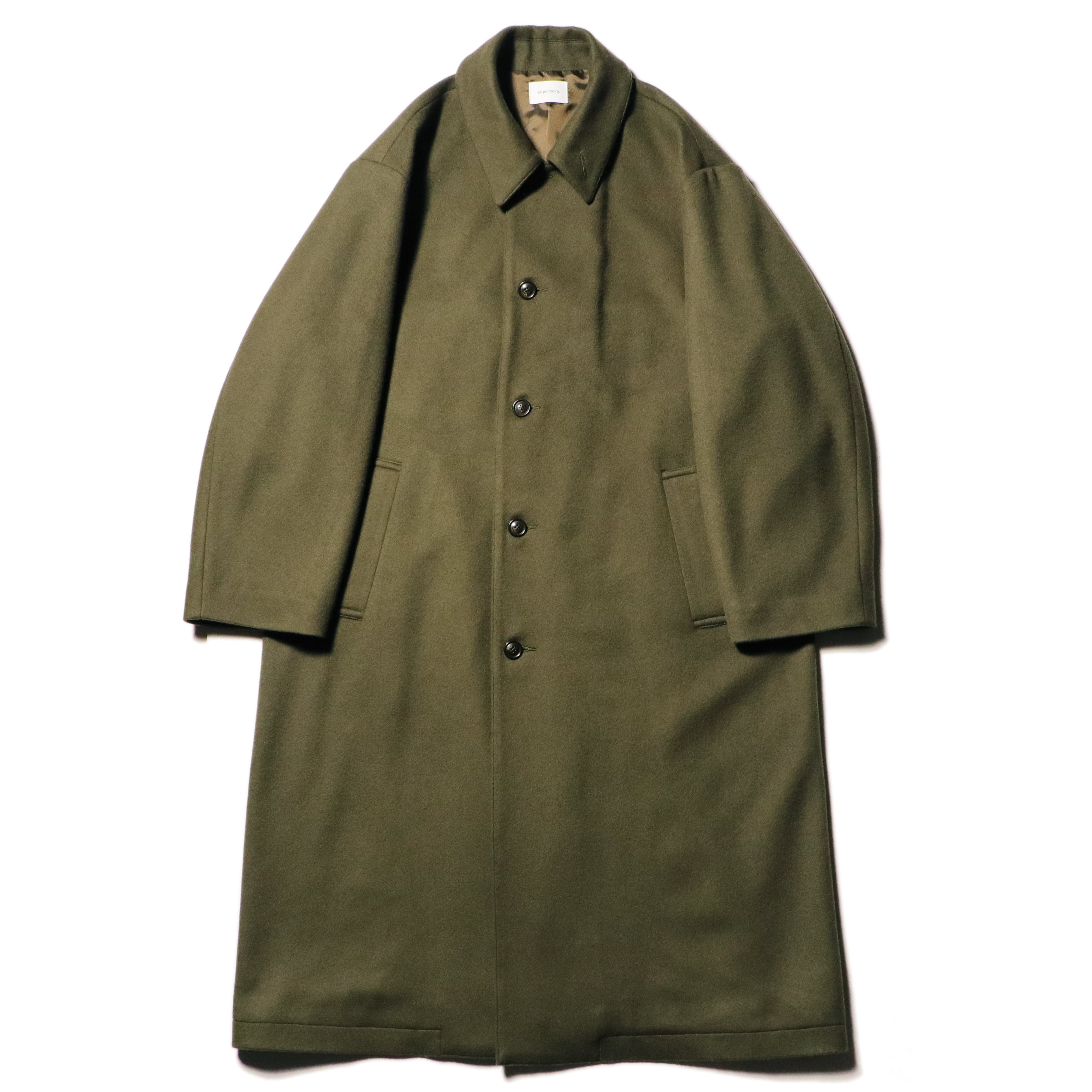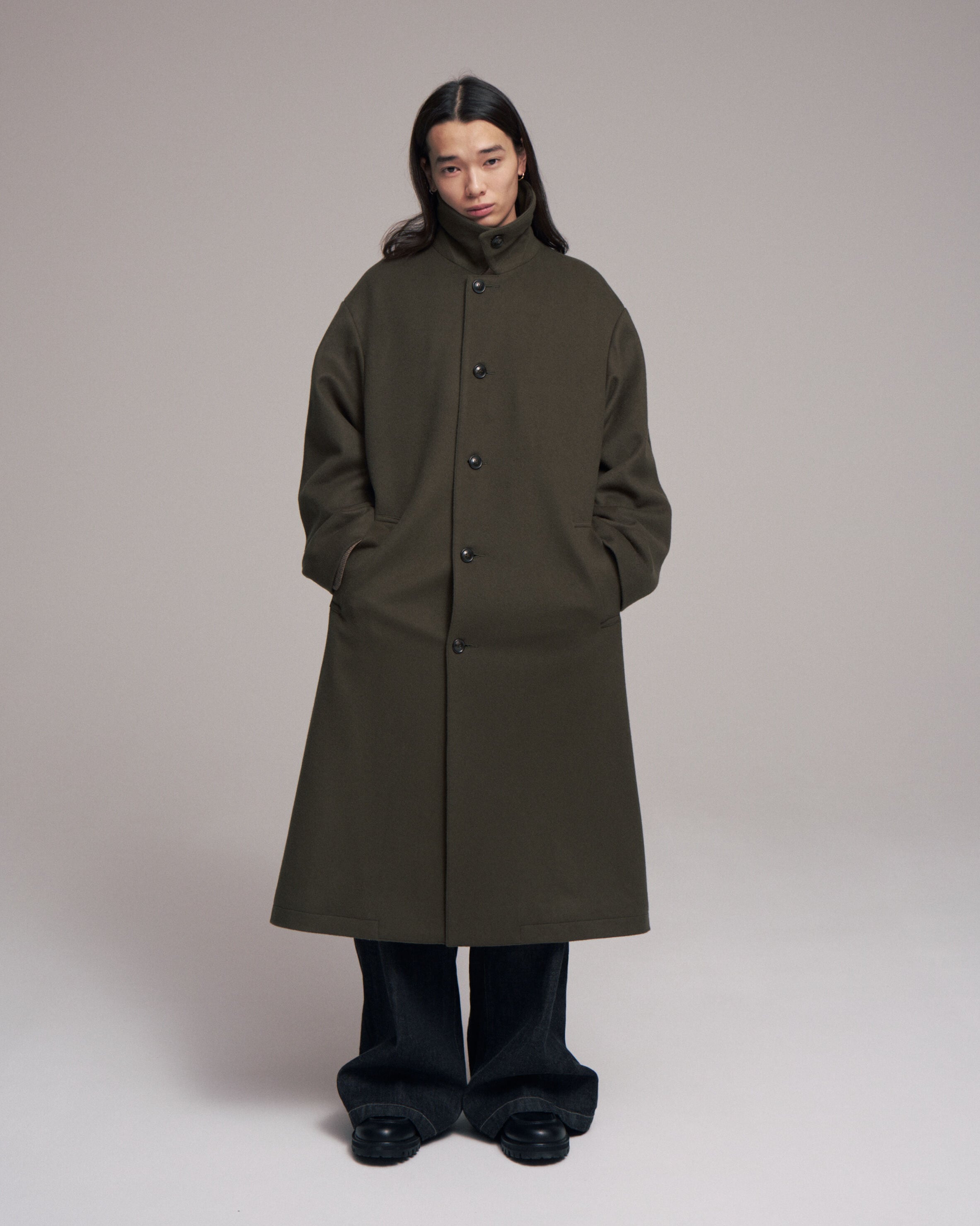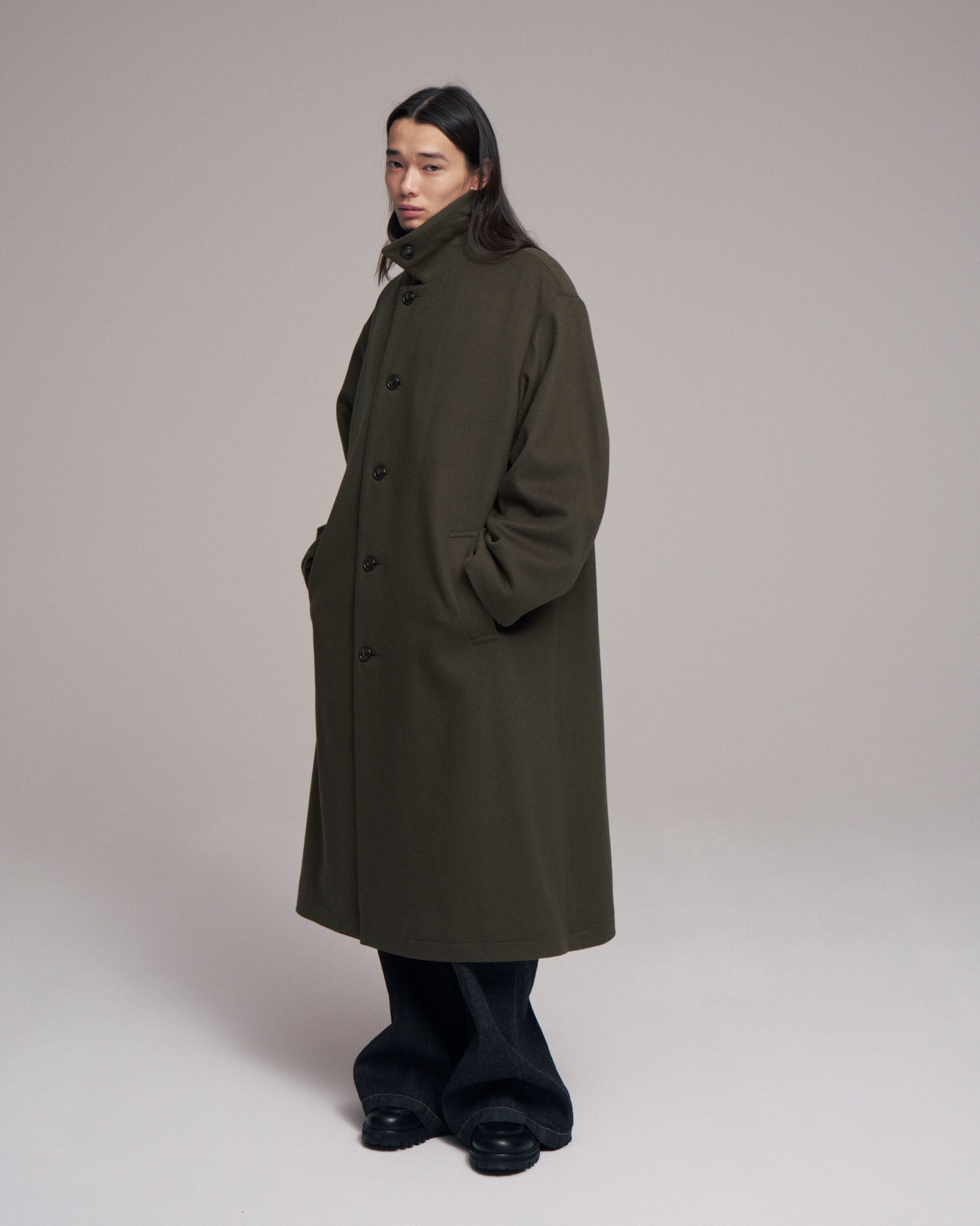 super100ウールで織られたウール100%メルトンを使用し作製したステンカラーコート。