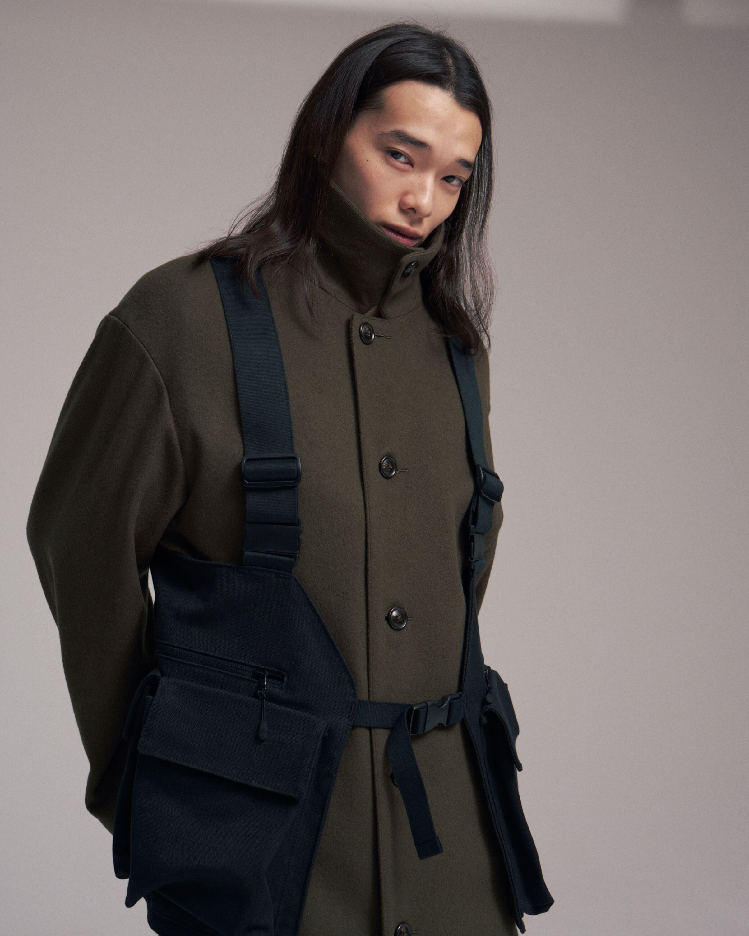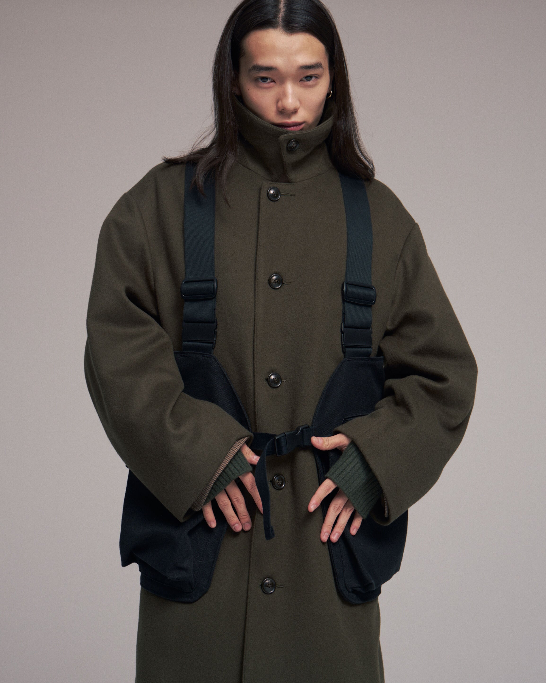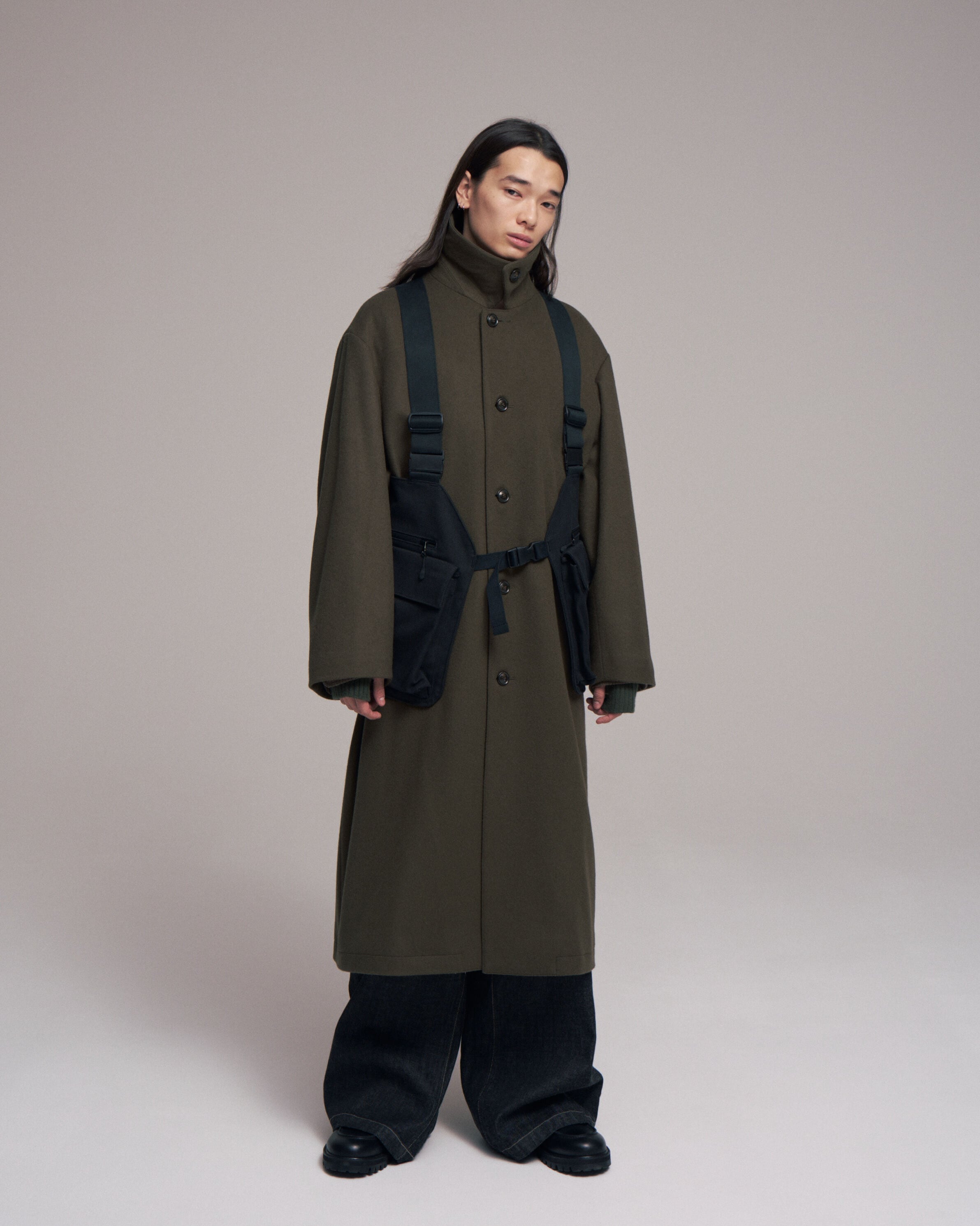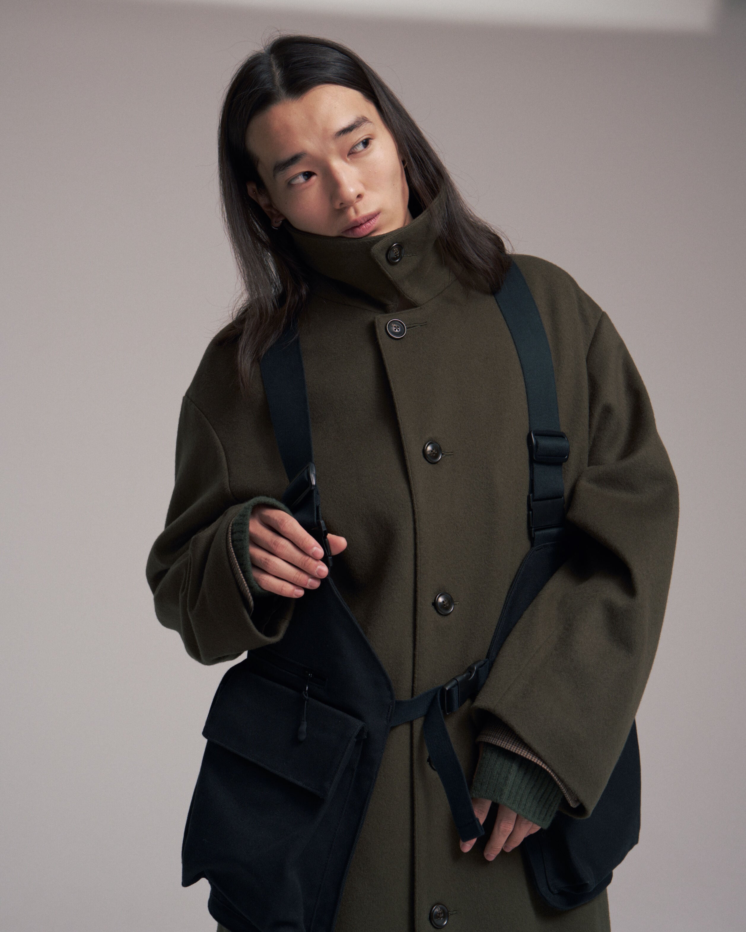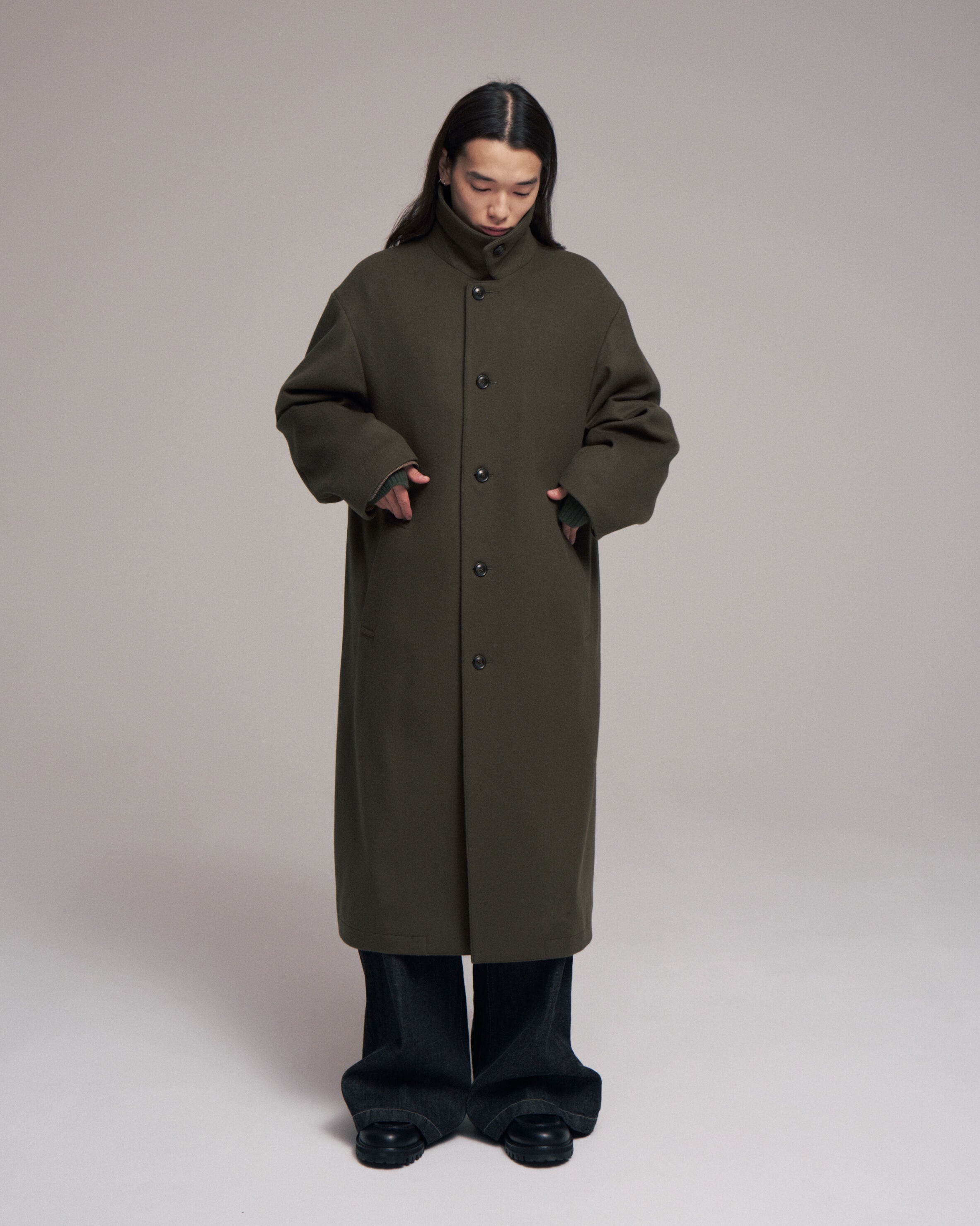 super100ウールで織られたウール100%メルトンを使用し作製したステンカラーコート。