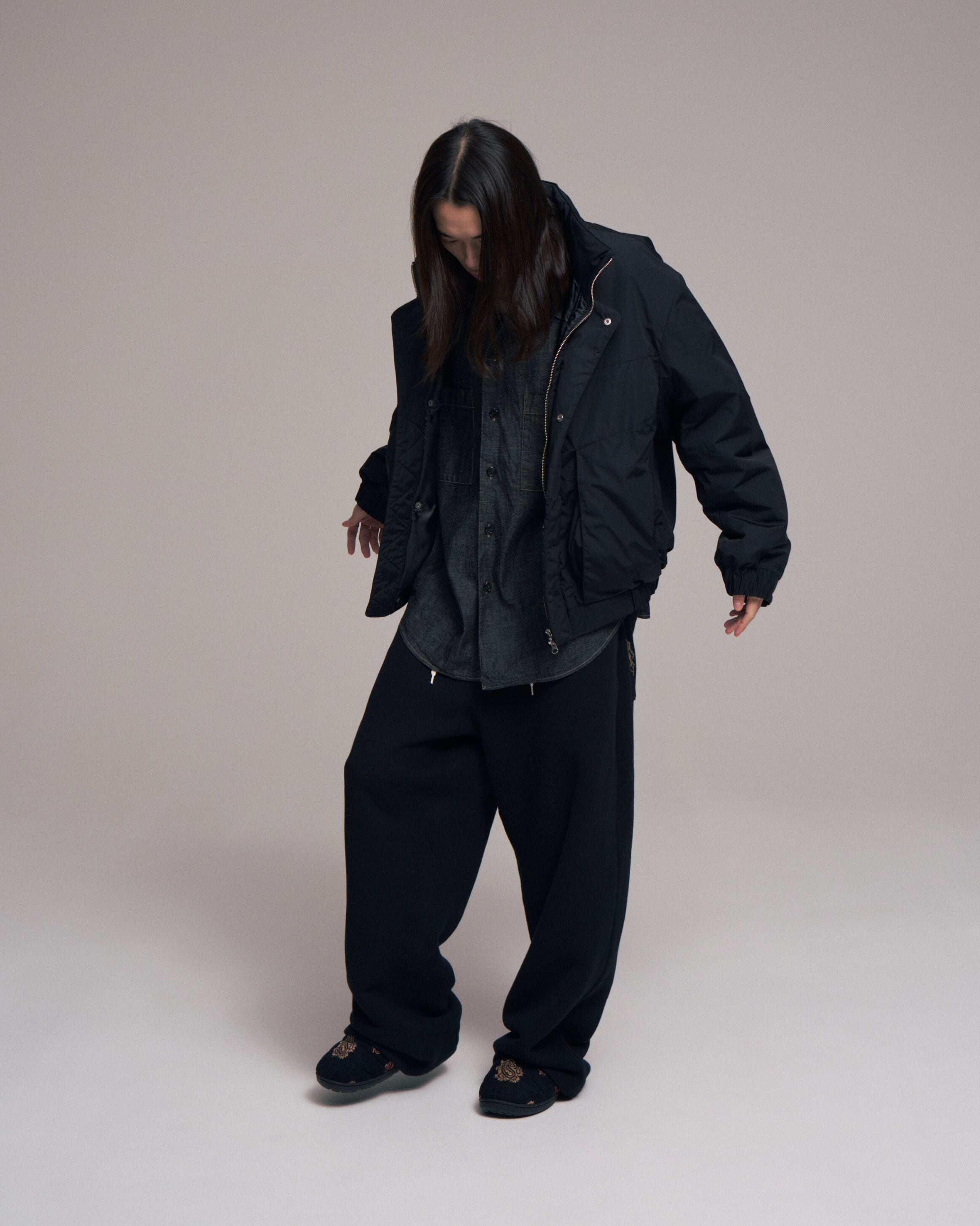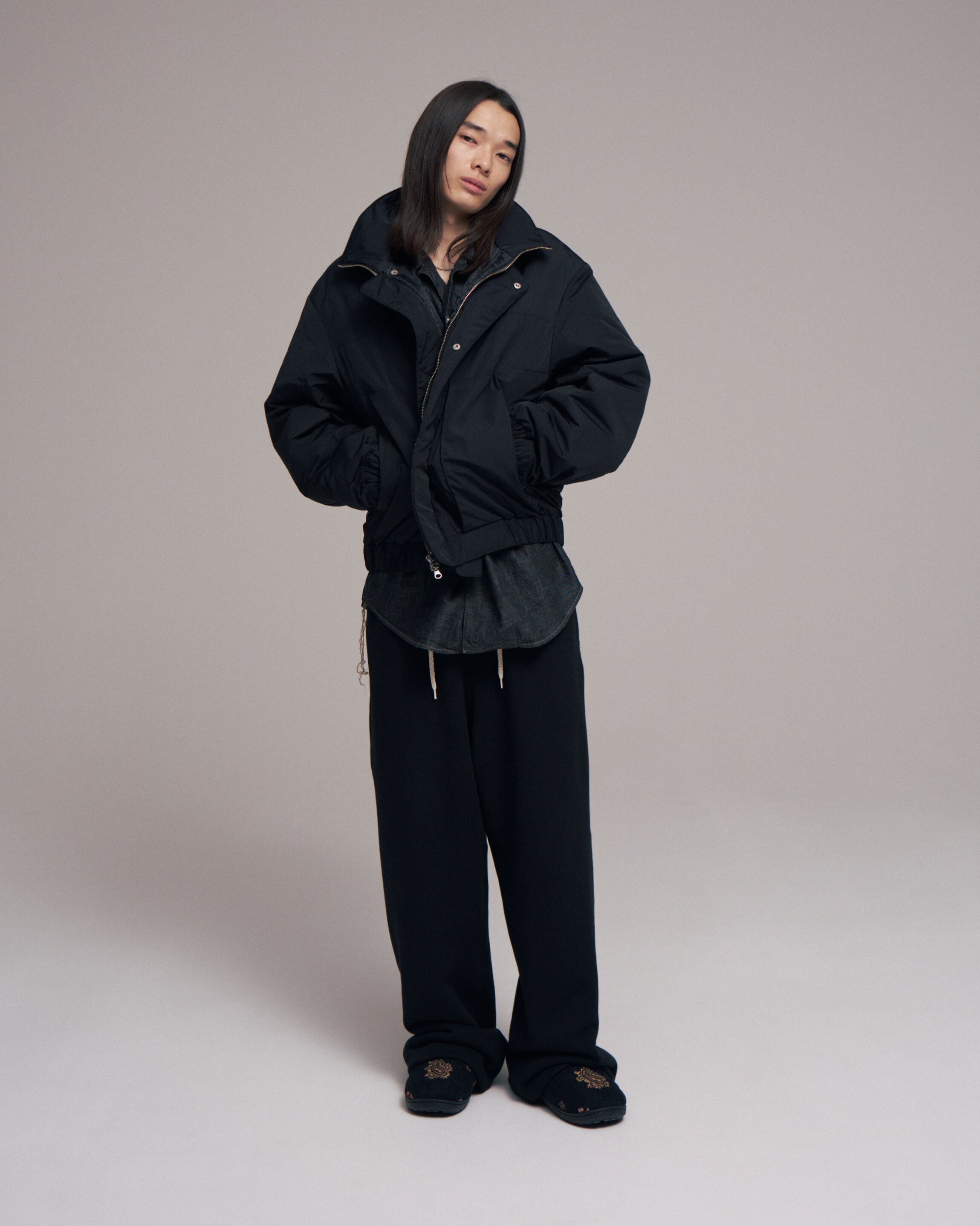 ゆったりとした身幅に裾、袖口はゴムで絞り、バルーンのようなシルエットをイメージし、