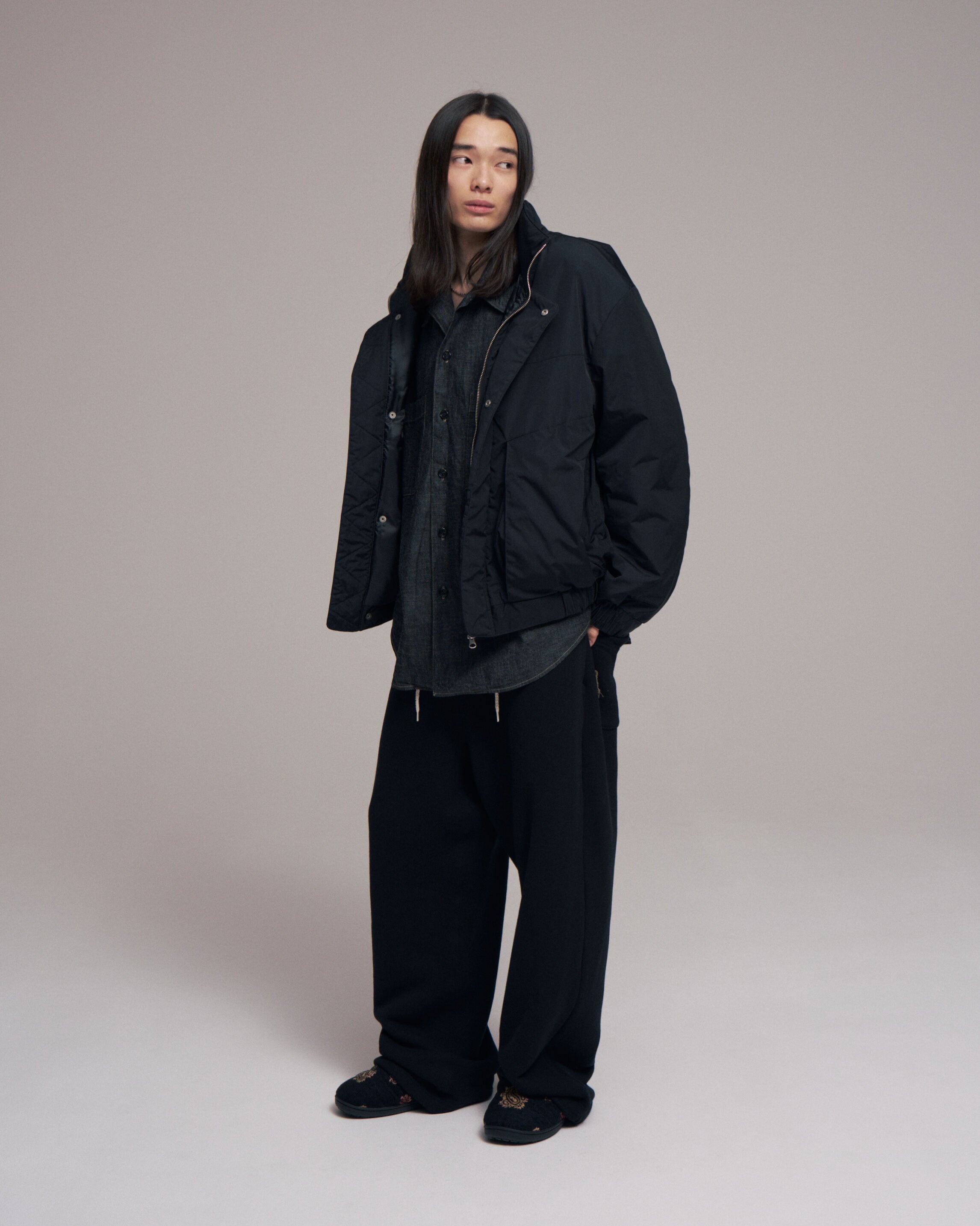 密度ナイロンタフタを使用し制作した中綿ジャケットです。