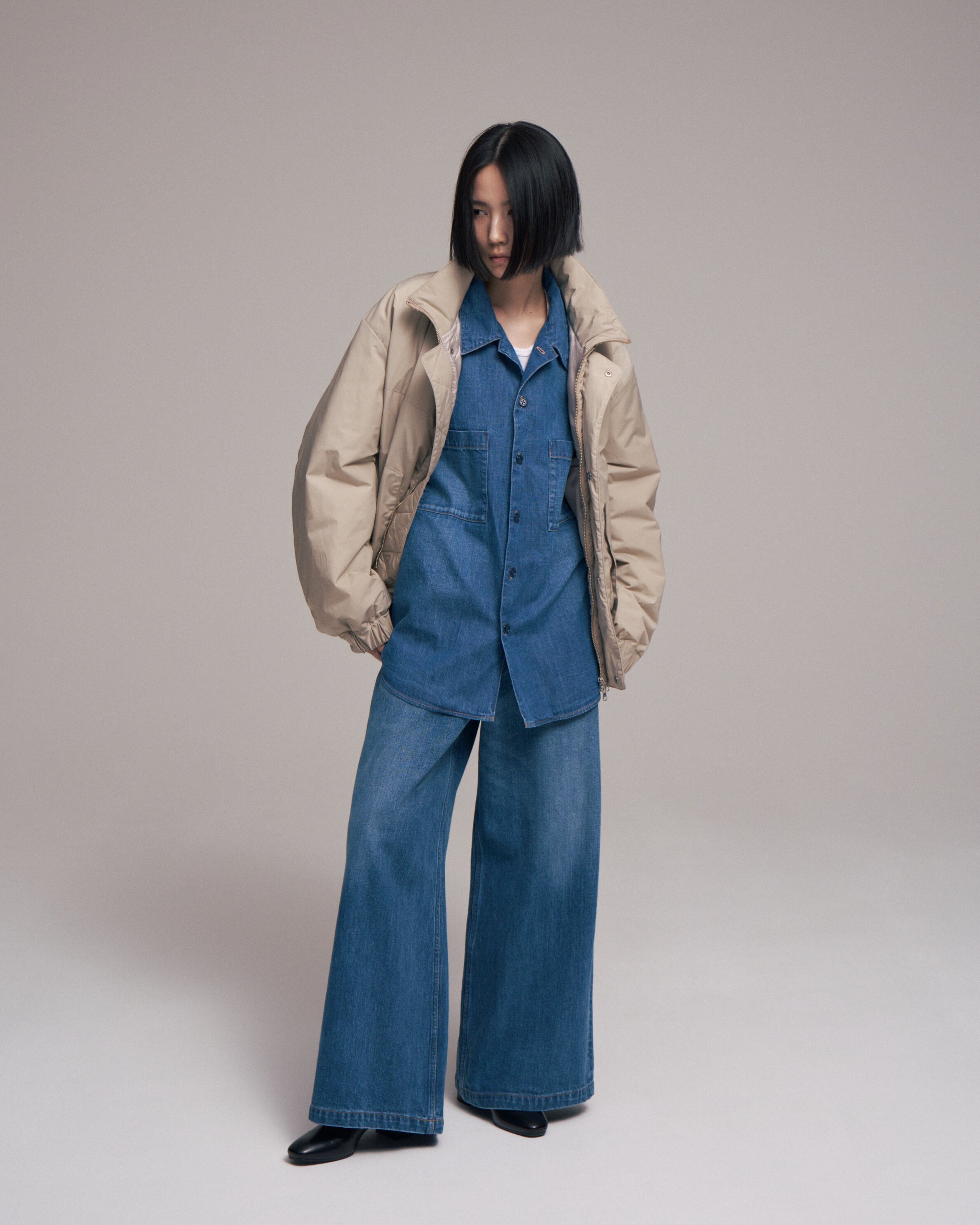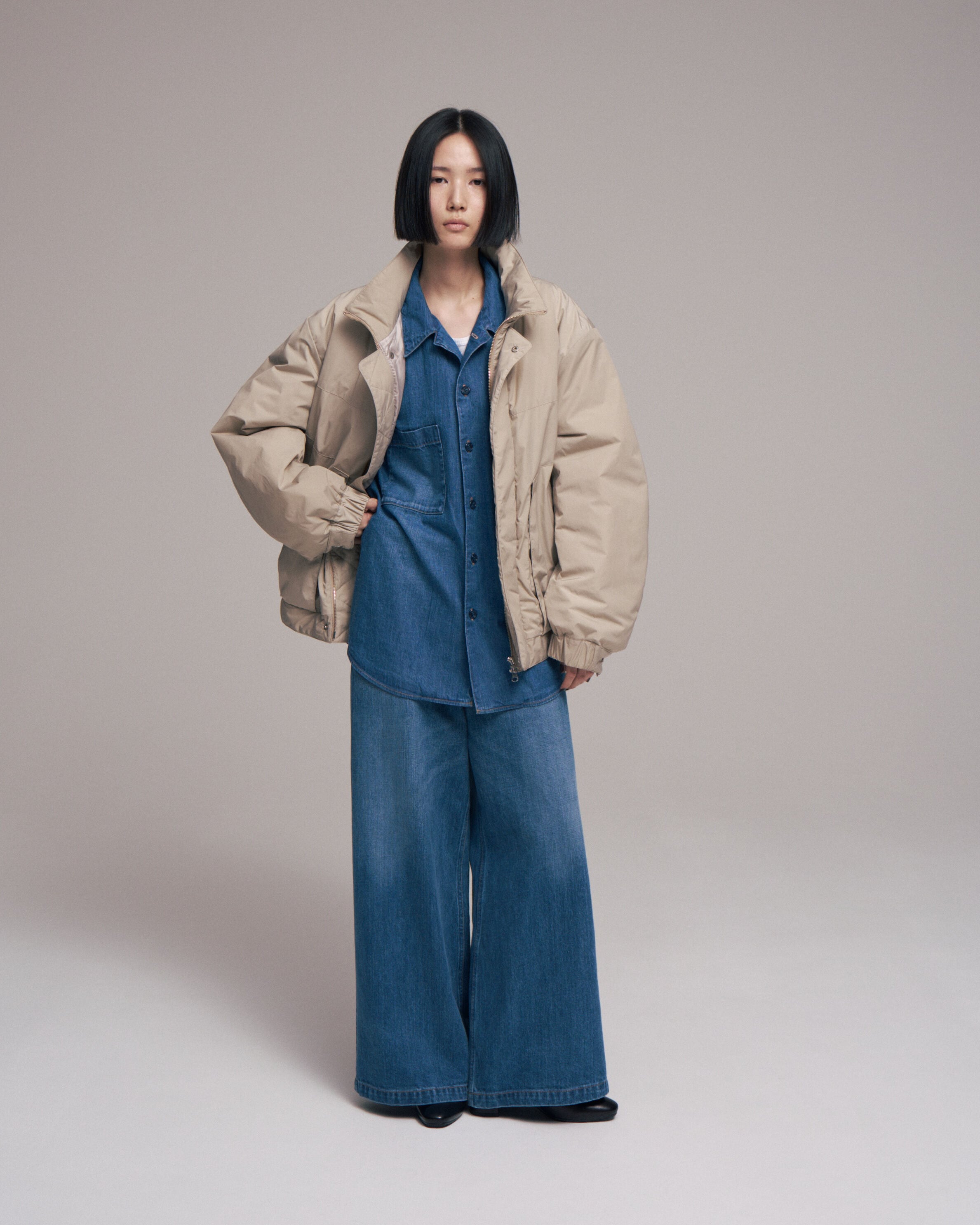 ゆったりとした身幅に裾、袖口はゴムで絞り、バルーンのようなシルエットをイメージし、