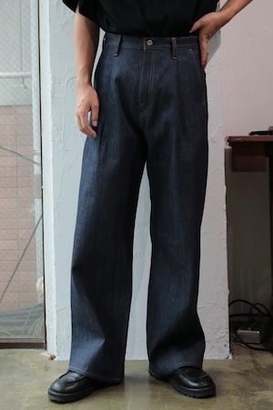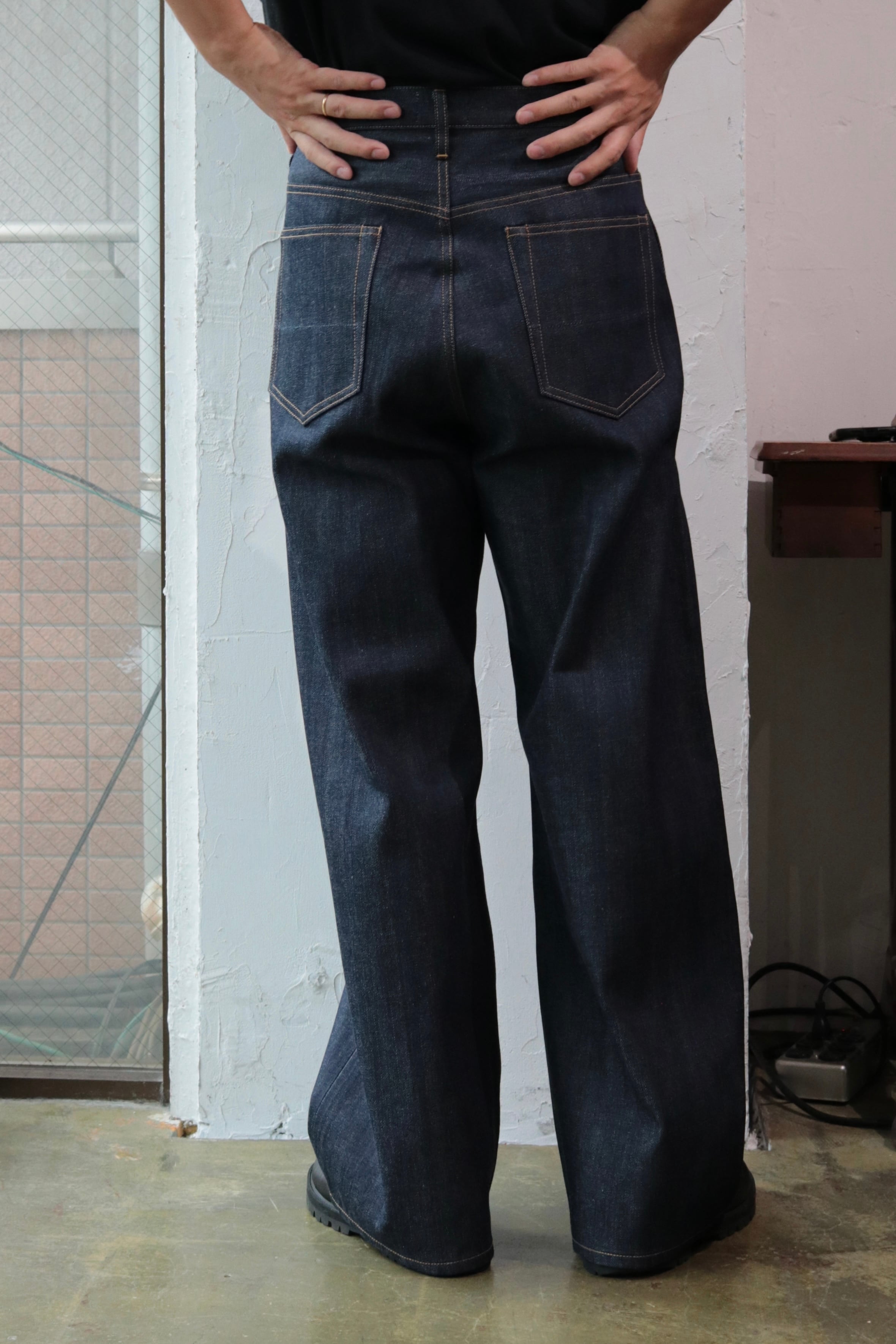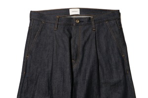 1タック入りのワイドシルエットですが、いわゆるジーパンのシルエットではなく、上品に履けるスラックスのような、美しいシルエットを目指して制作しております。