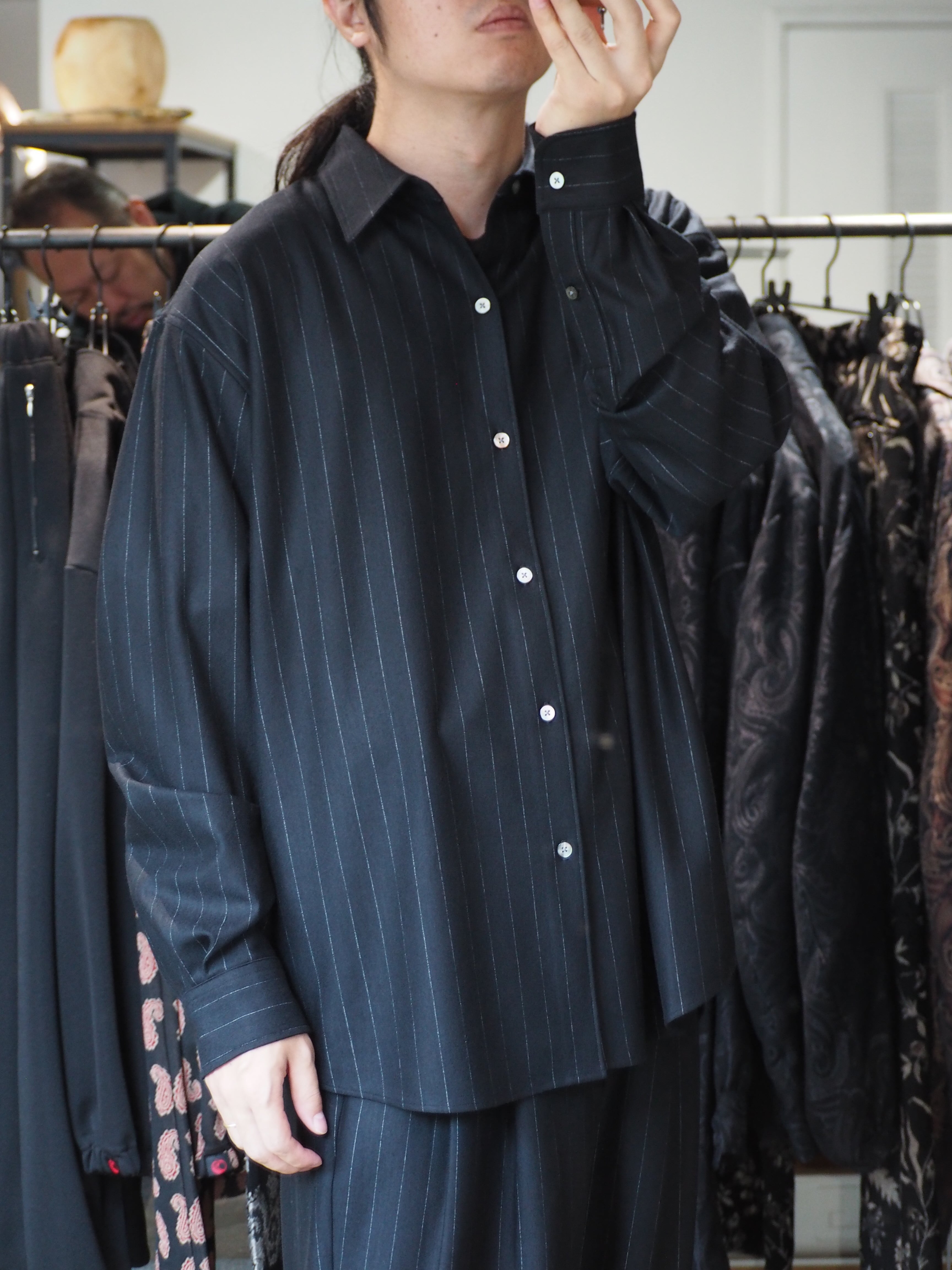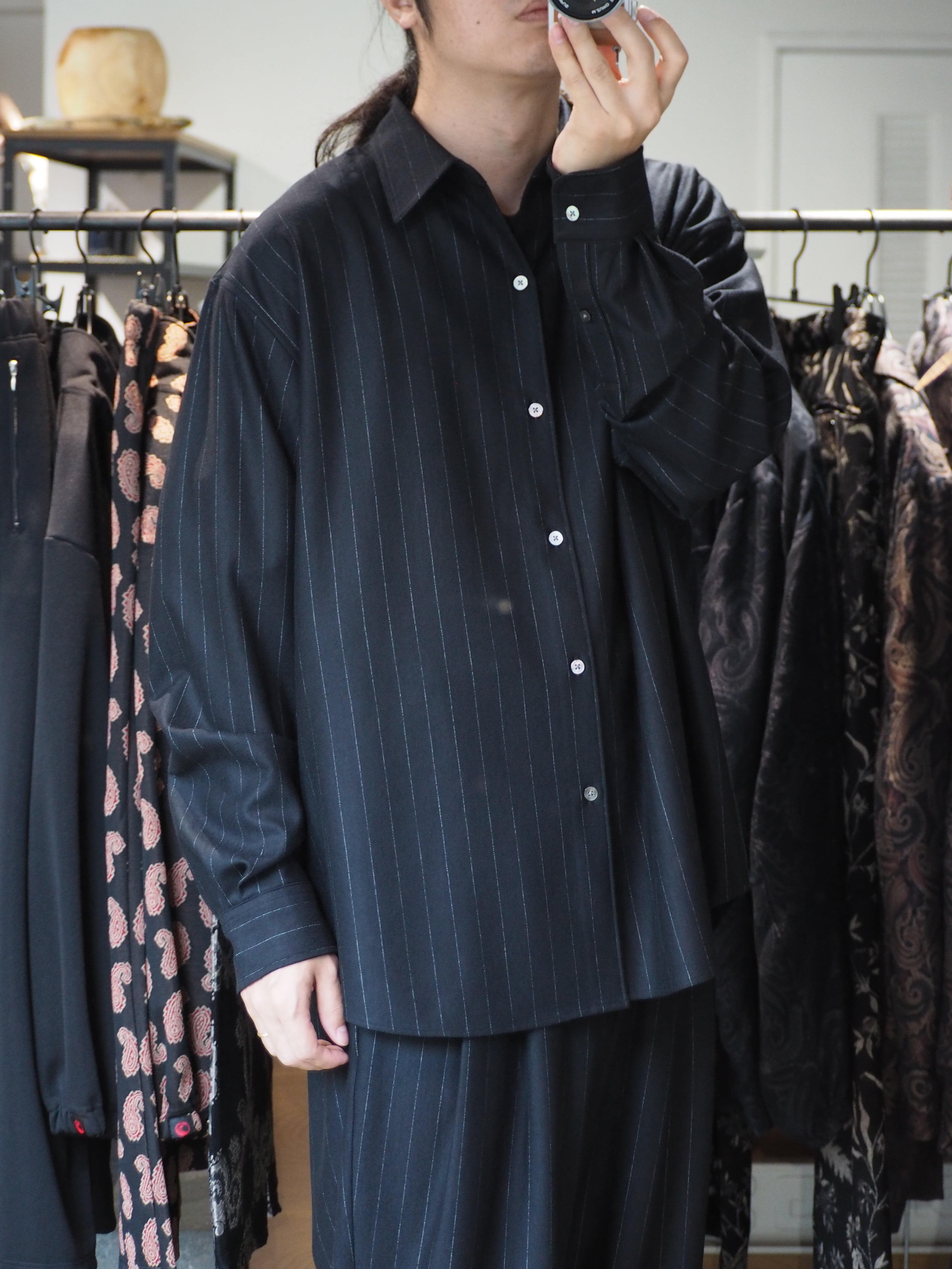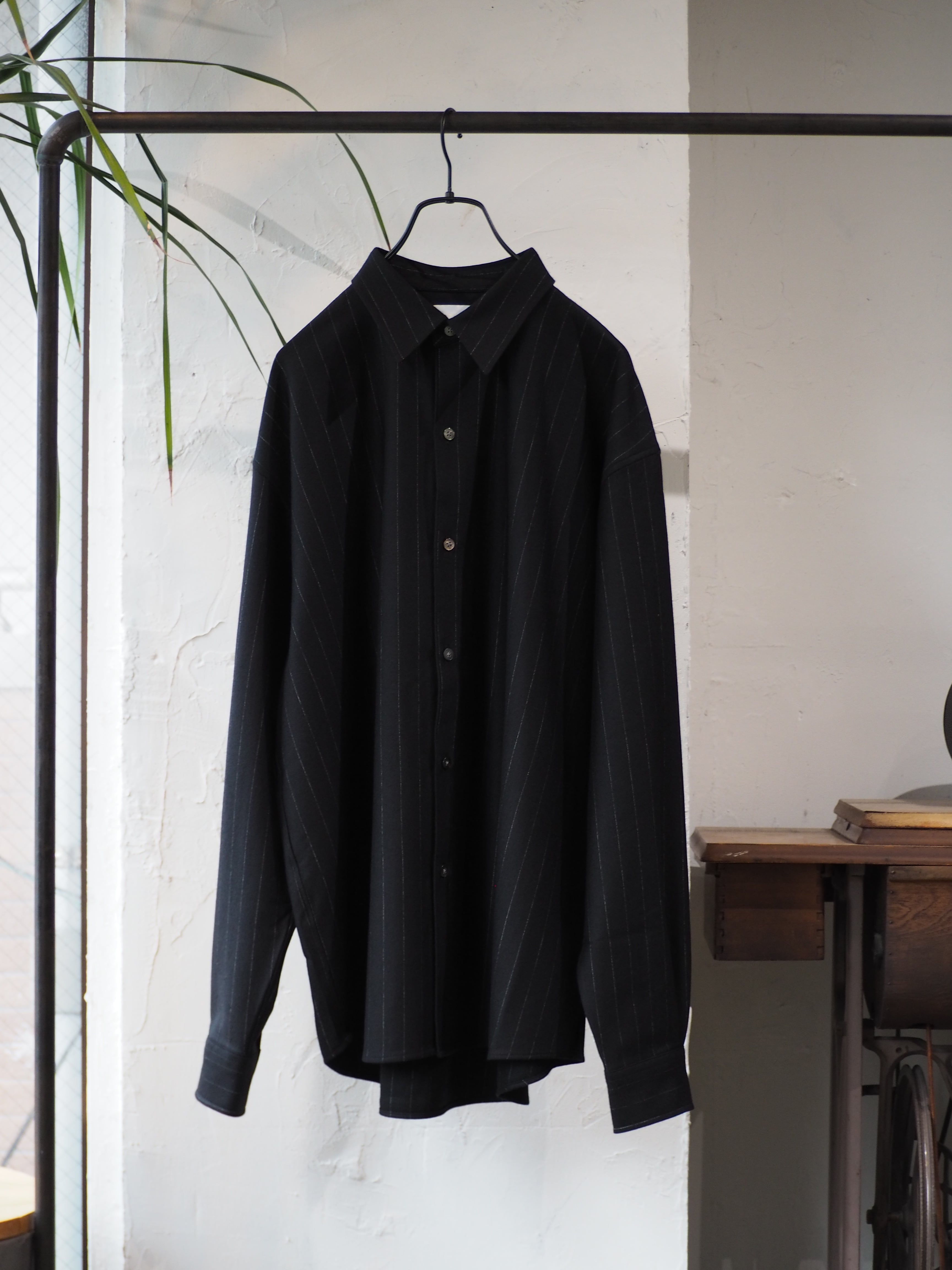 縫製は、ウールニットを縫うことができる最大の細かさで運針を走らせたドレス仕様シャツ。ヨークと袖の始末はドレスシャツ仕様に仕上げ、インナーでもアウターでも着用頂ける仕様です。程よいゆるさのシルエットはどのようなシーンでも着用頂けます。