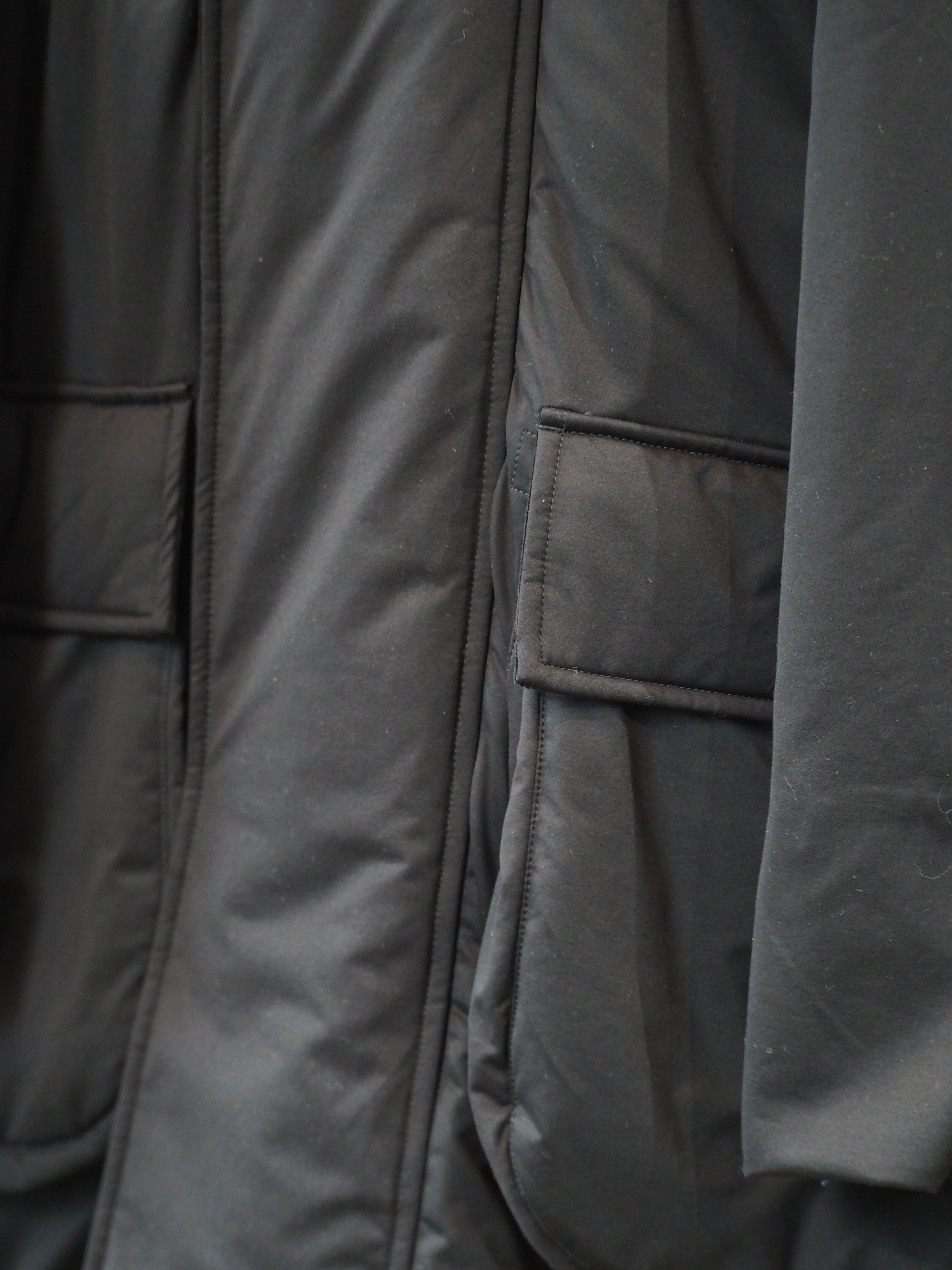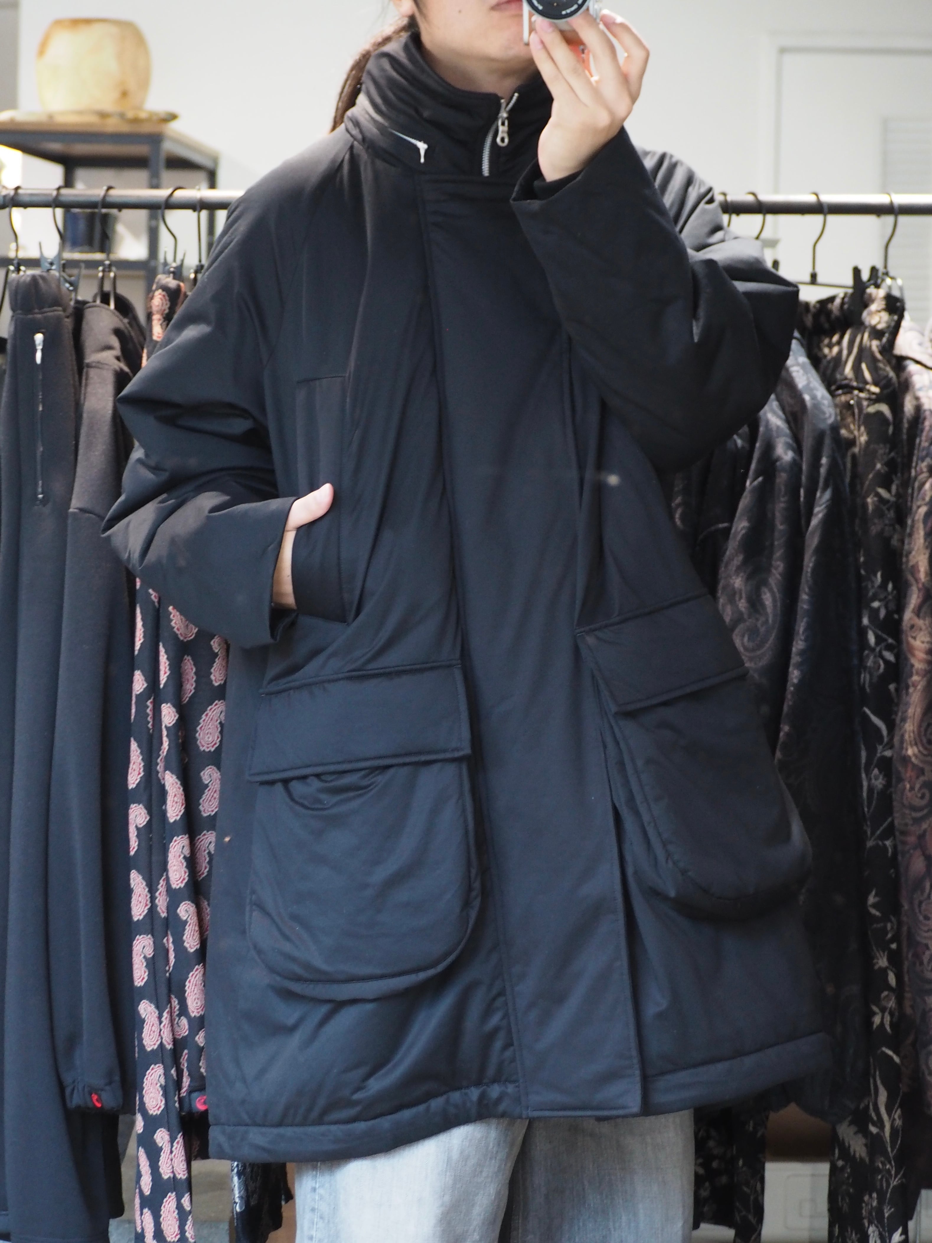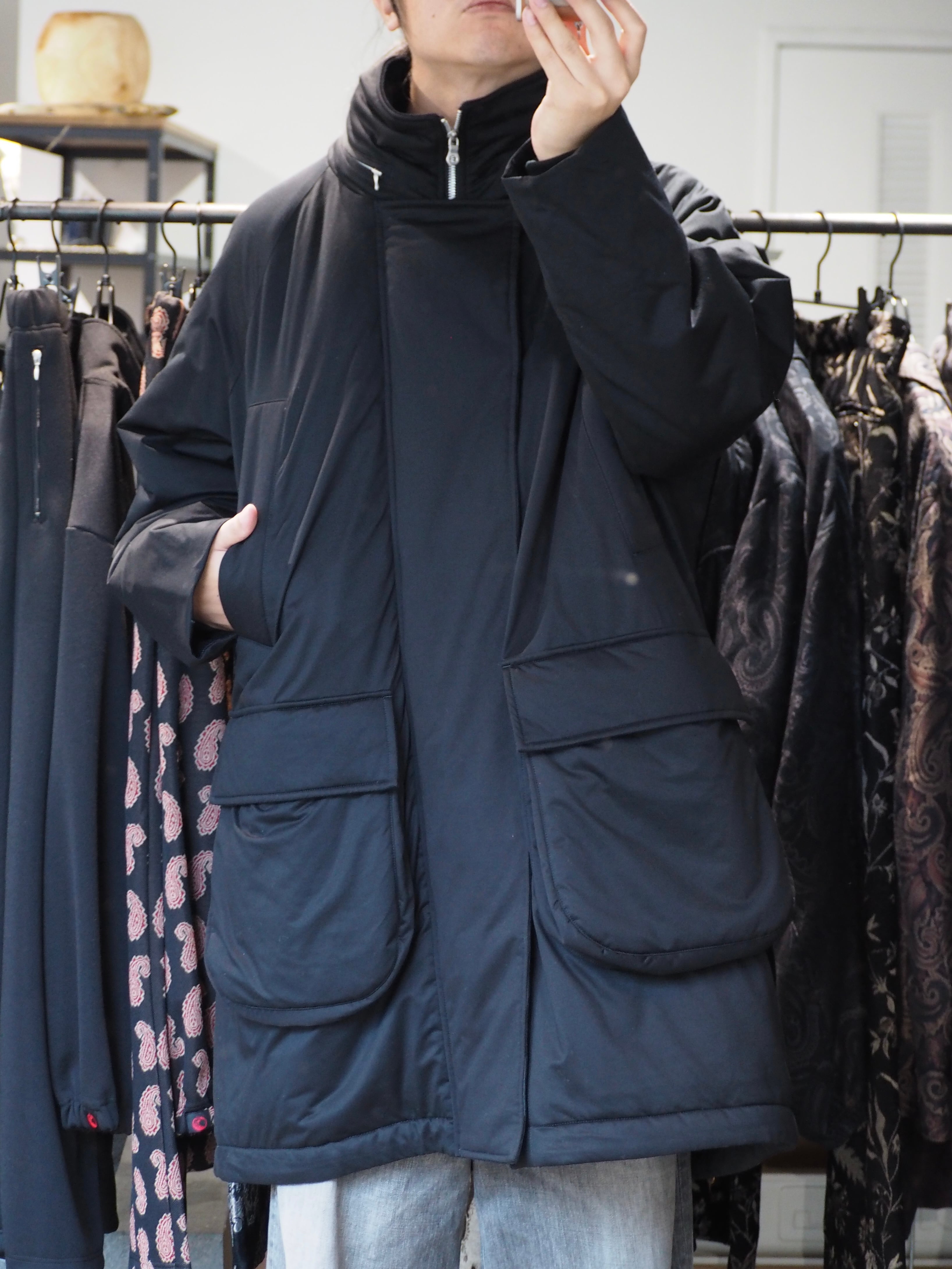その素材を贅沢に両面つかいで作成した中綿アウター。