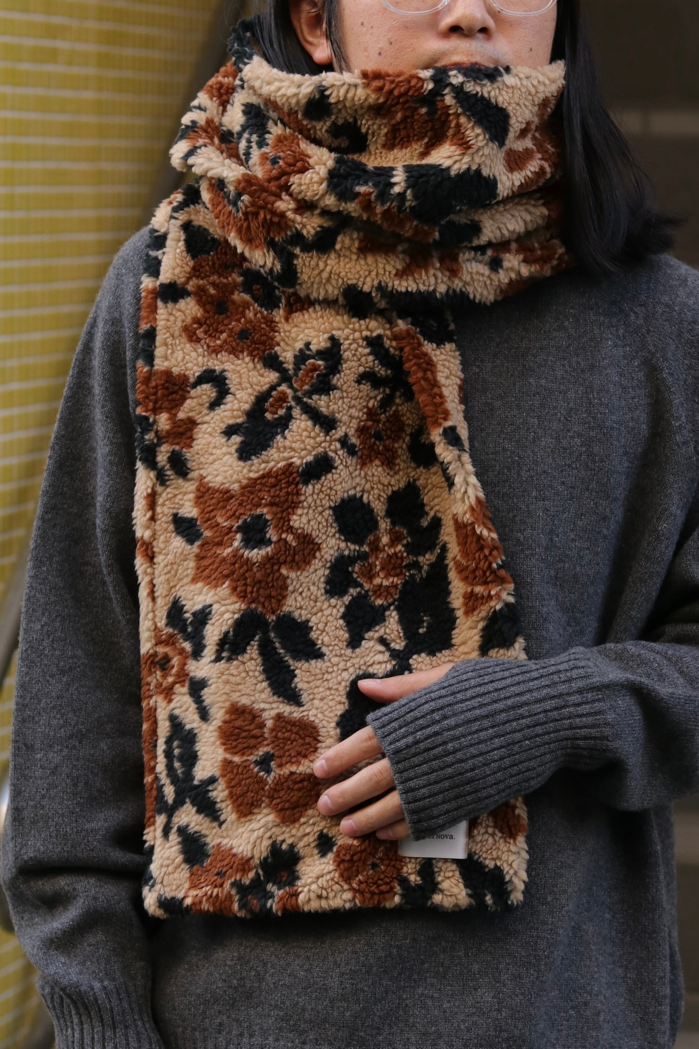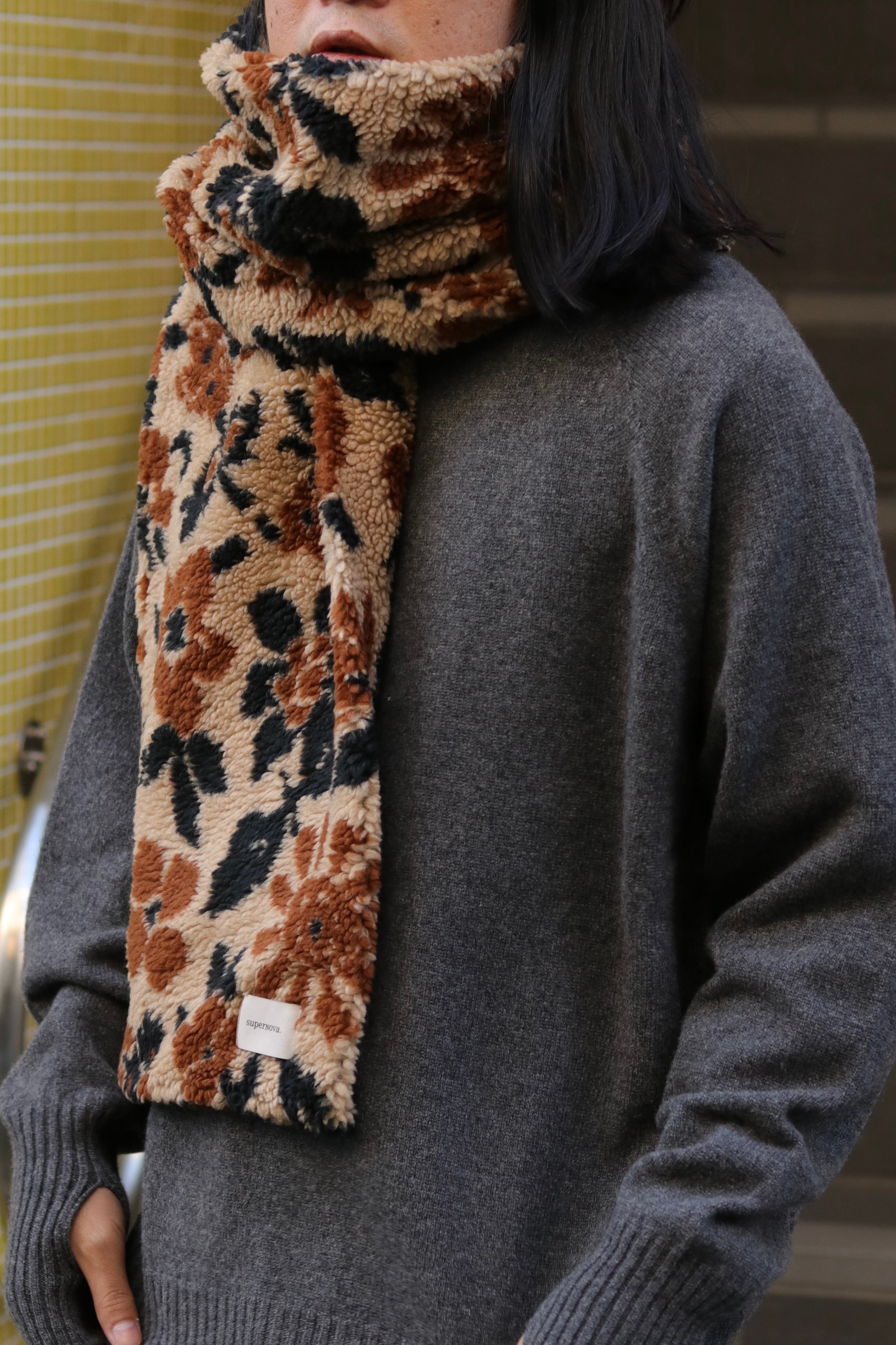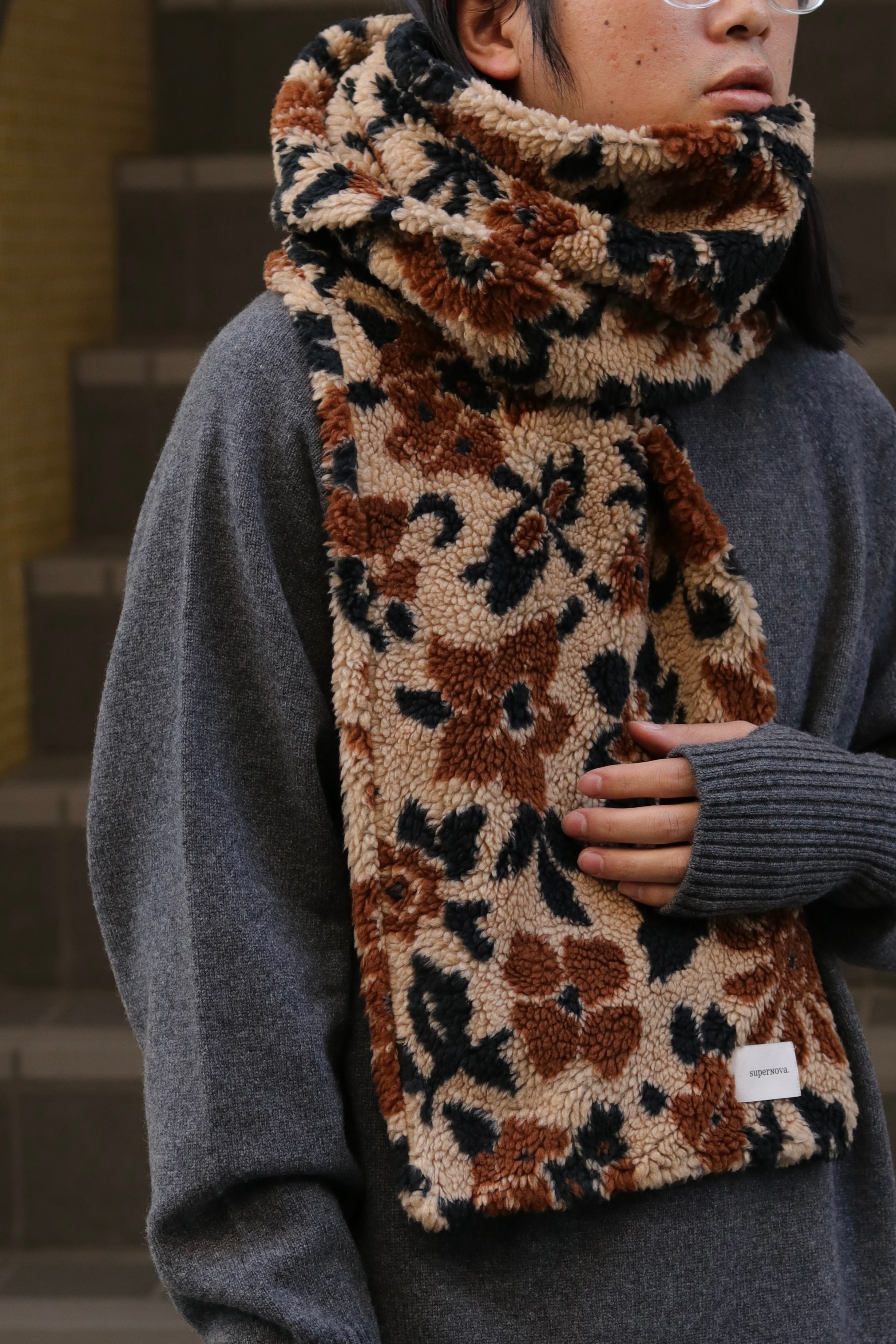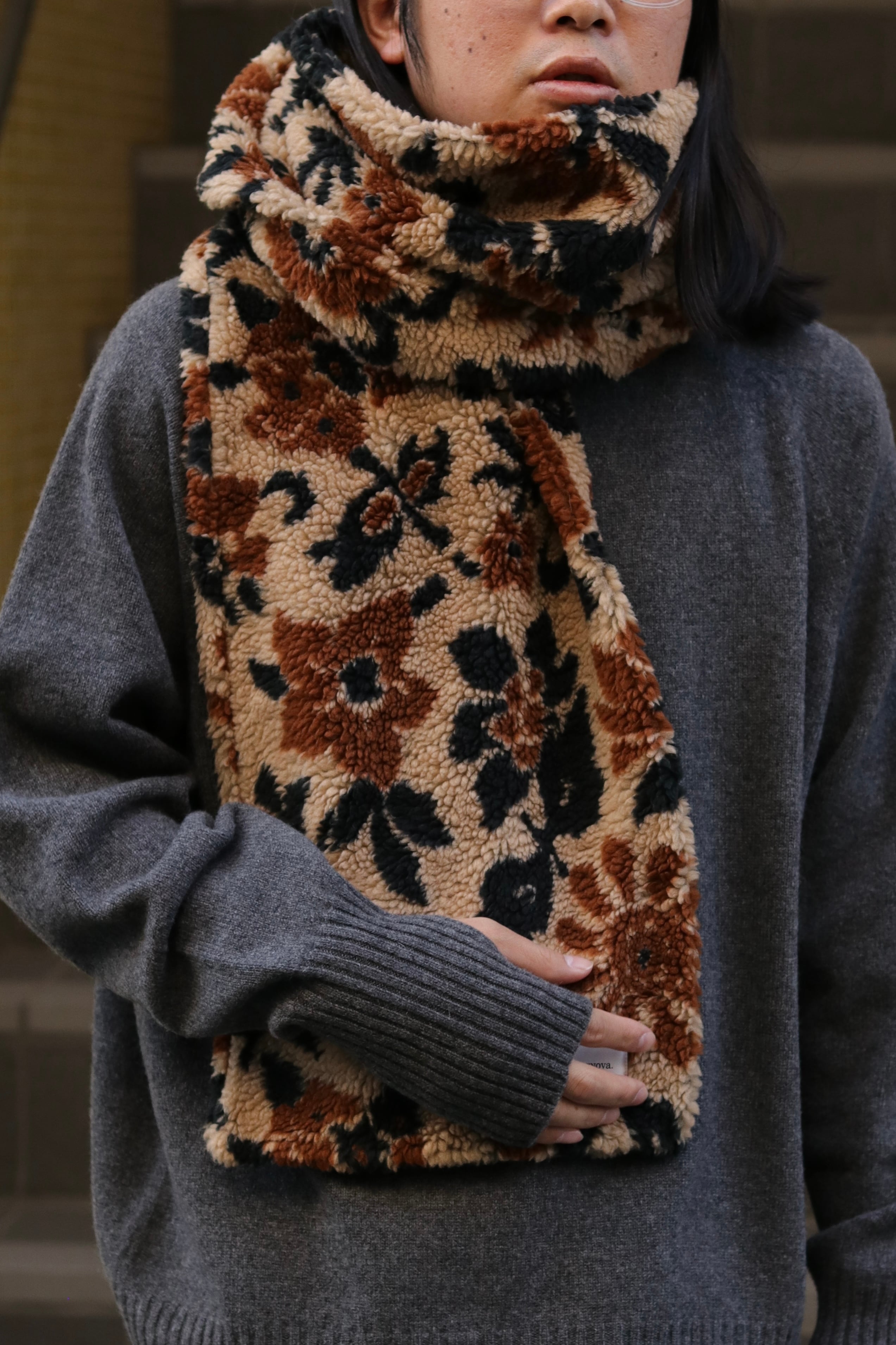 オリジナルで製作したフラワーカモジャガードボアを使用したマフラーです。
