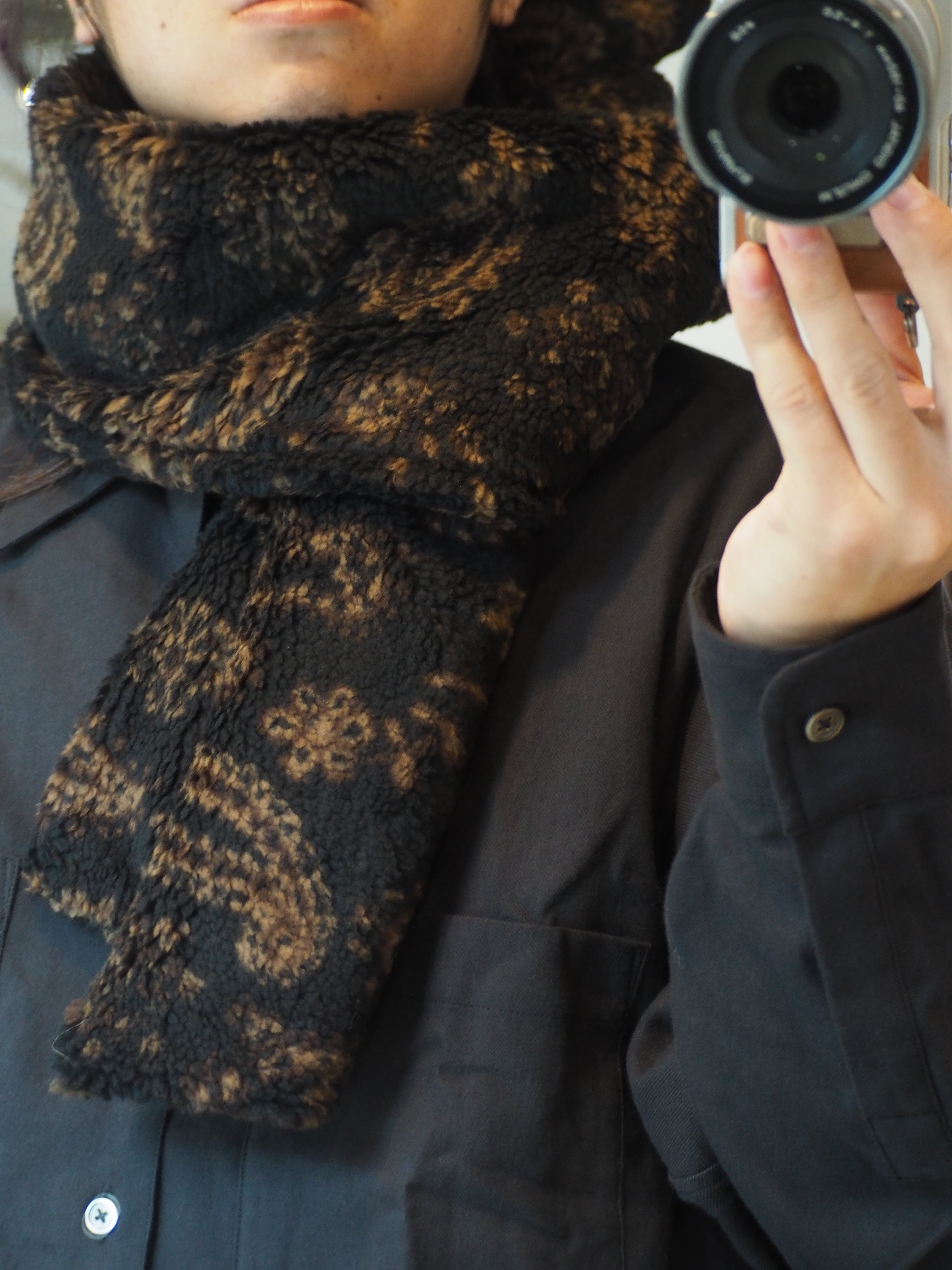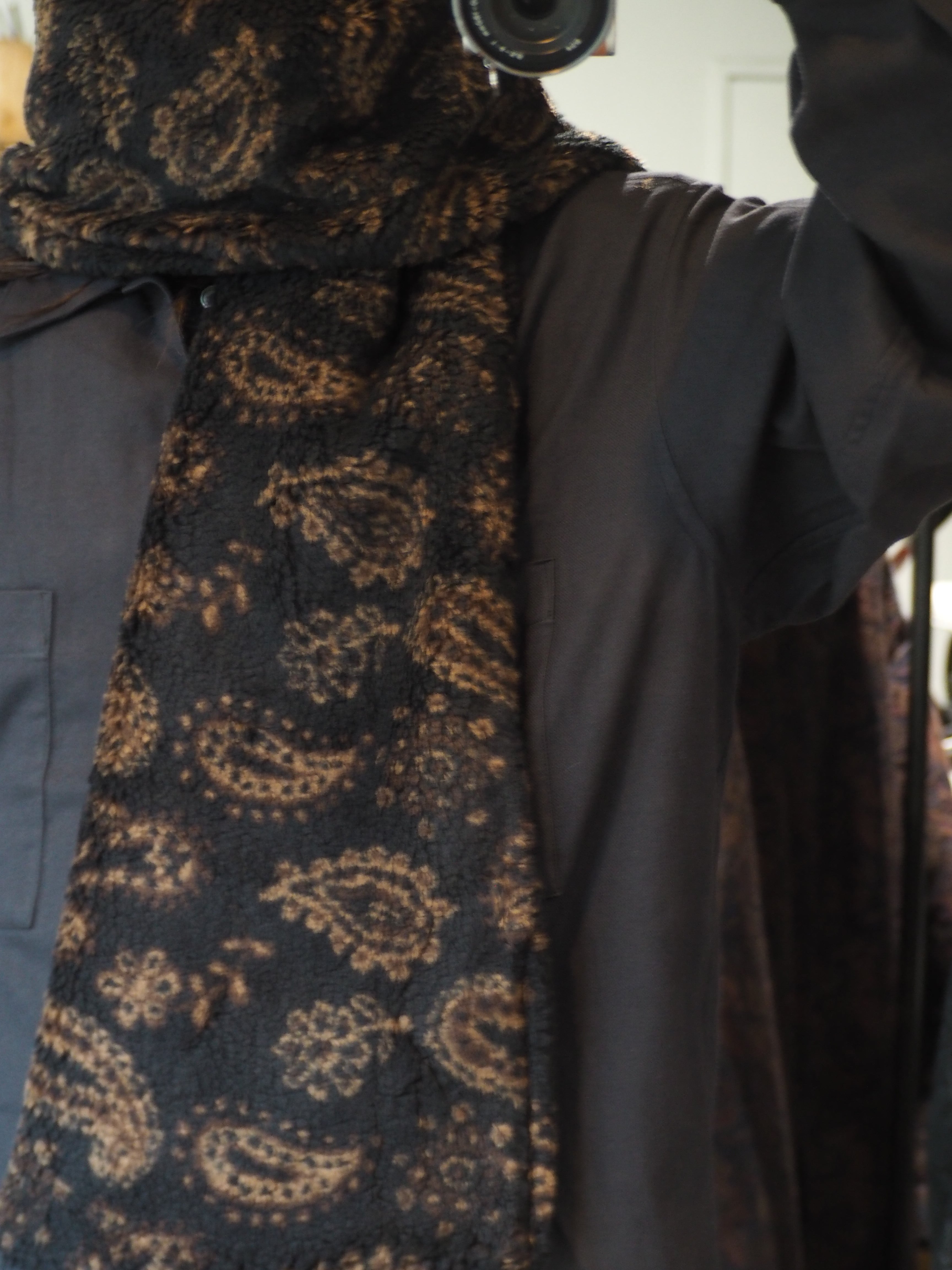 オリジナルで製作したペイズリージャガードボアを使用したマフラーです。