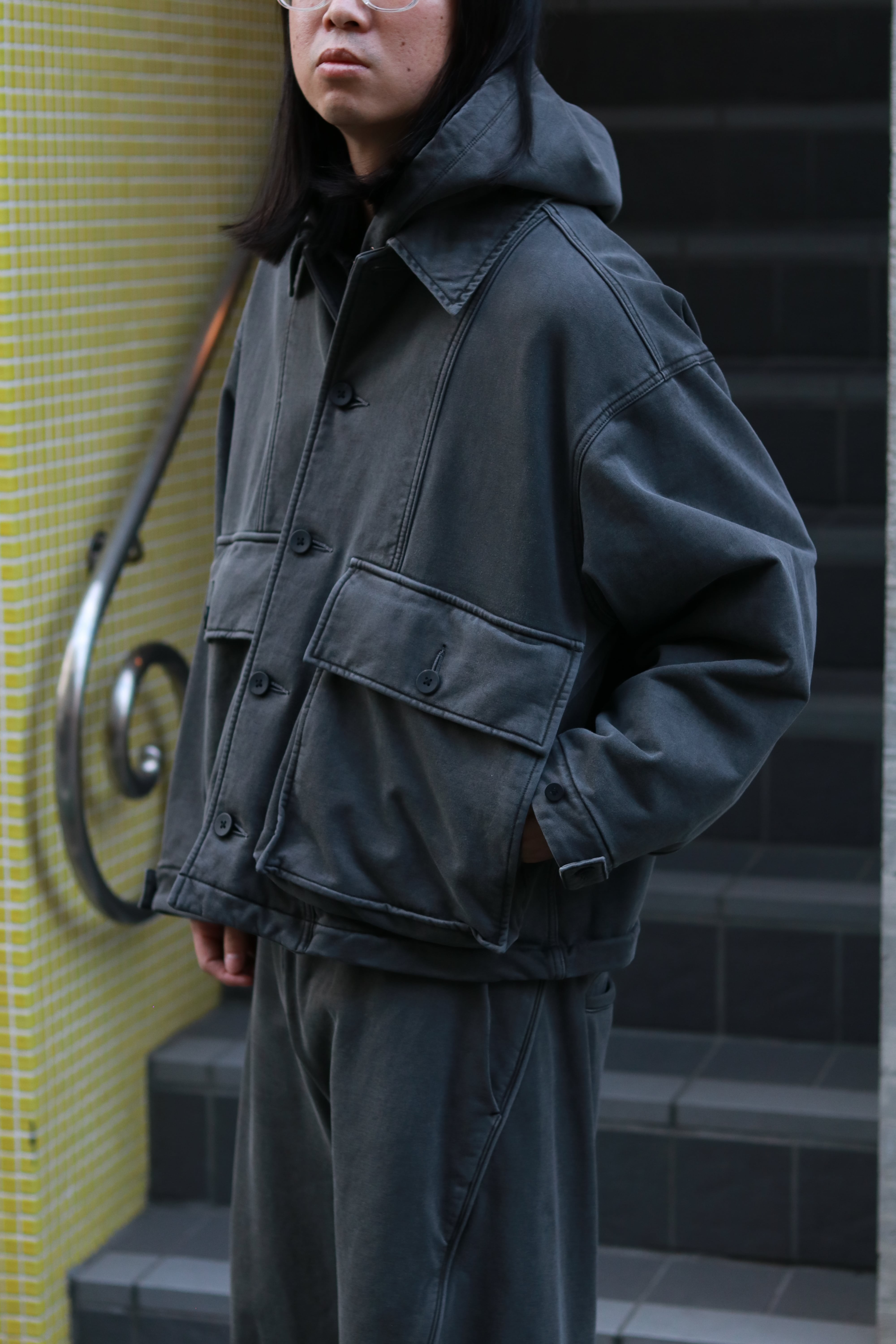 丸みのあるボックスシルエットを採用しているので、レイヤードにも向いております。