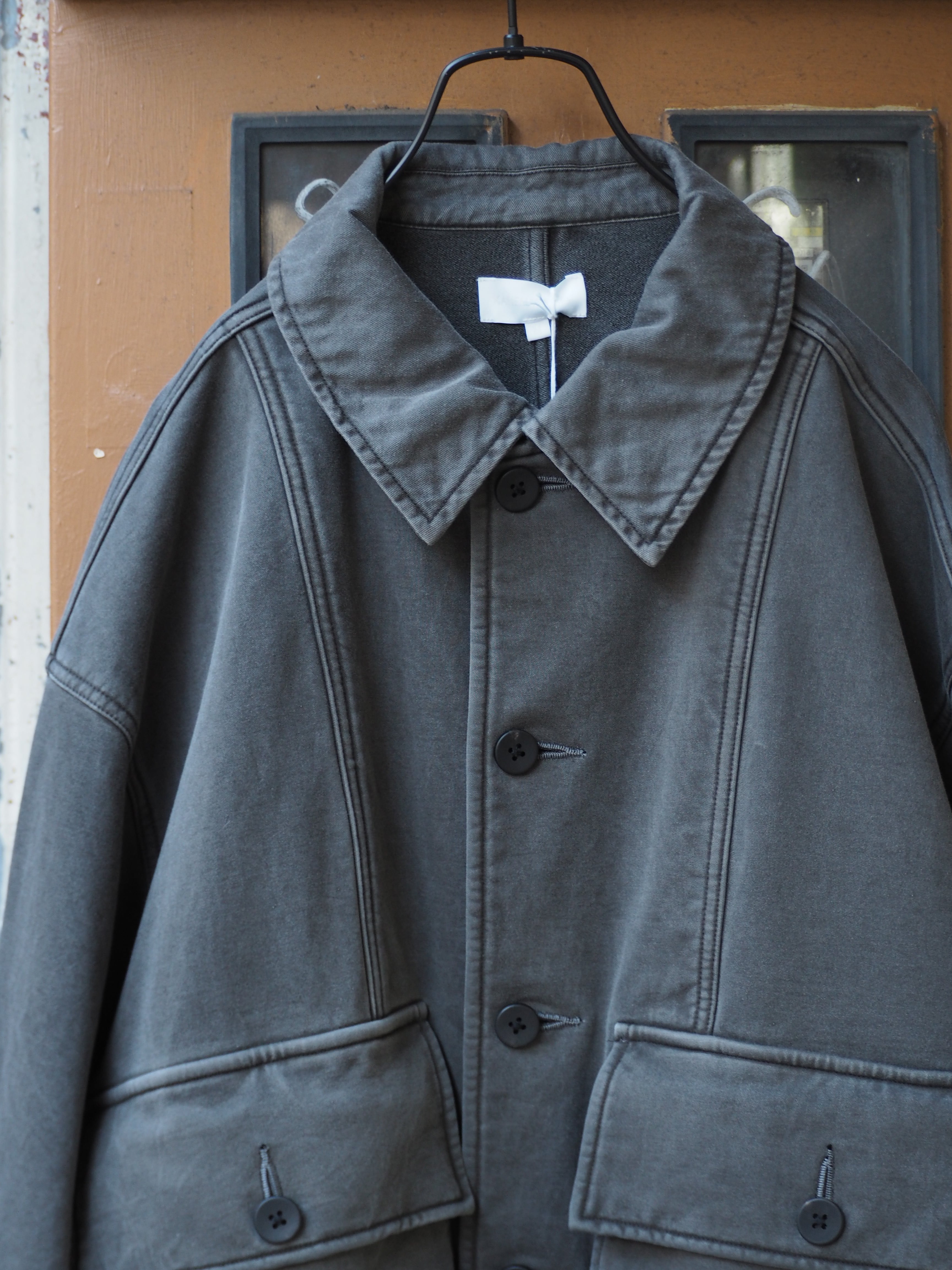 襟のみモールスキン素材を部分使いした新型アイテム。今シーズンを現した1着。