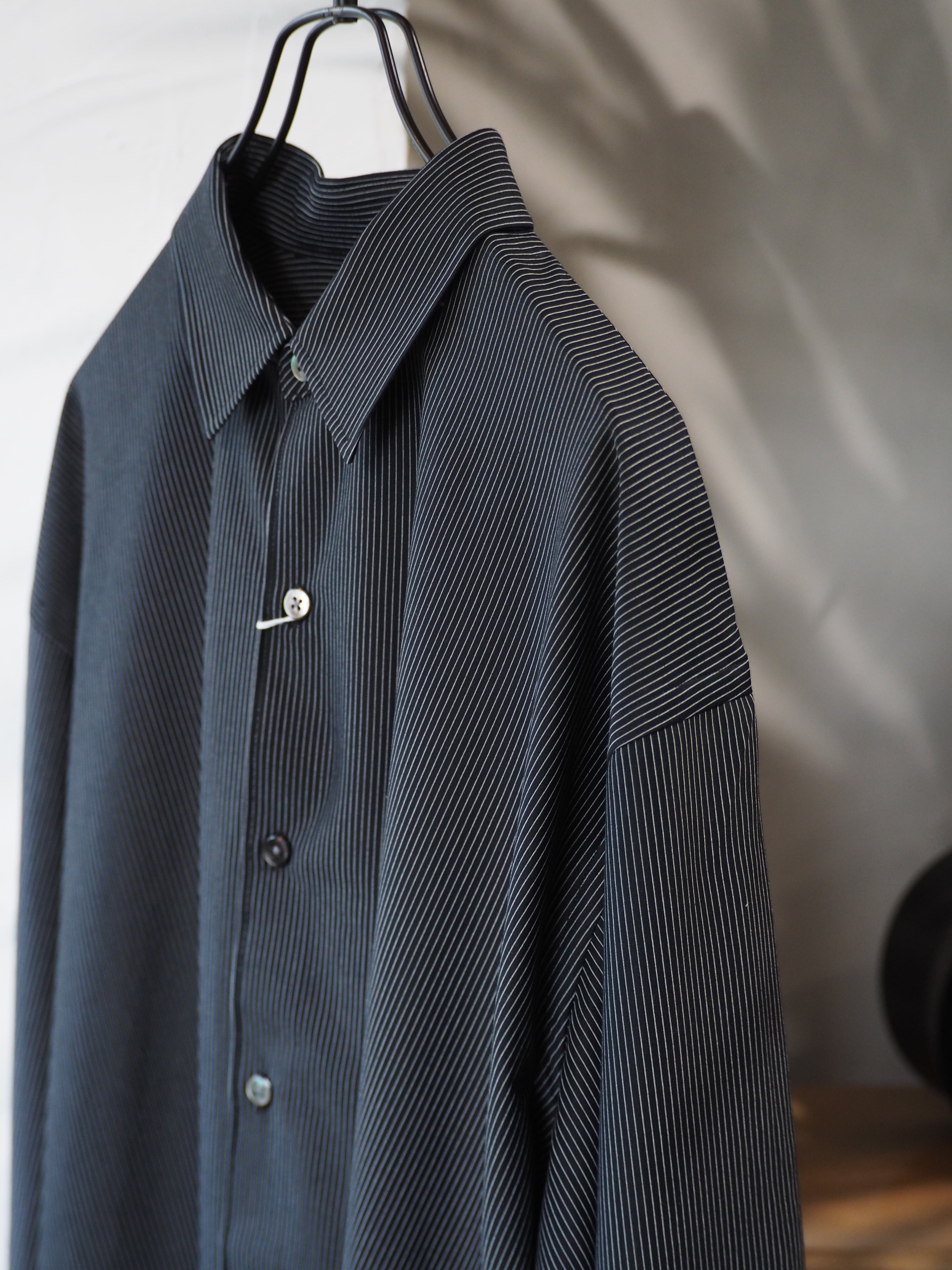 “atmosphere” 空気を纏うという名前の通り、 ゆったりとしたシルエット、素材の落ち感がわかりやすい定番シルエットのシャツです。