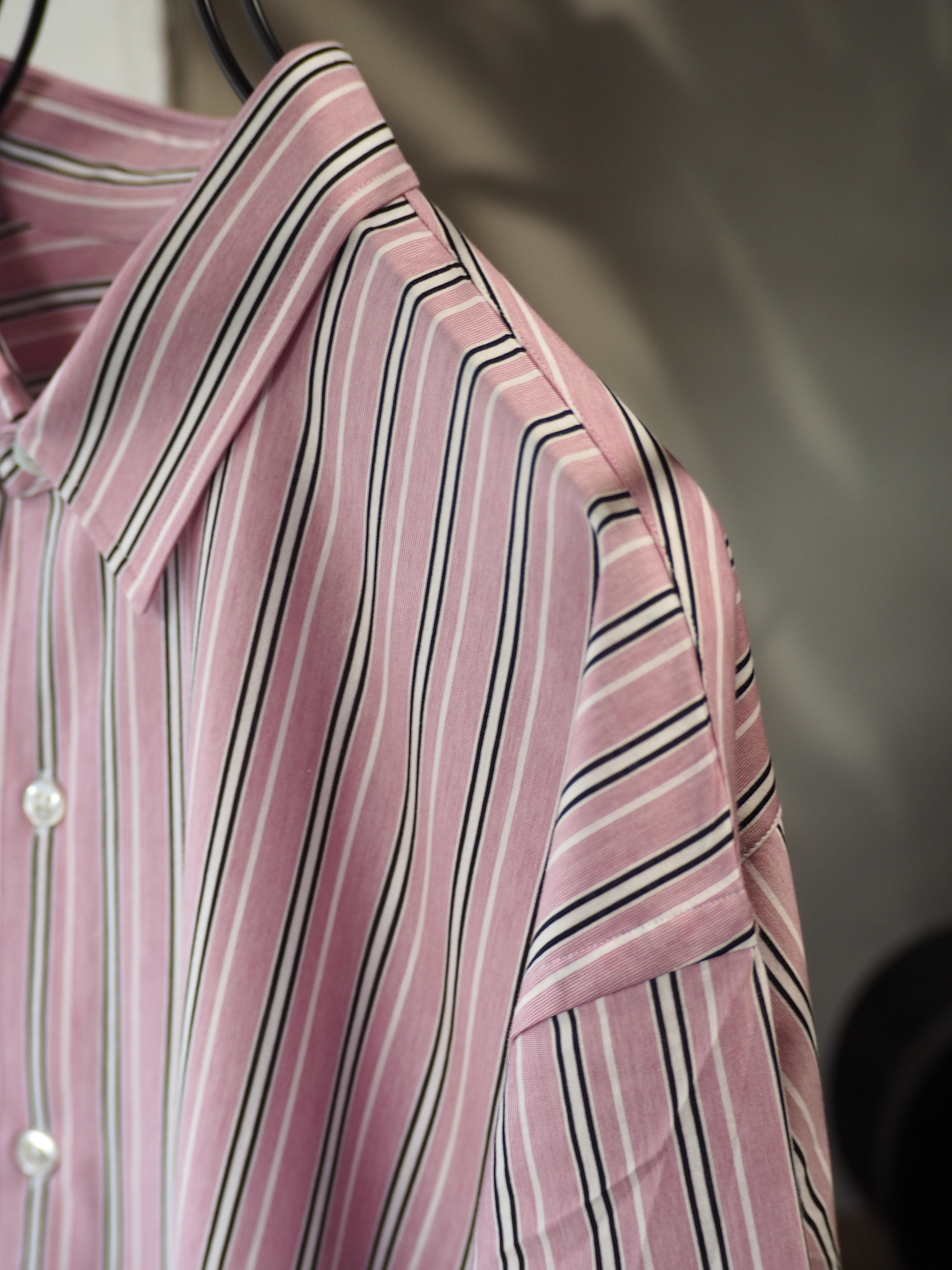 “atmosphere” 空気を纏うという名前の通り、 ゆったりとしたシルエット、素材の落ち感がわかりやすい定番シルエットのシャツです。