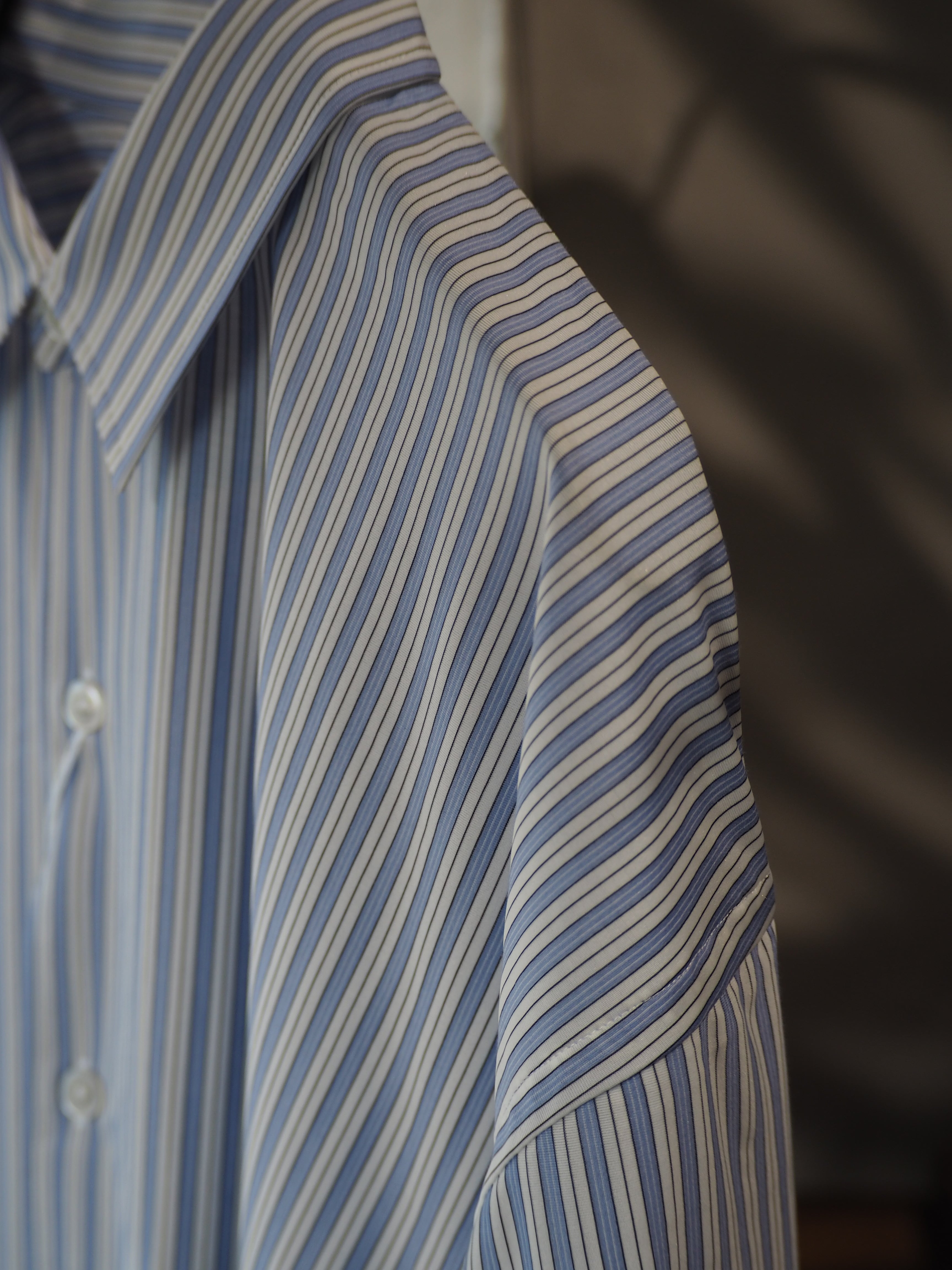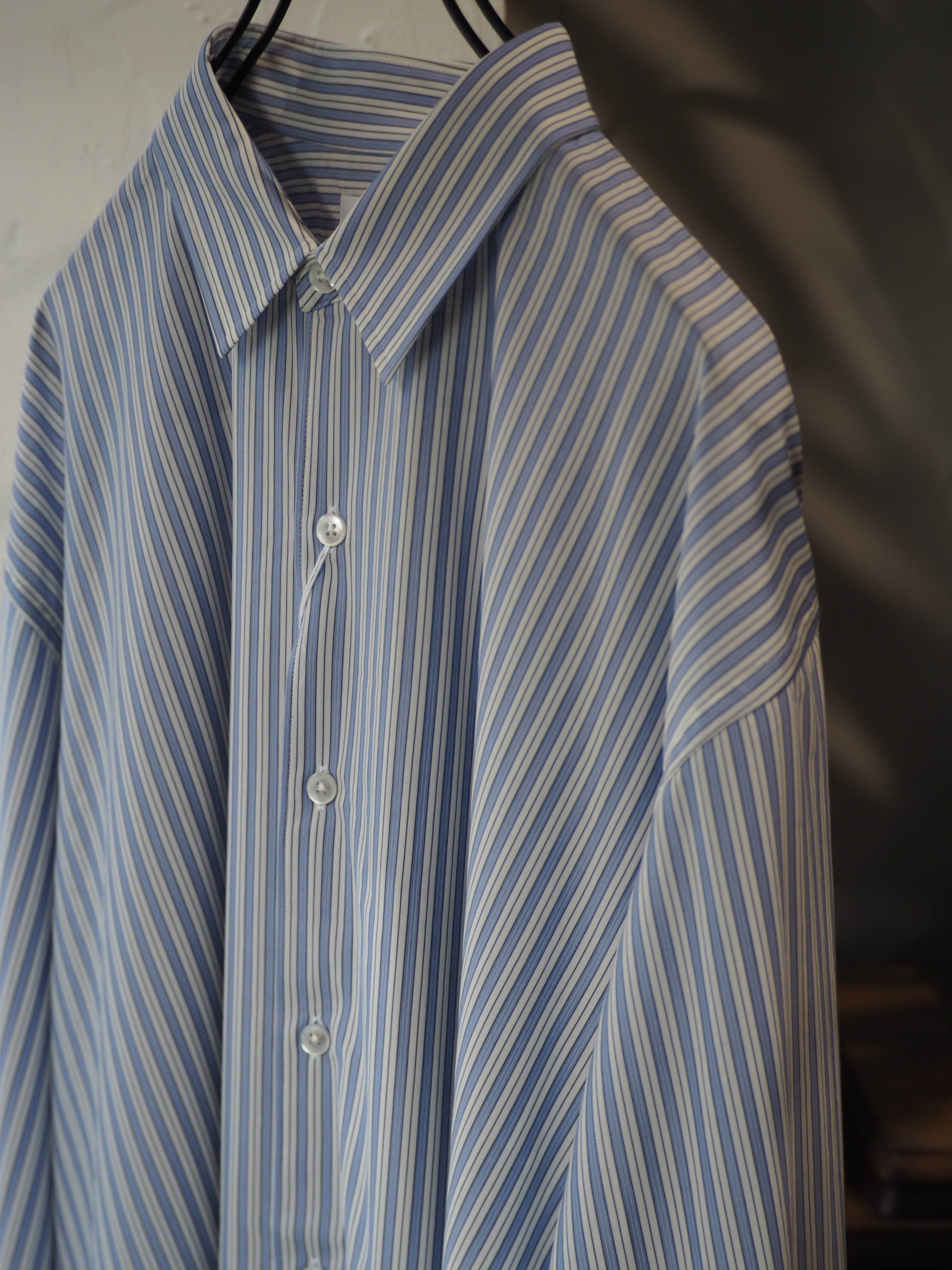 “atmosphere” 空気を纏うという名前の通り、 ゆったりとしたシルエット、素材の落ち感がわかりやすい定番シルエットのシャツです。