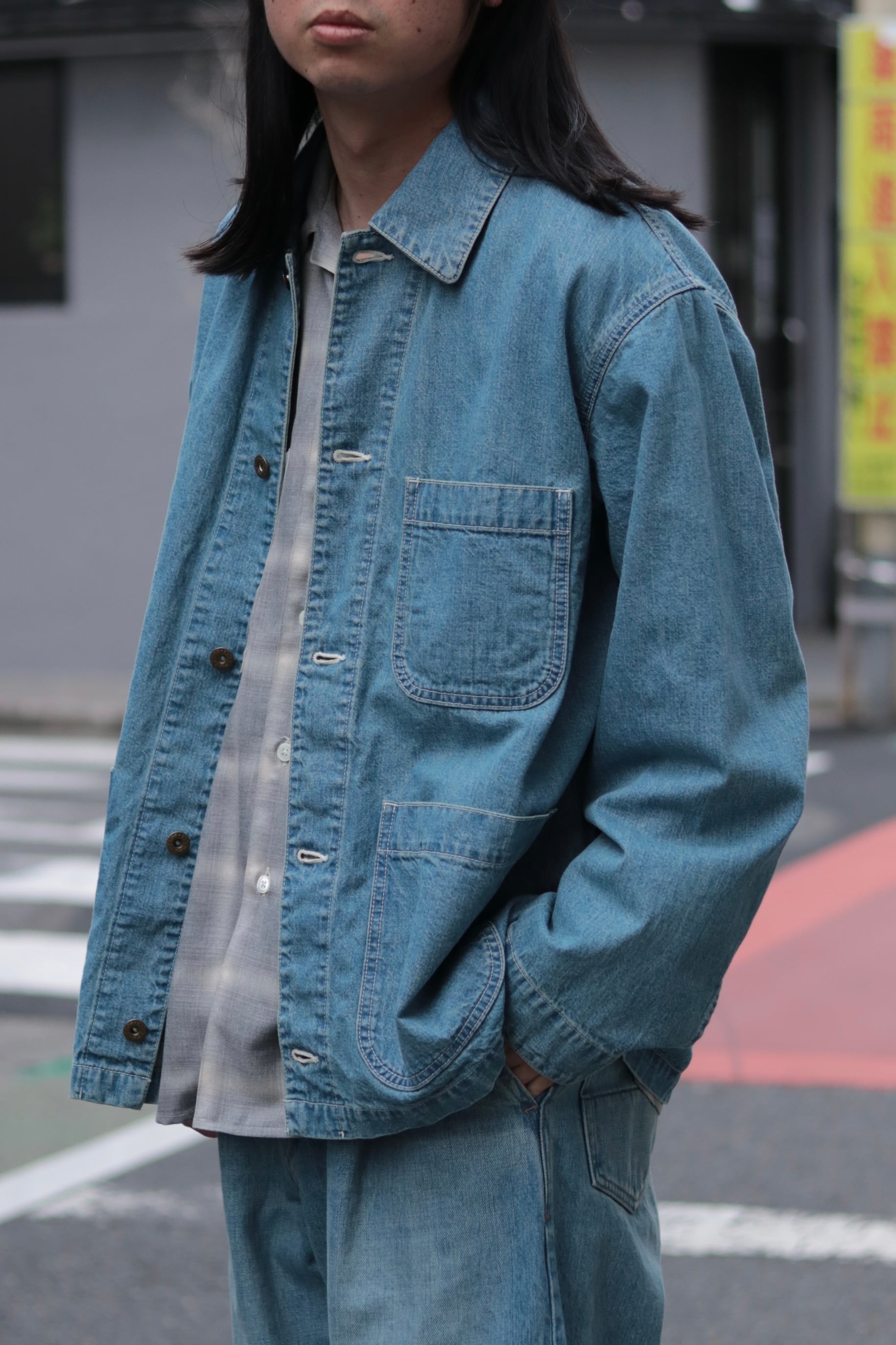 9.5ozの岡山県産ライトデニムで製作したカバーオールになります。