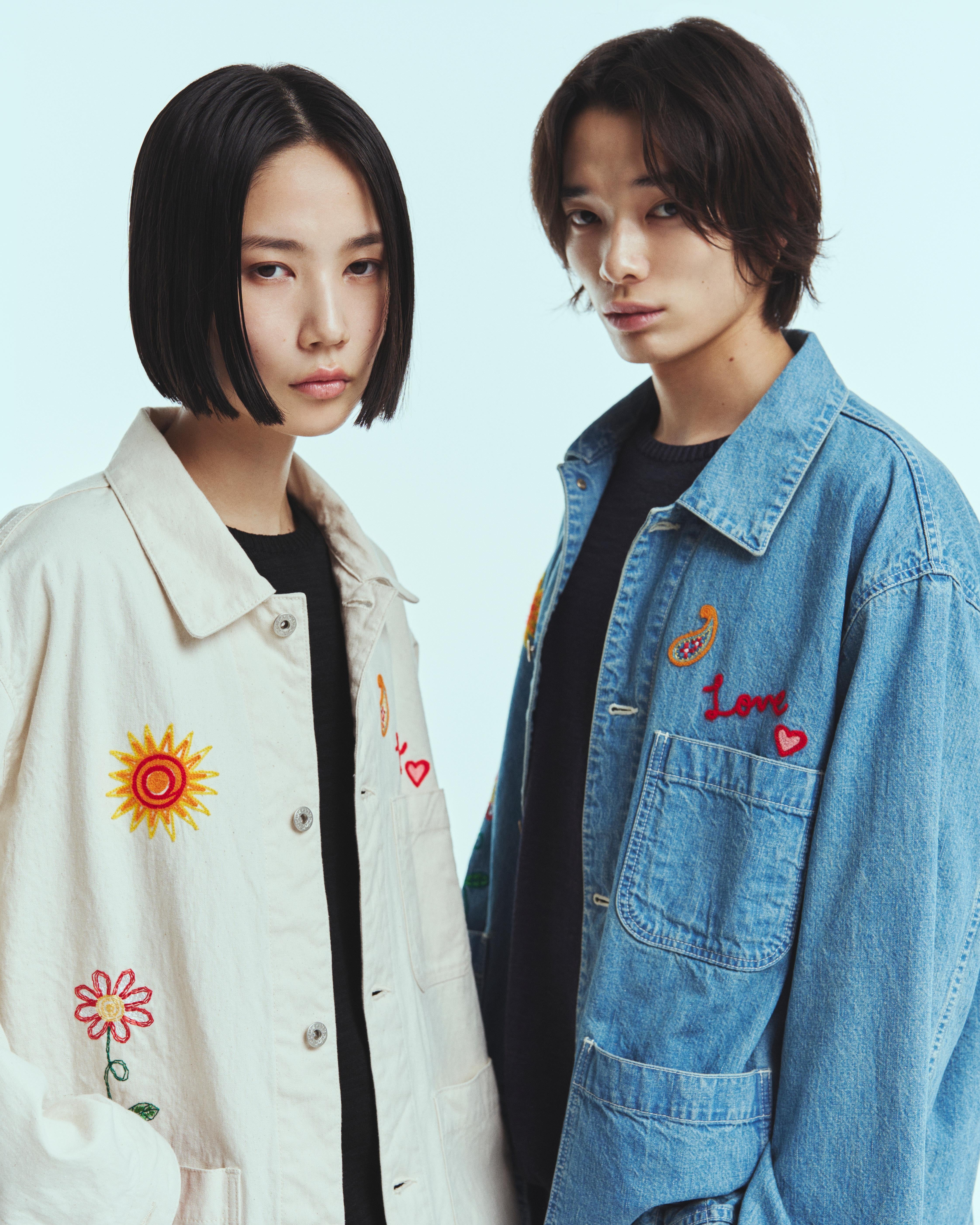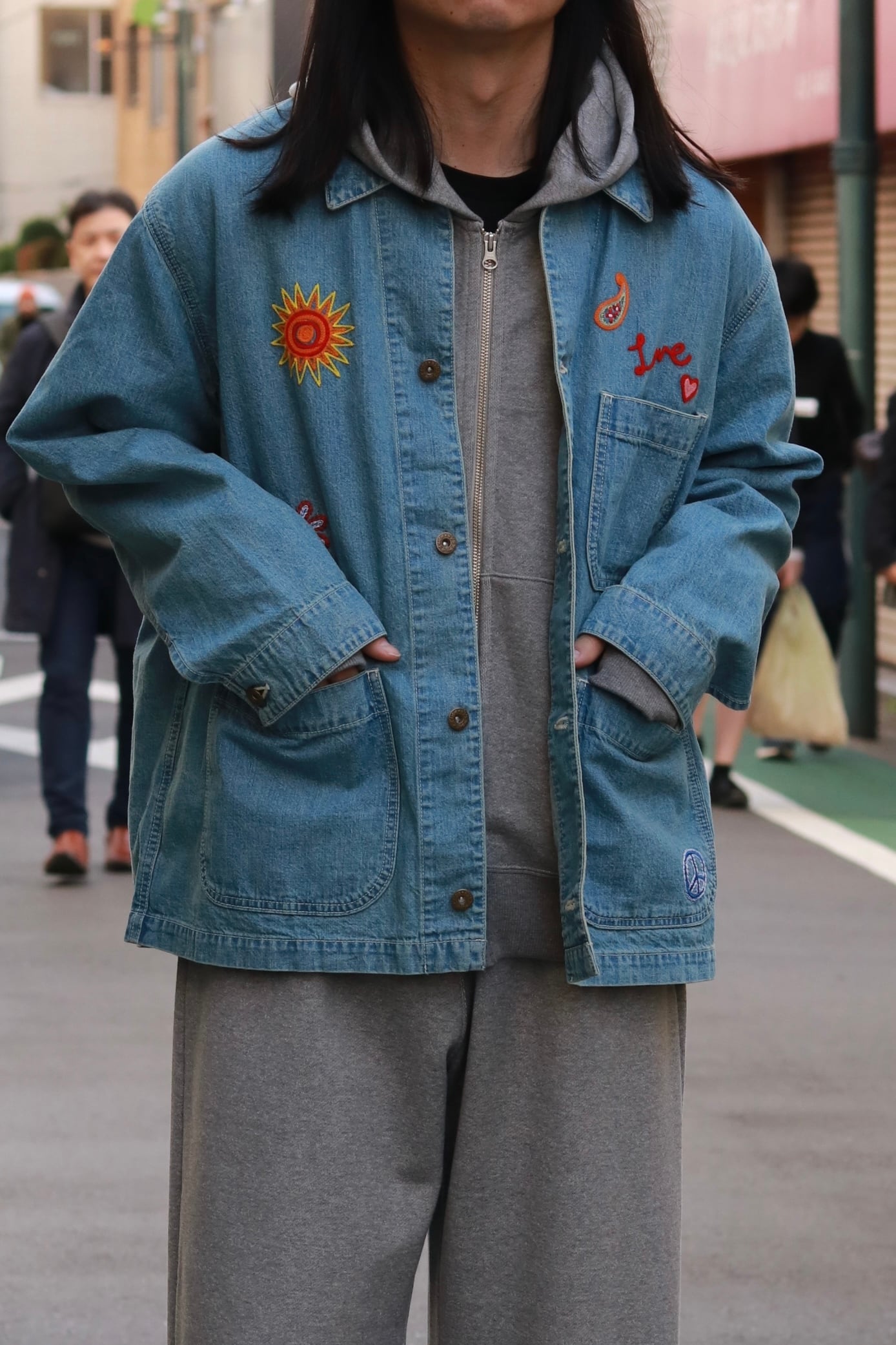 ゆったりとしたビックシルエットで2本針巻縫いで堅牢に仕立て、フロントはタックボタンを採用。