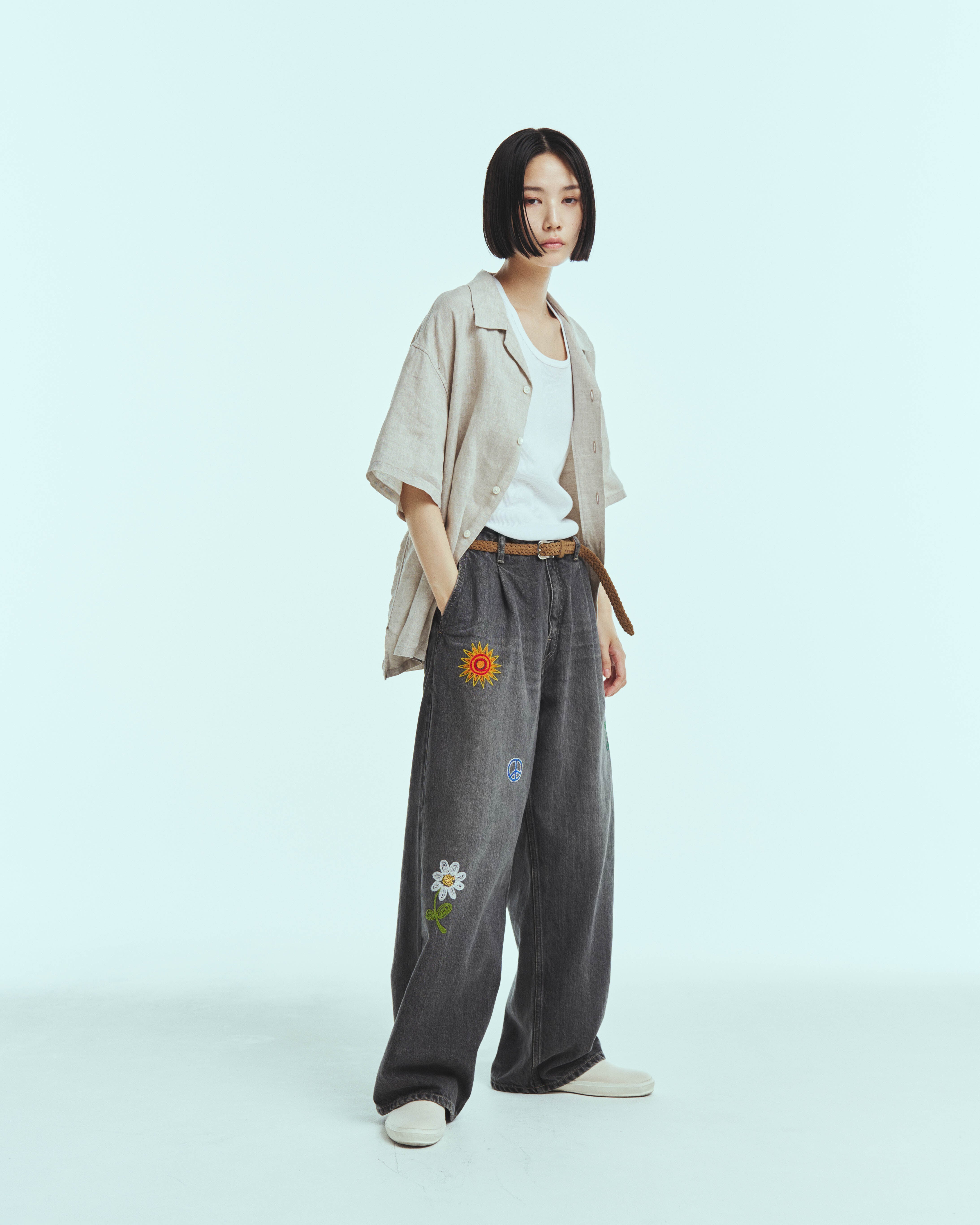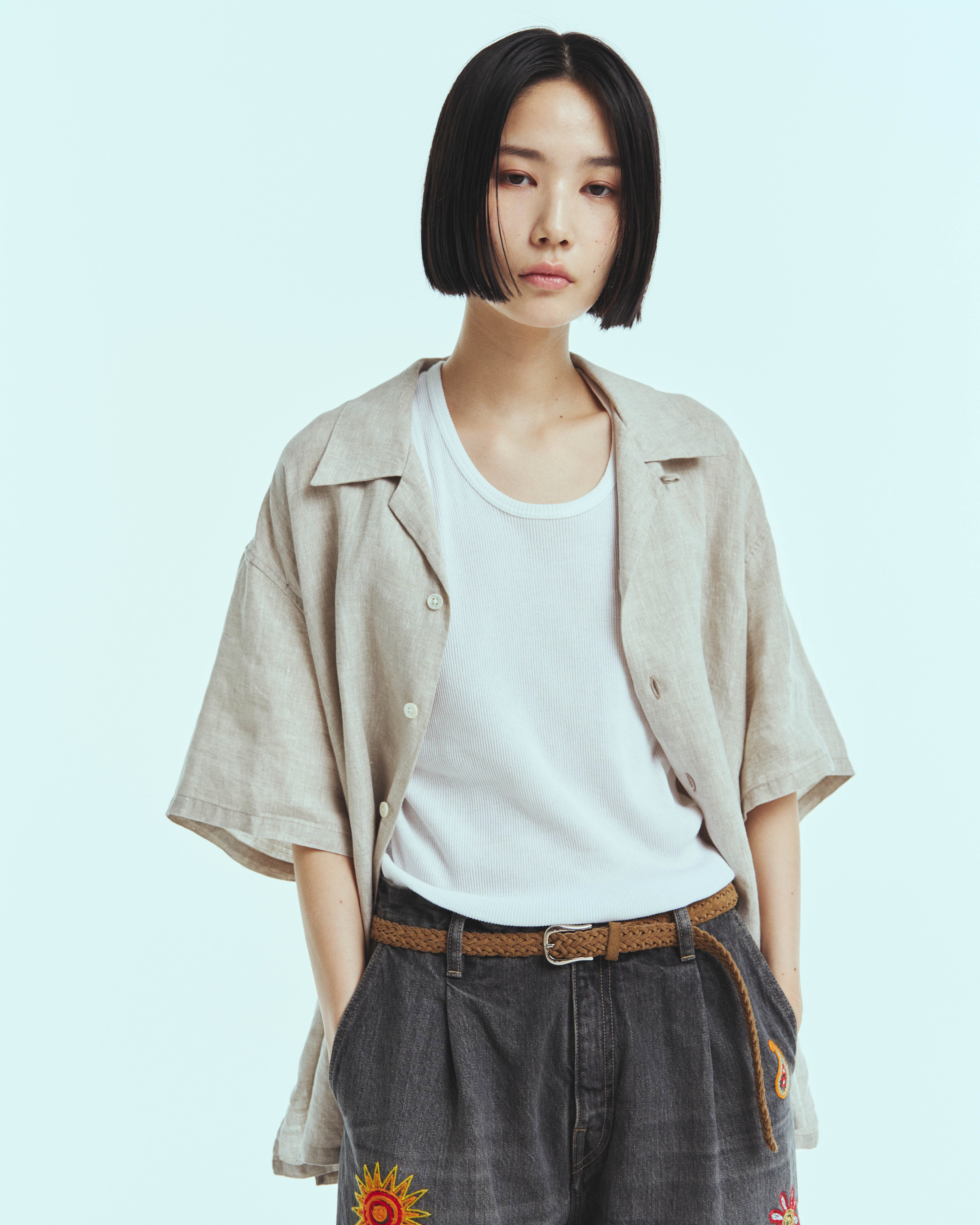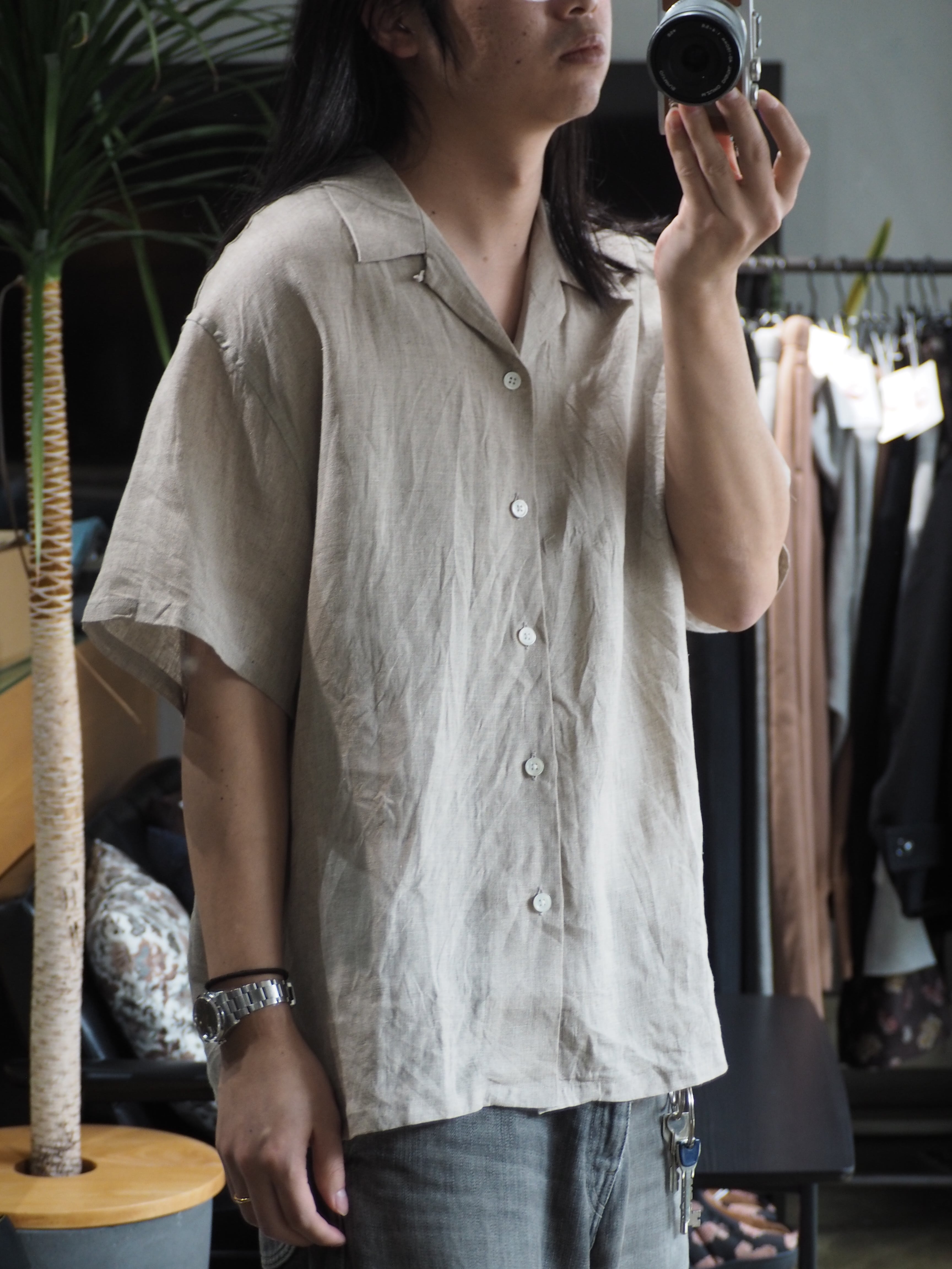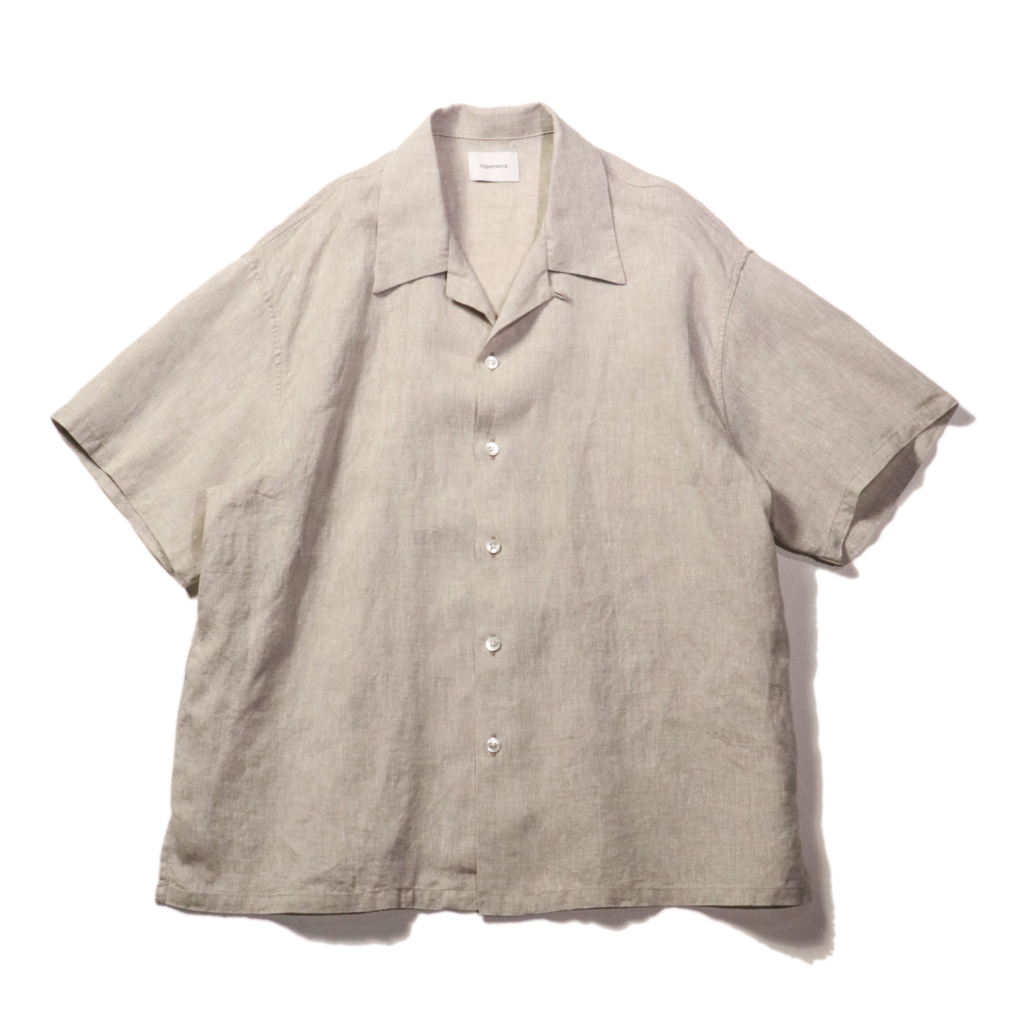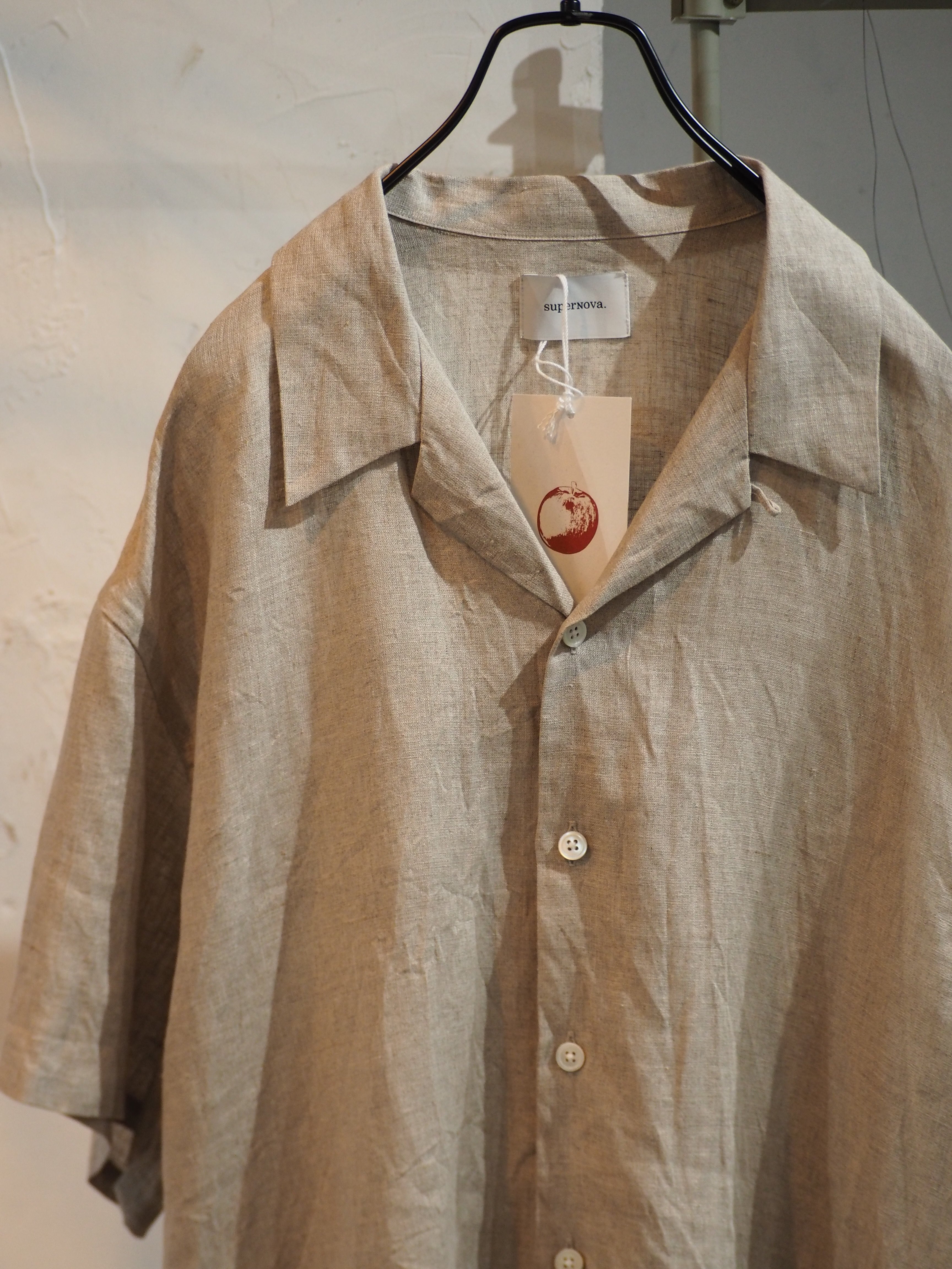 リネン100%のオープンカラーシャツです。