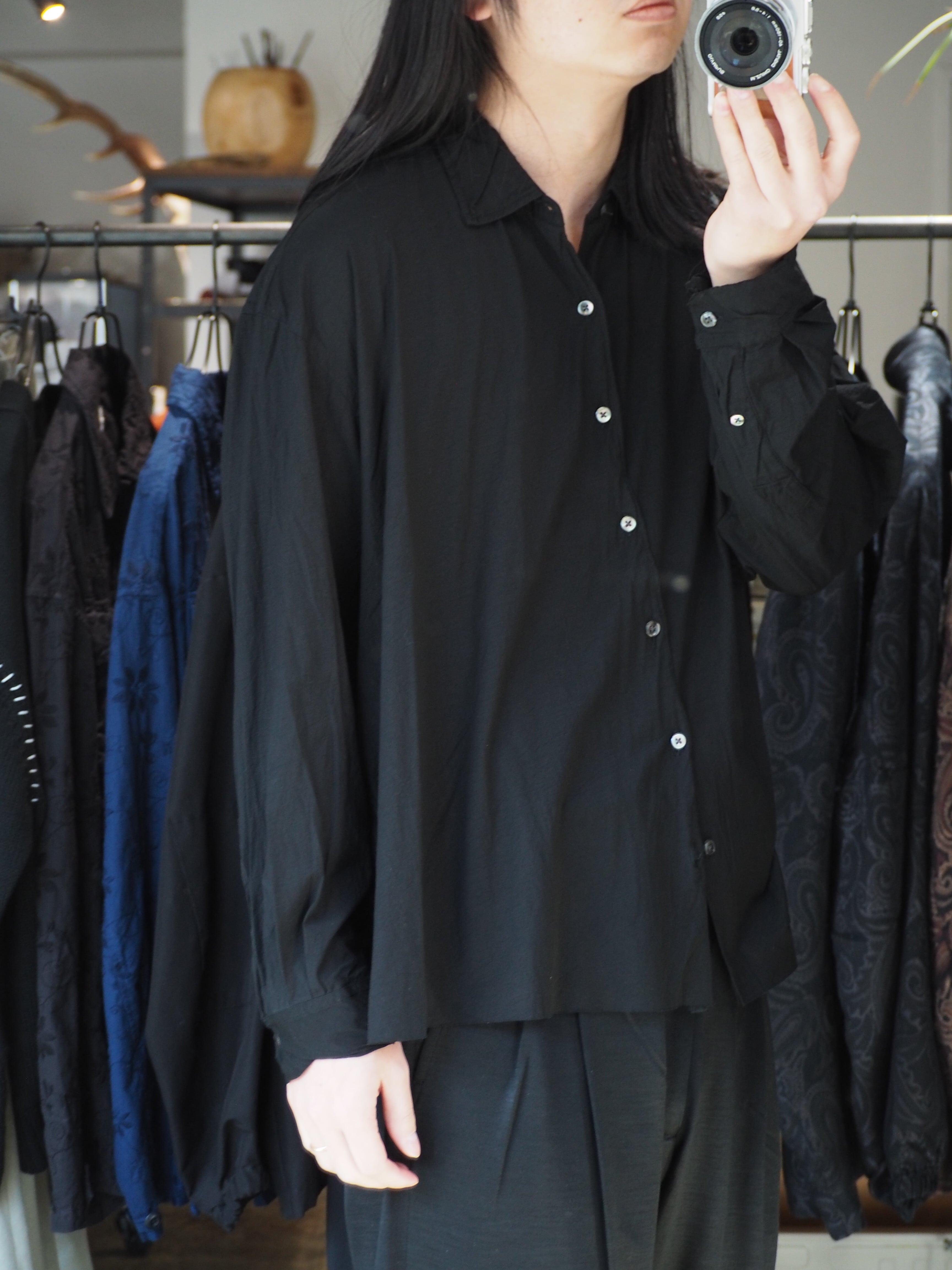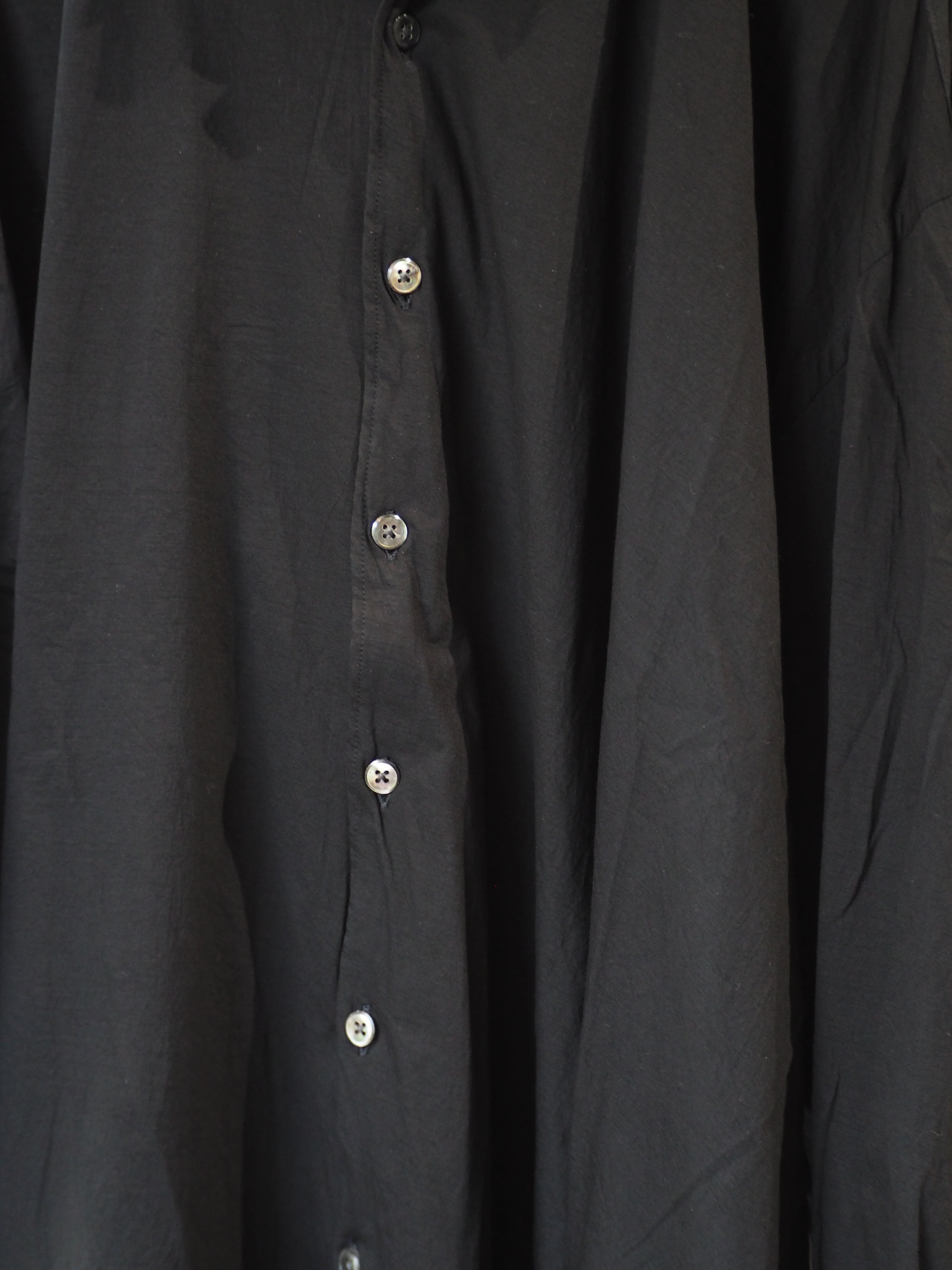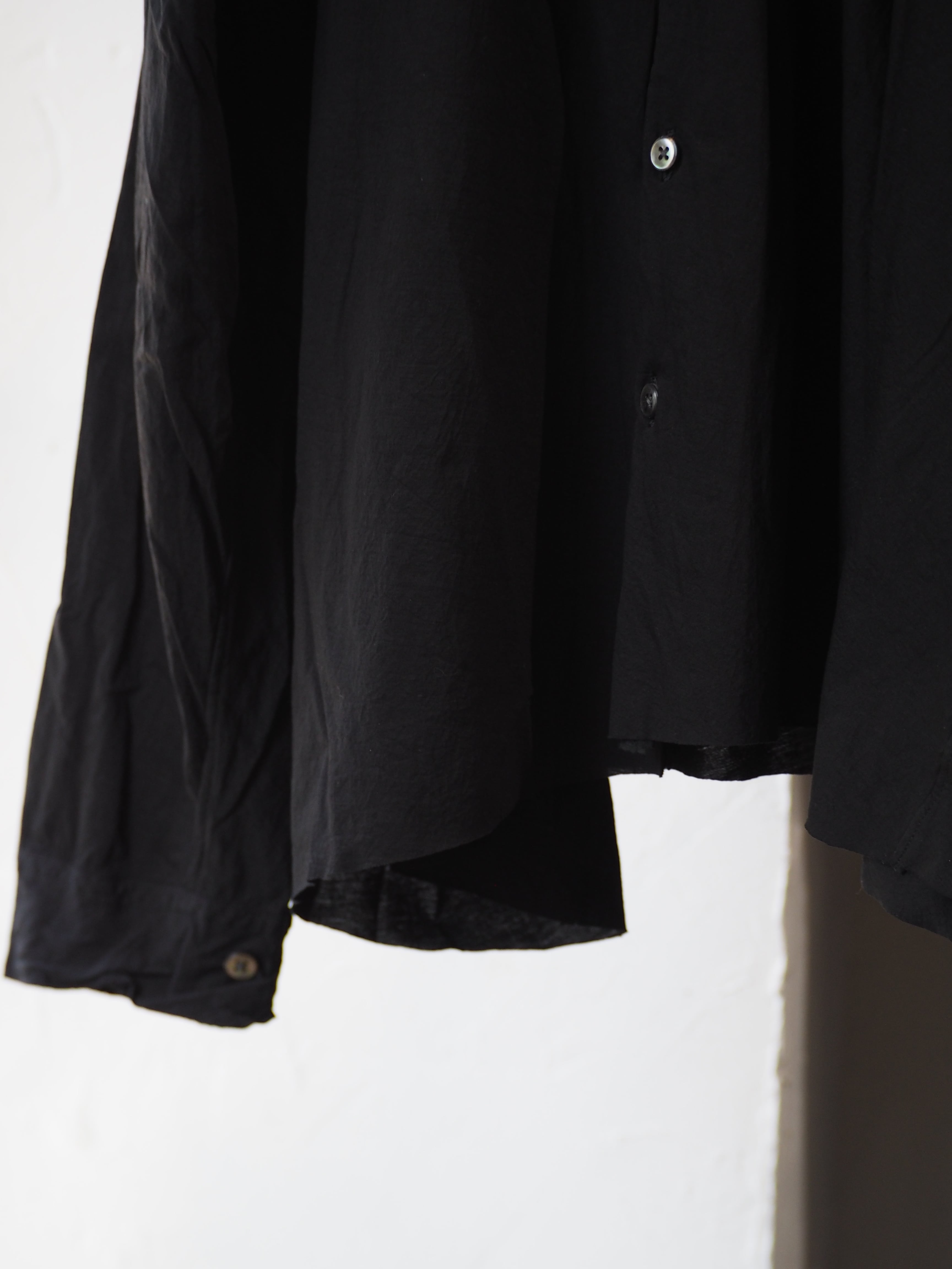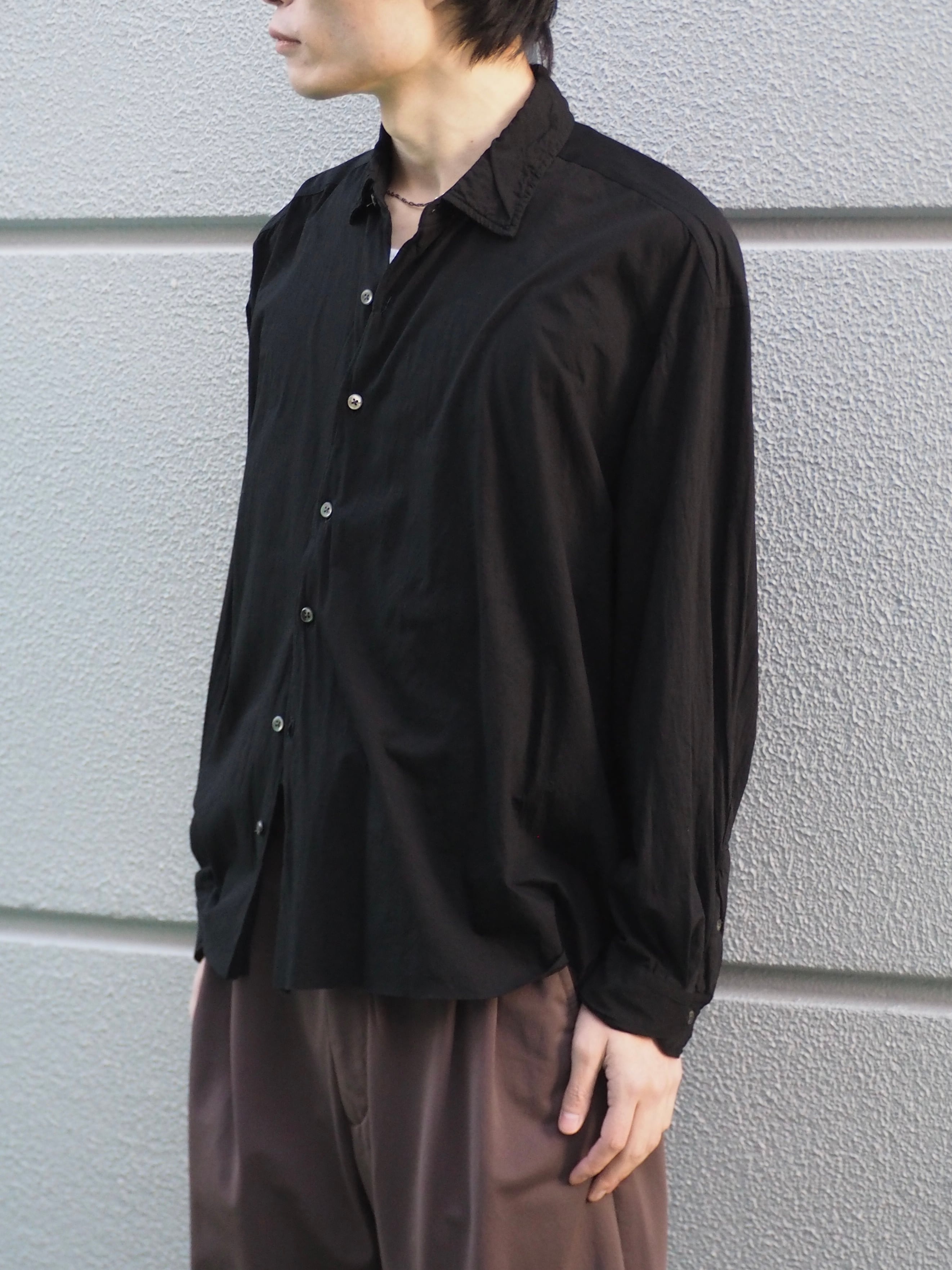 徴。着用時のドレープなどは他にない雰囲気のシャツとなります。またサイズの切りっぱ