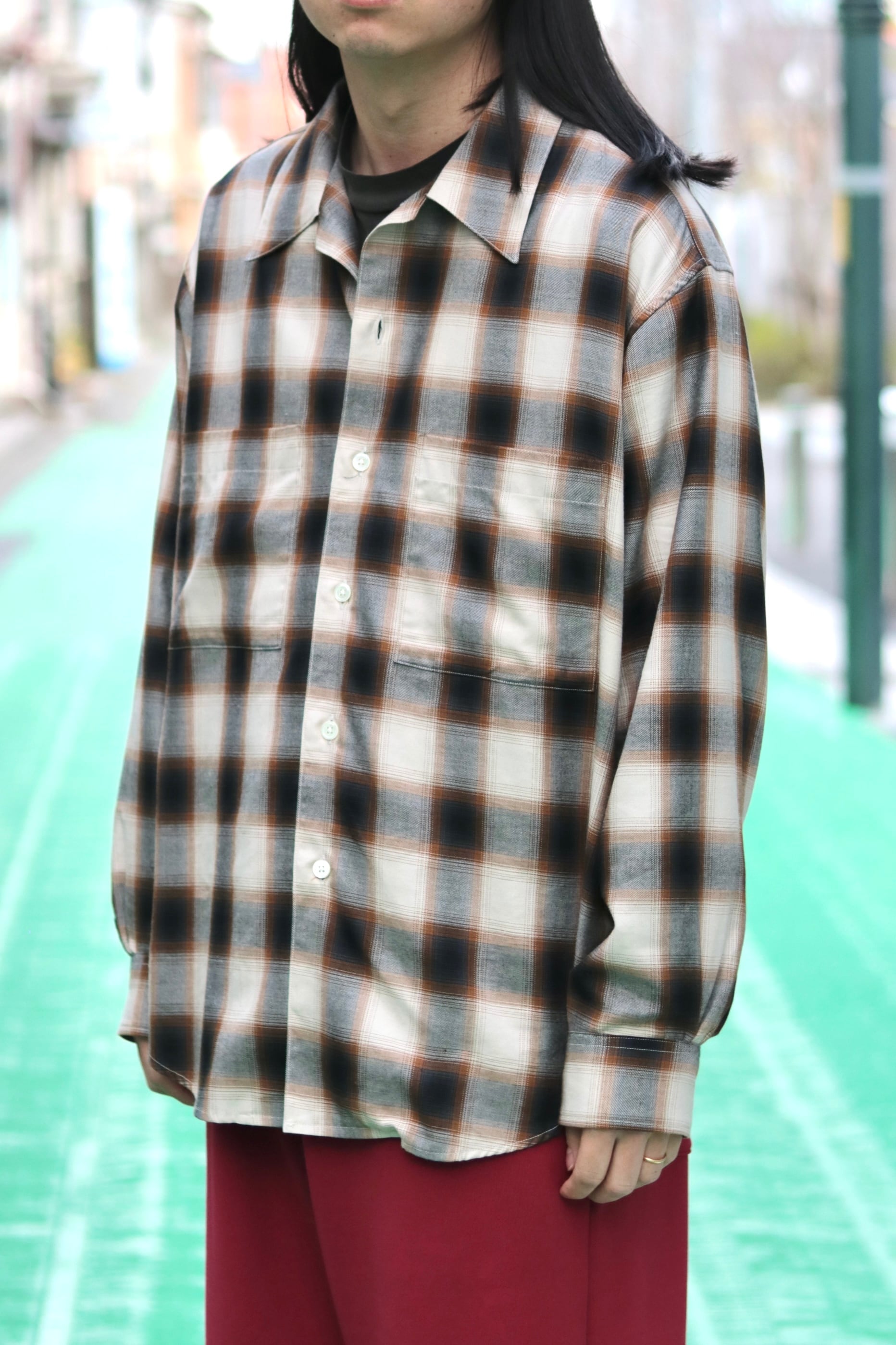 オンブレーチェック地で製作したシャツになります。