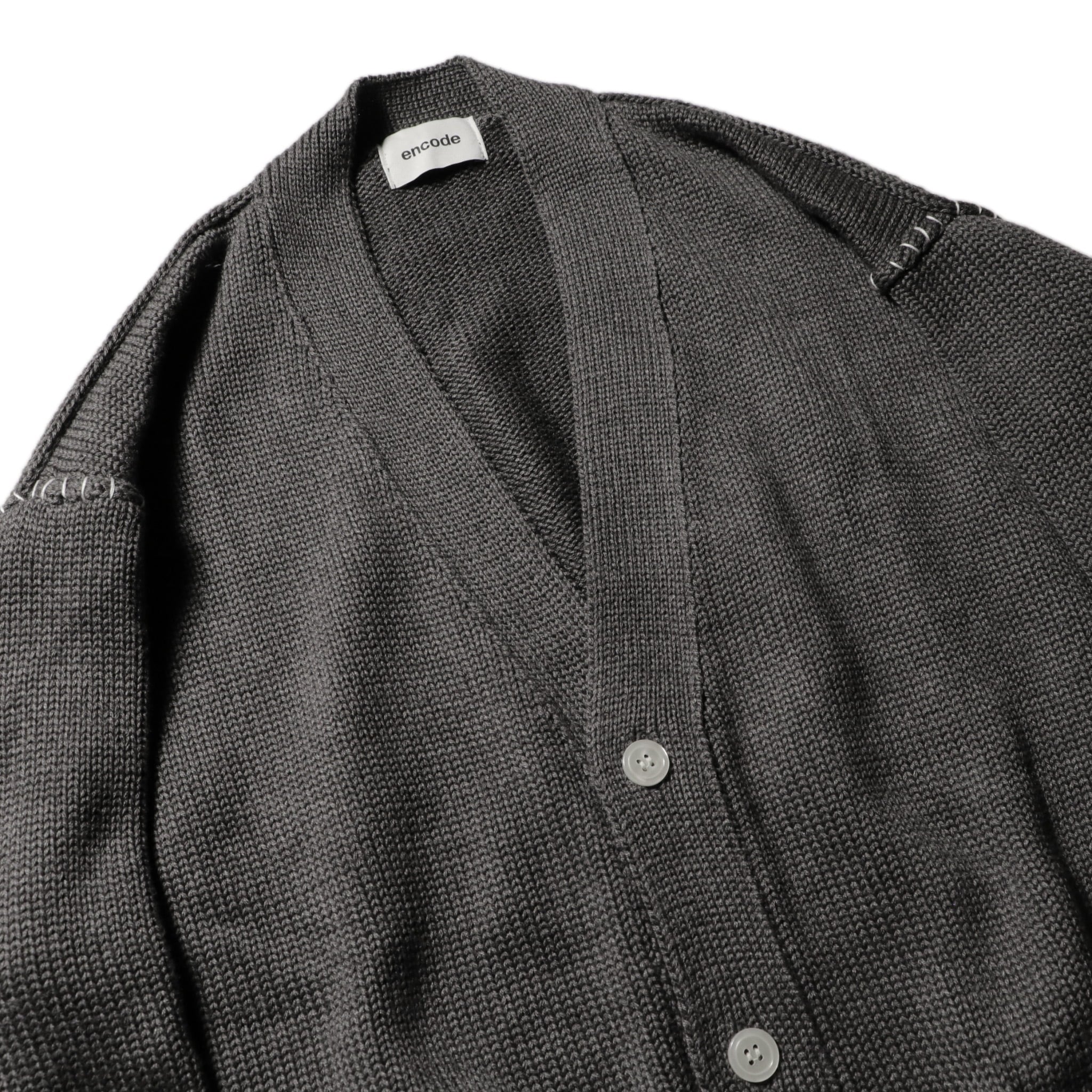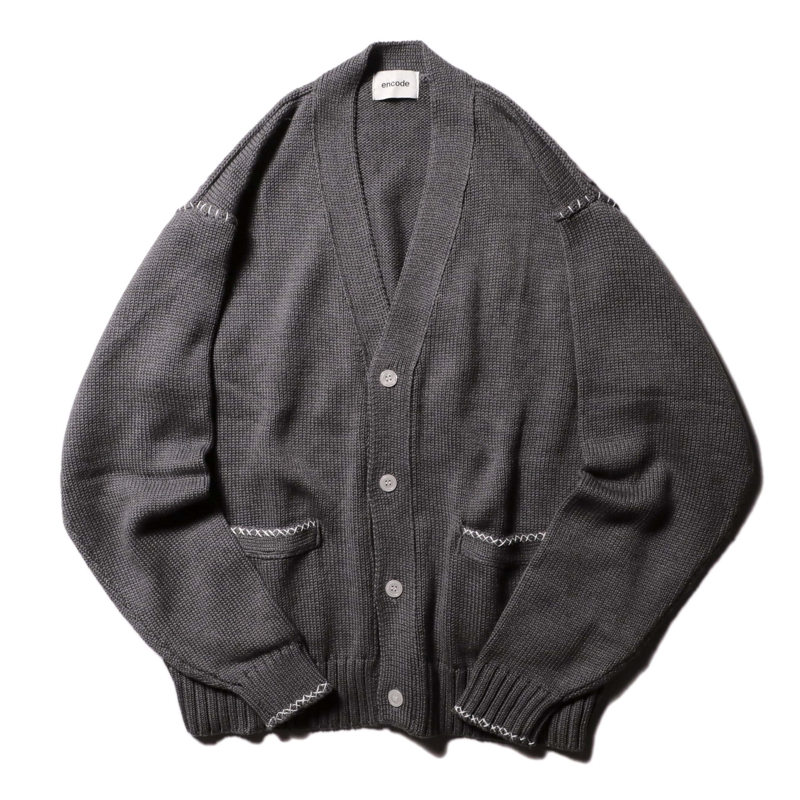 encode HAND-STITCHED KNIT CARDIGAN / Medium gray