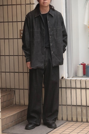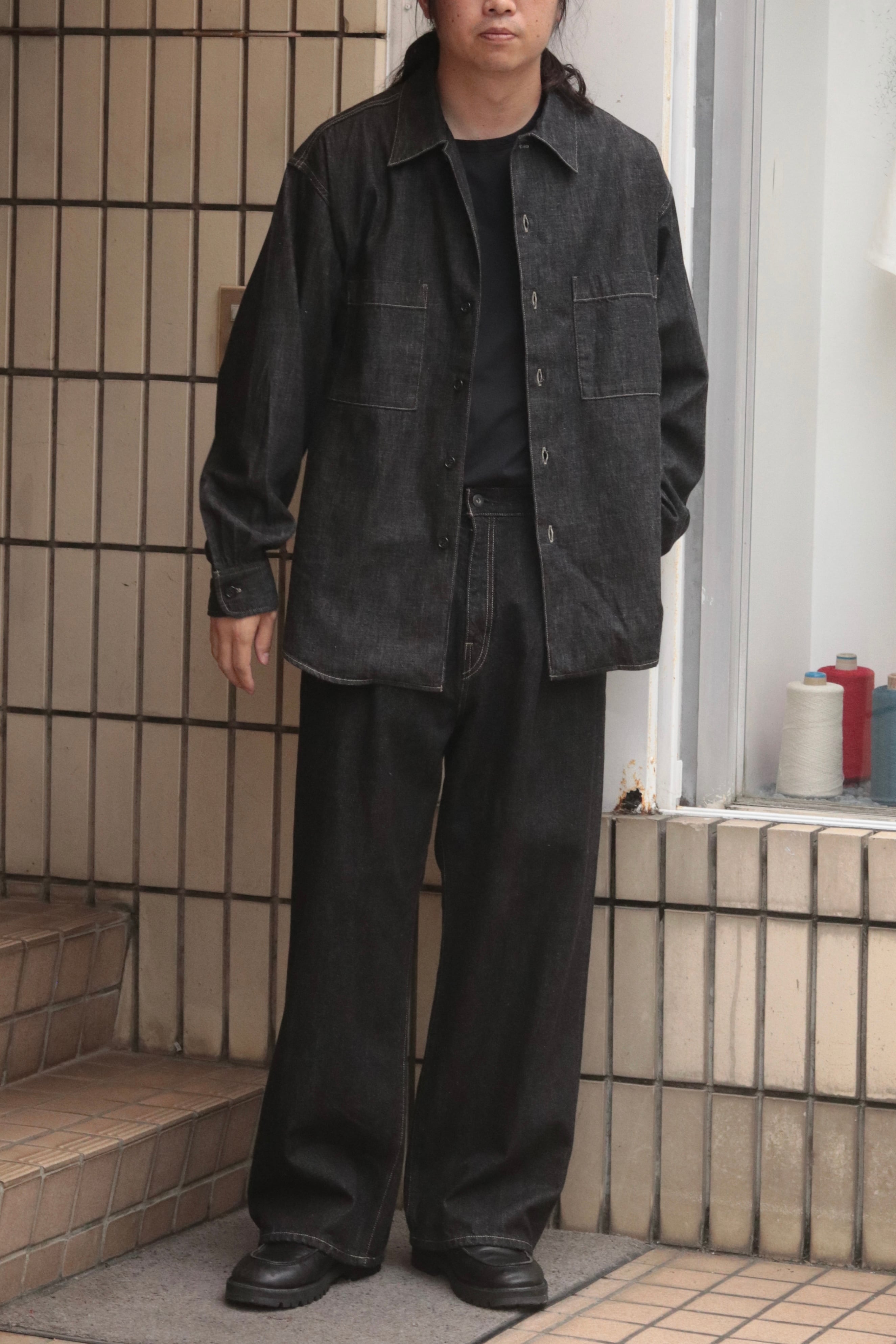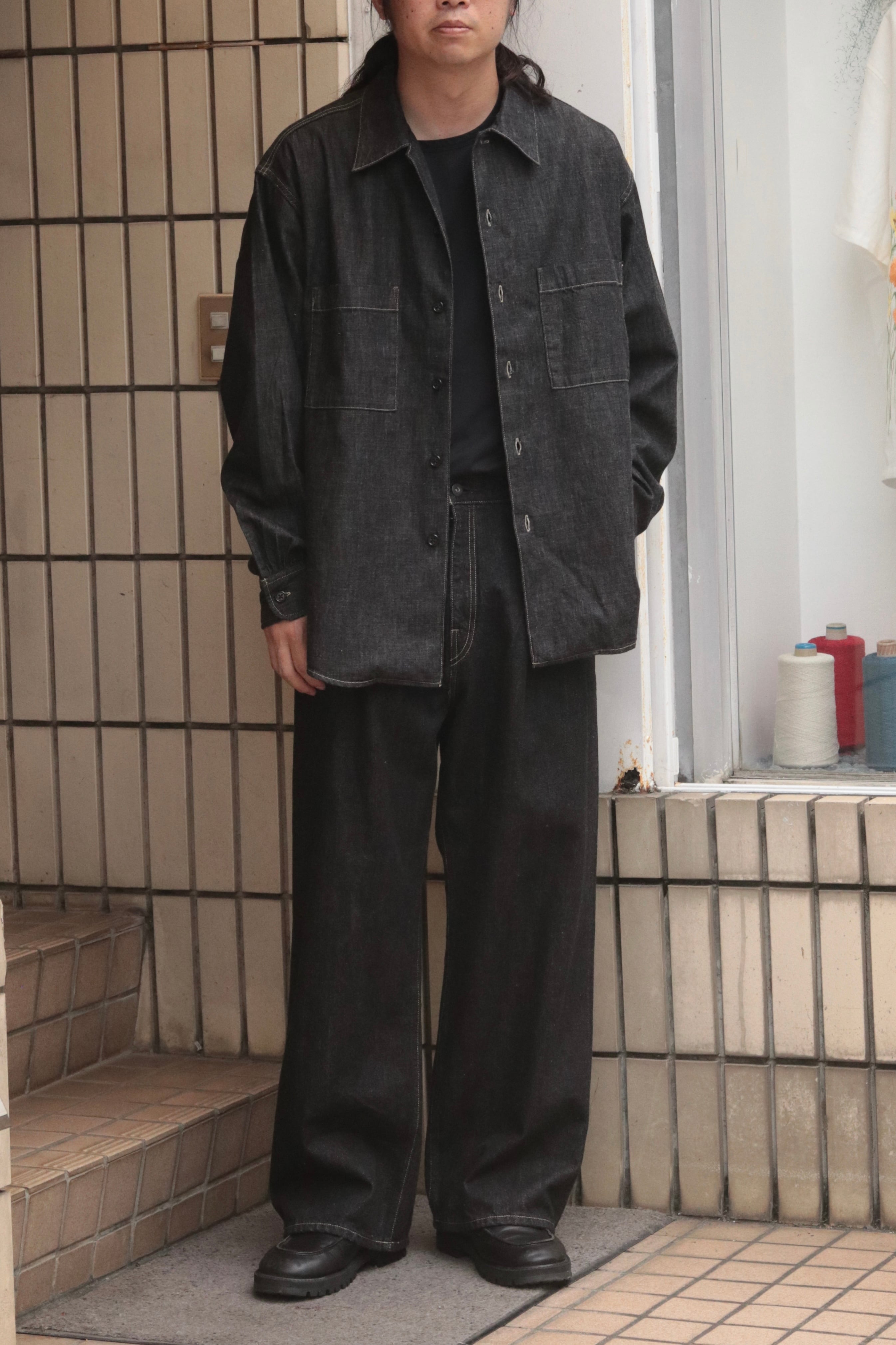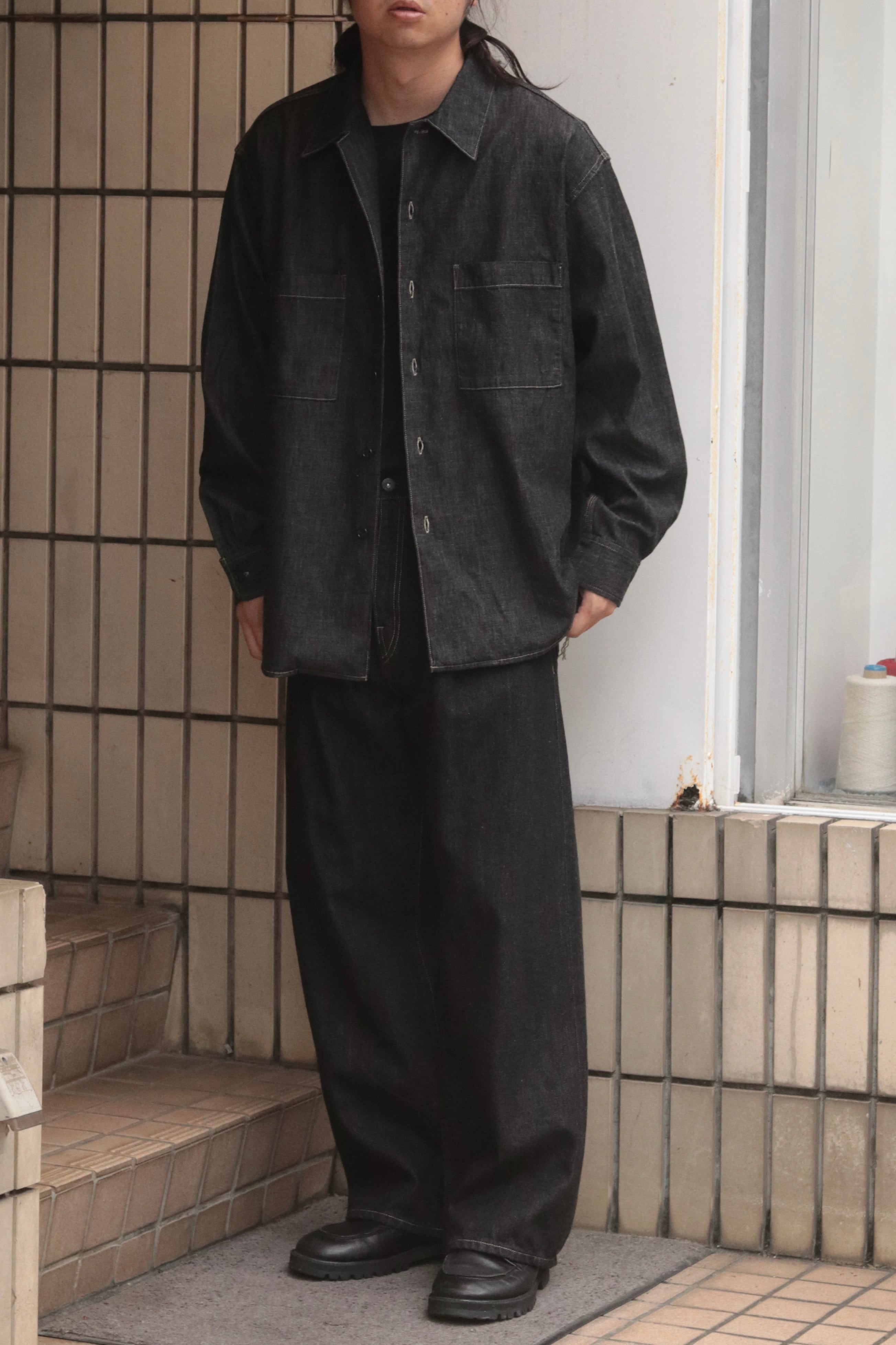 1タック入りのワイドシルエットですが、いわゆるジーパンのシルエットではなく、上品に履けるスラックスのような、美しいシルエットを目指して制作しております。