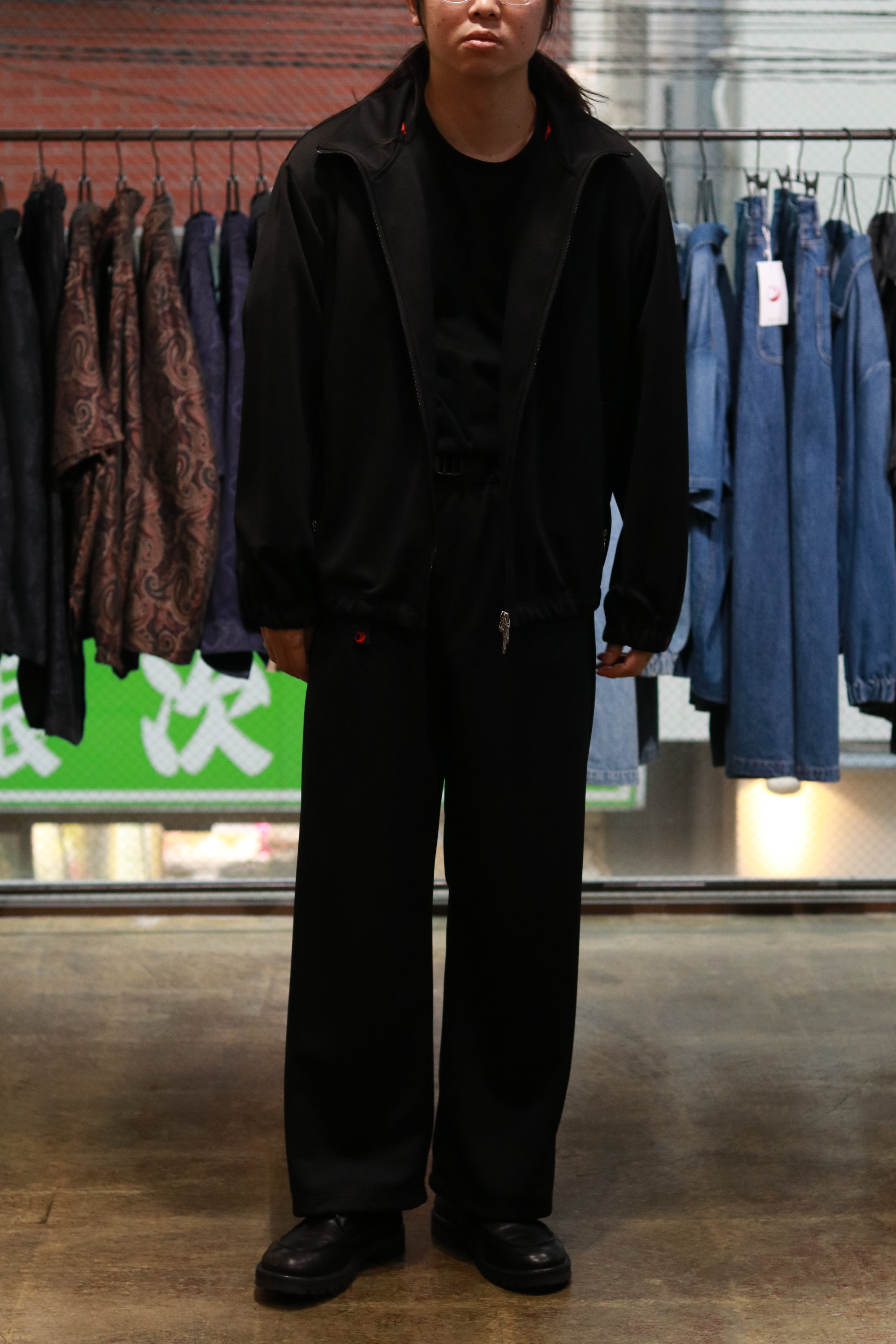 ポリエステルジャージ素材を使用したトラックパンツです。